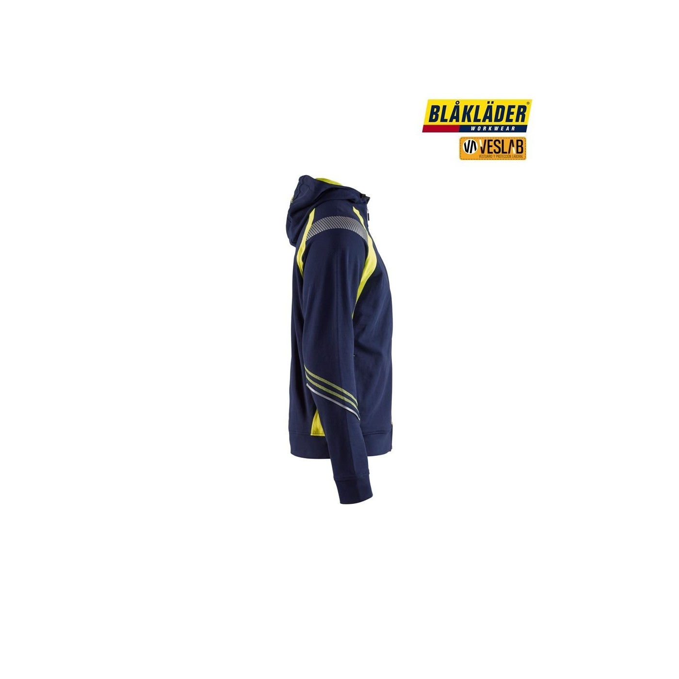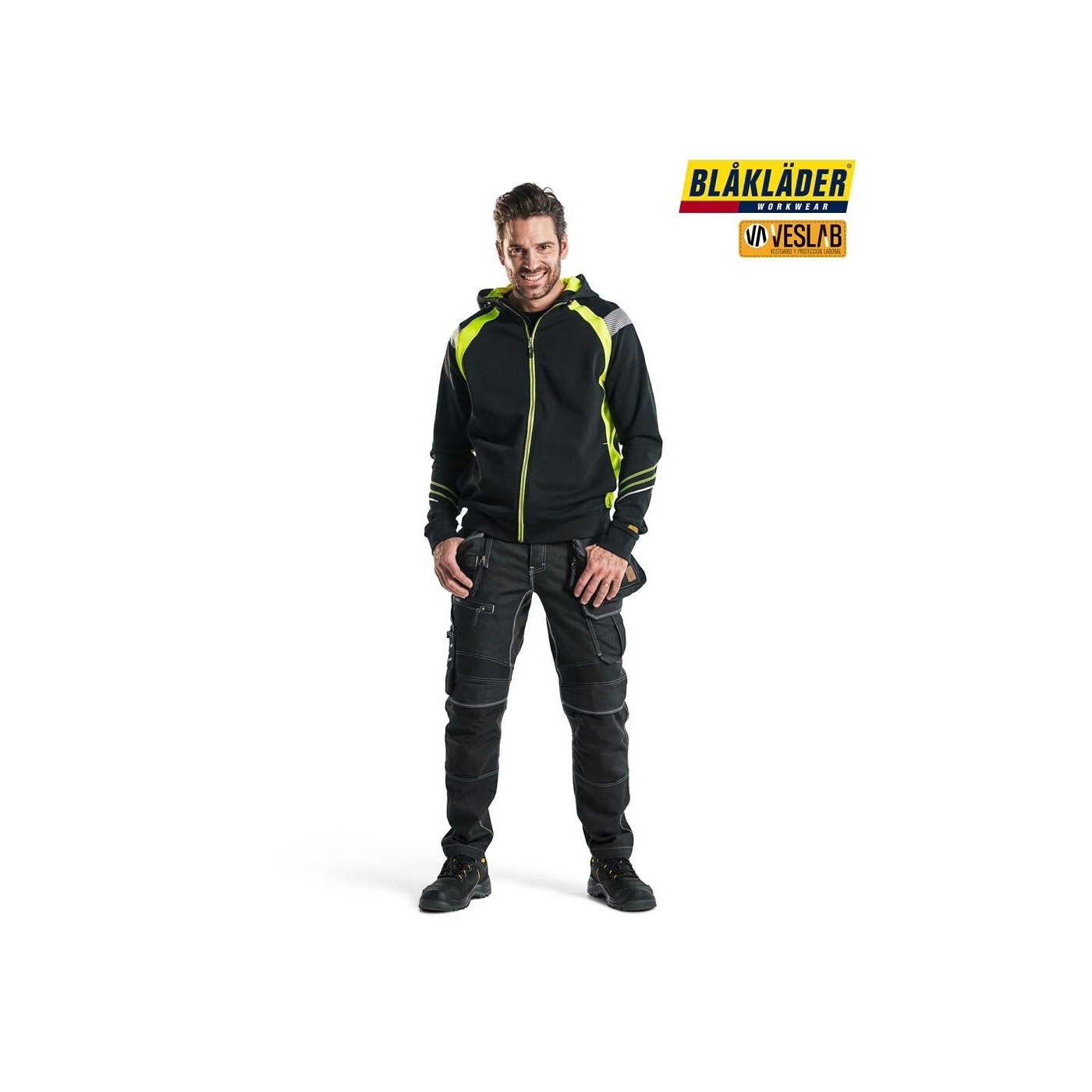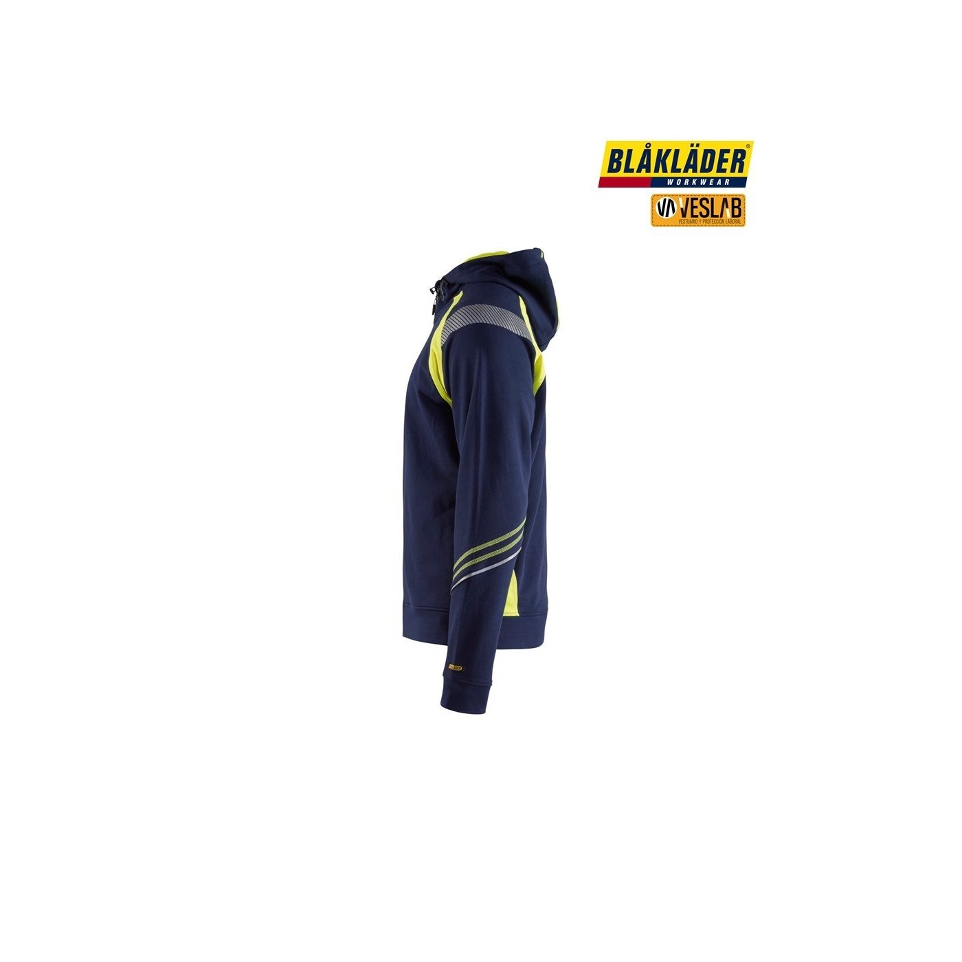 Sudadera con capucha suave muy cómoda confeccionada en algodón. Tiene paneles y detalles reflectantes de alta visibilidad para mayor visibilidad, dobladillo en la parte inferior y en las mangas y bolsillo interior para el teléfono con cremallera. El área oscura del suéter consiste en 100% algodón y el área de alta visibilidad en 100% poliéster.