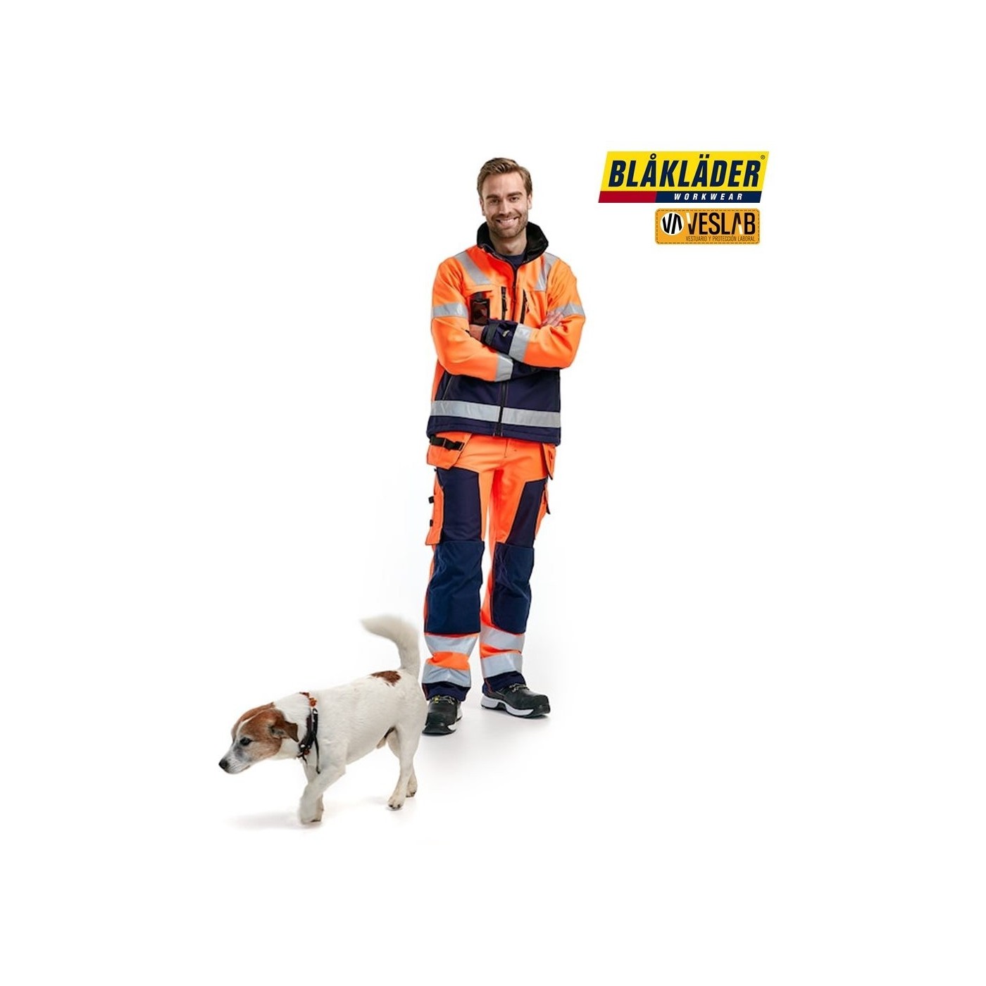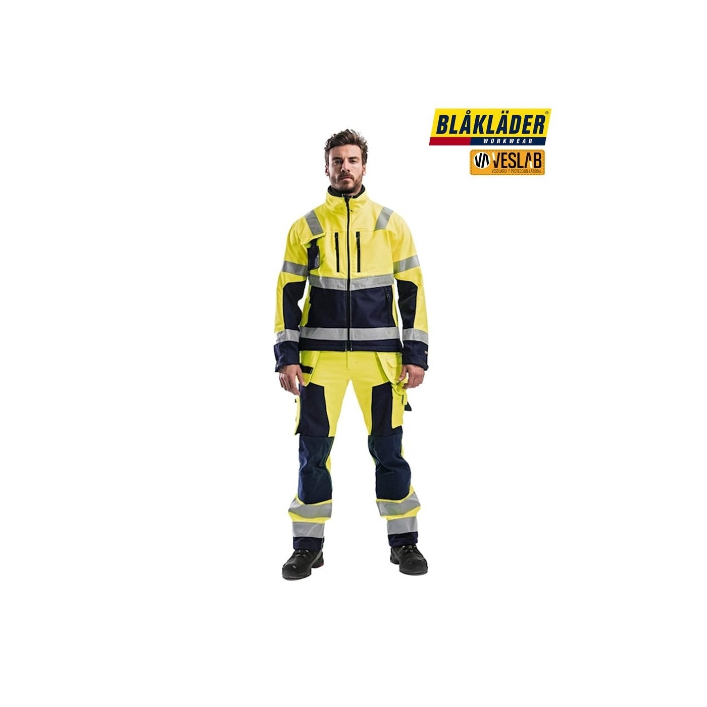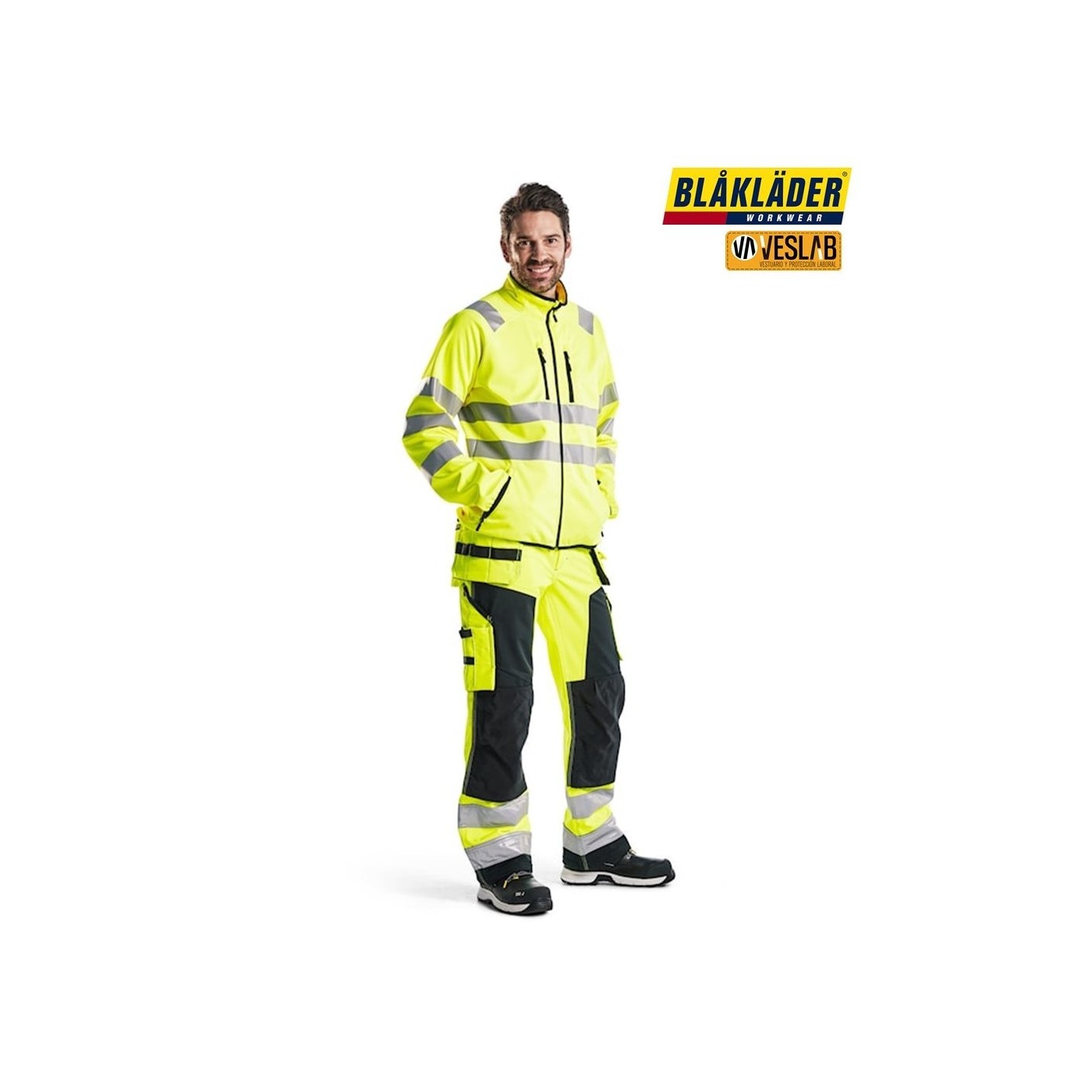 Pantalones de alta visibilidad para trabajadores confeccionados en tejido soft-shell, sumamente cómodo y elástico. Gracias a su moderno entalle contemporáneo y combinado con el tejido elástico, resistente al agua y al viento, estamos ante un pantalón de trabajo ideal para trabajar al aire libre en condiciones extremas.