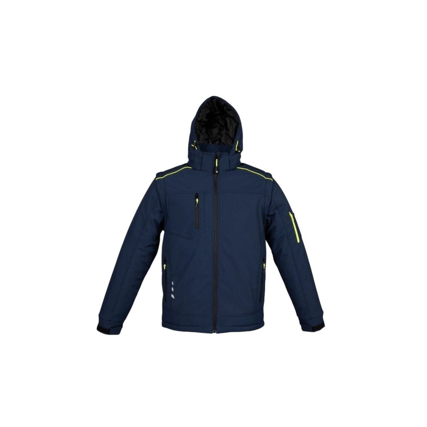 El tejido principal de la chaqueta, compuesto por 96% poliéster y 4% elastano, garantiza elasticidad, durabilidad y resistencia al desgaste. Su estructura soft-shell tricapa la hace impermeable, cortavientos y transpirable, cumpliendo con los estándares de ropa laboral técnica.