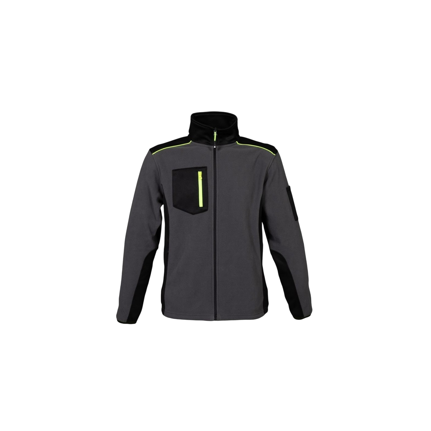 Chaqueta polar antipilling bicolor 100% poliéster y gramaje 280 grs./m2. Presenta un tejido entrelazado unido en Caderas, hombros, parte superior de la espalda, cuello y antebrazos.