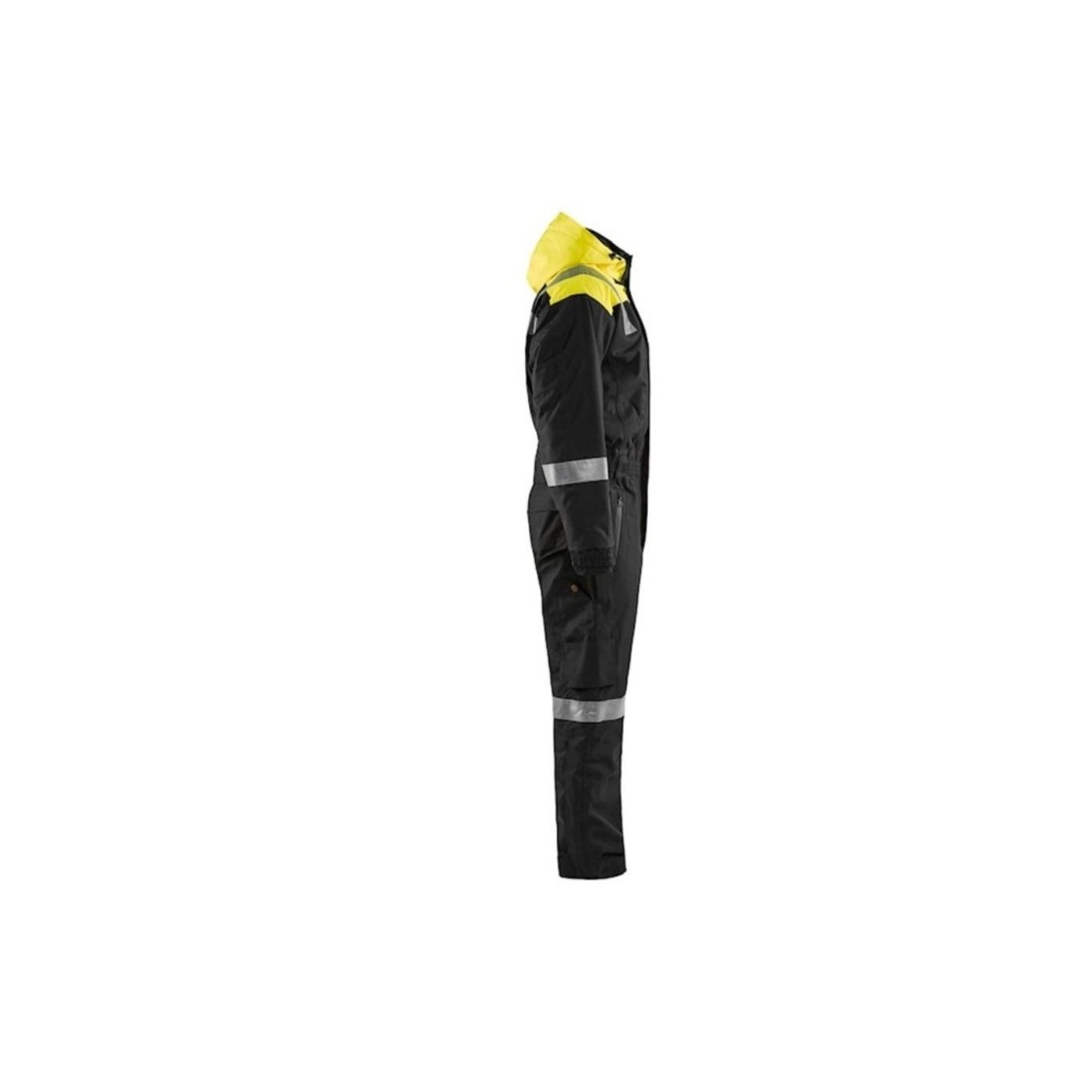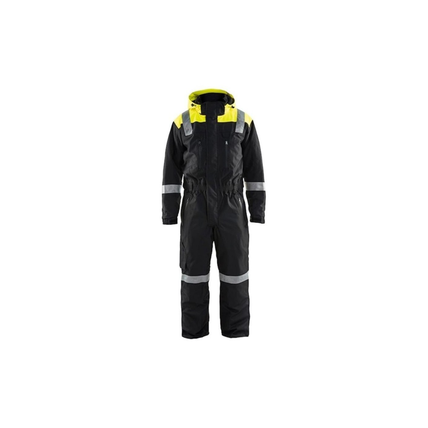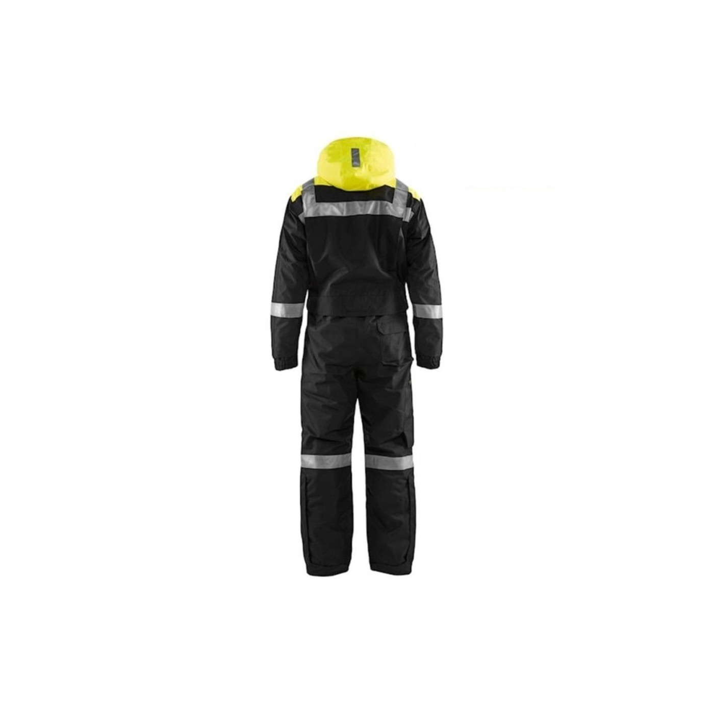 Mono de trabajo para ambientes fríos de trabajo con capucha y detalles reflectantes. 100 % poliéster, Oxford, laminado, a prueba de viento y agua. Tejido transpirable de gramaje 200 g/m². y forro acolchado. Material impermeable y cortavientos, transpirable, con costuras selladas y ventilación debajo de las mangas que evita la sudoración.