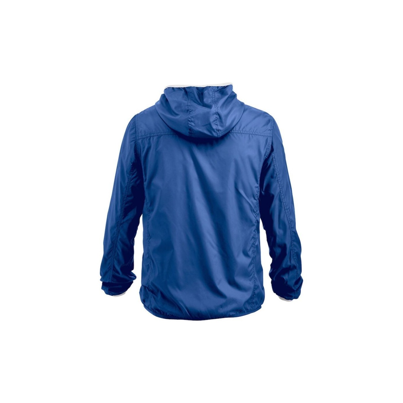 Cortaviento moderno unisex con capucha y cremalleras de aspecto metálicas. Forro interior. Tapeta a contraste alrededor de capucha y mangas.