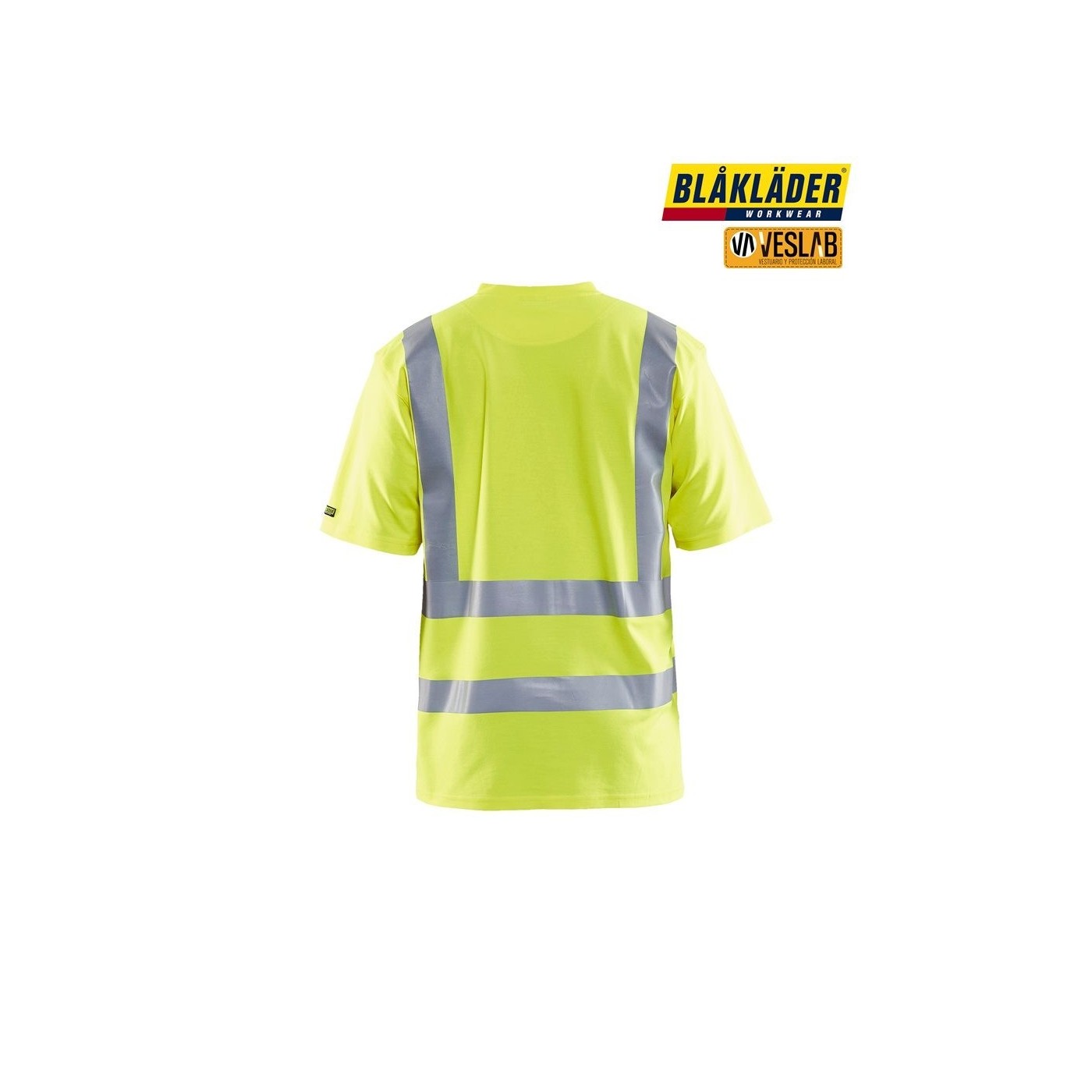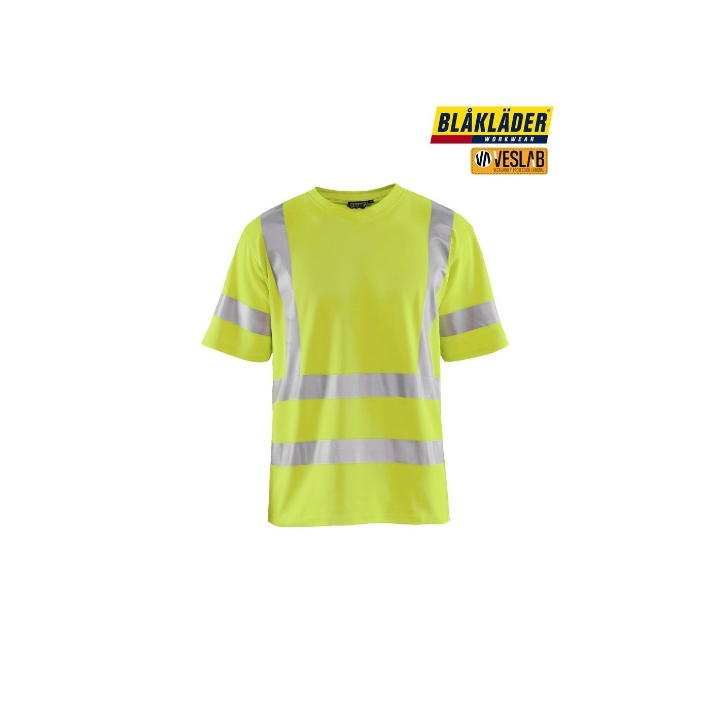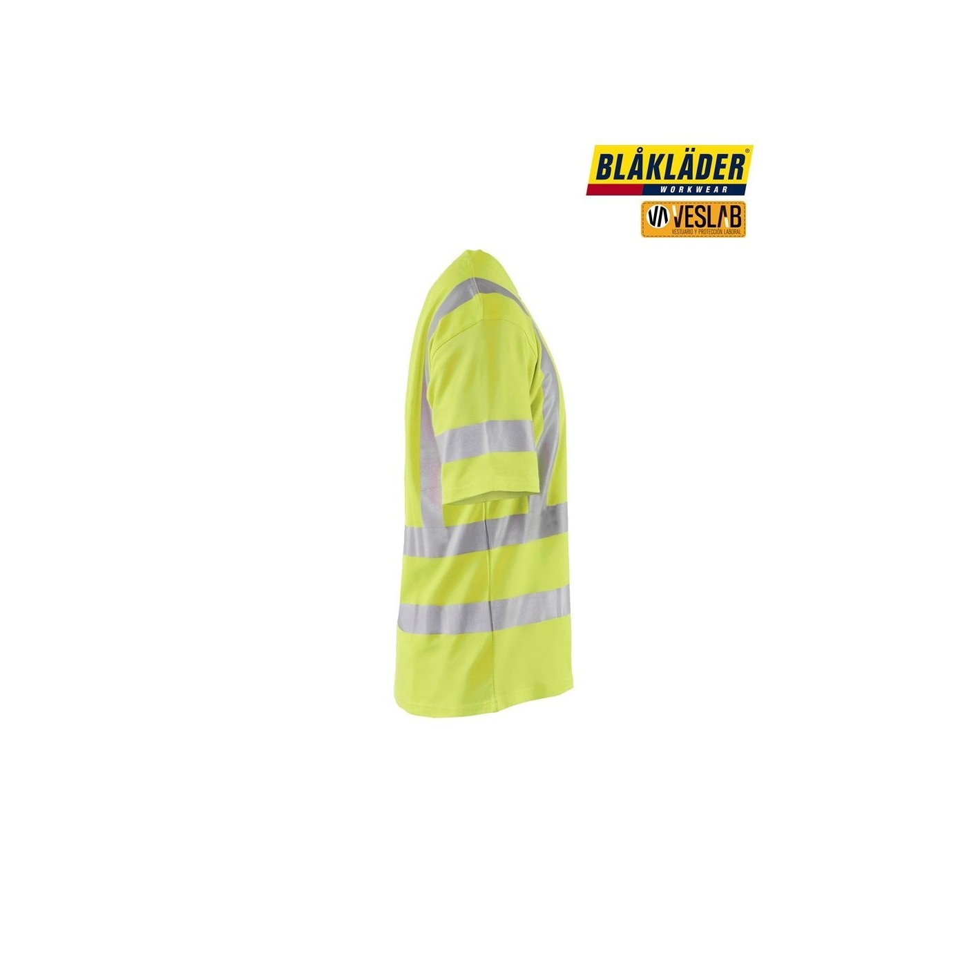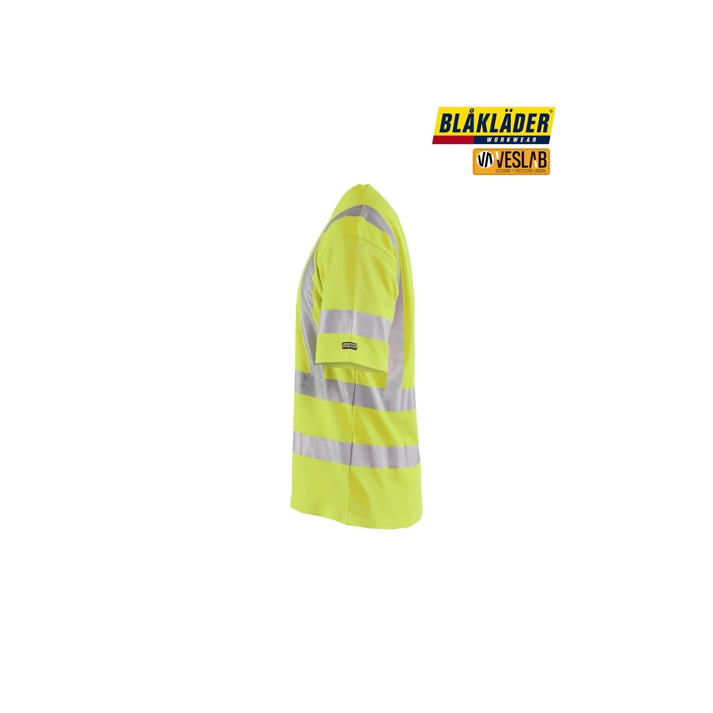 Camiseta de alta visibilidad y mangas cortas con cuello pico y detalles reflectantes elásticos, hecha de un novedoso y cómodo material. La parte interna de la tela es de algodón y la parte externa es sintética, lo cual brinda una gran comodidad y contribuye a disipar los malos olores. La camiseta protege de la radiación UV (UPF de más de 40). Certificación de alta visibilidad y protección UV EN 13758-2UPF 40+.
