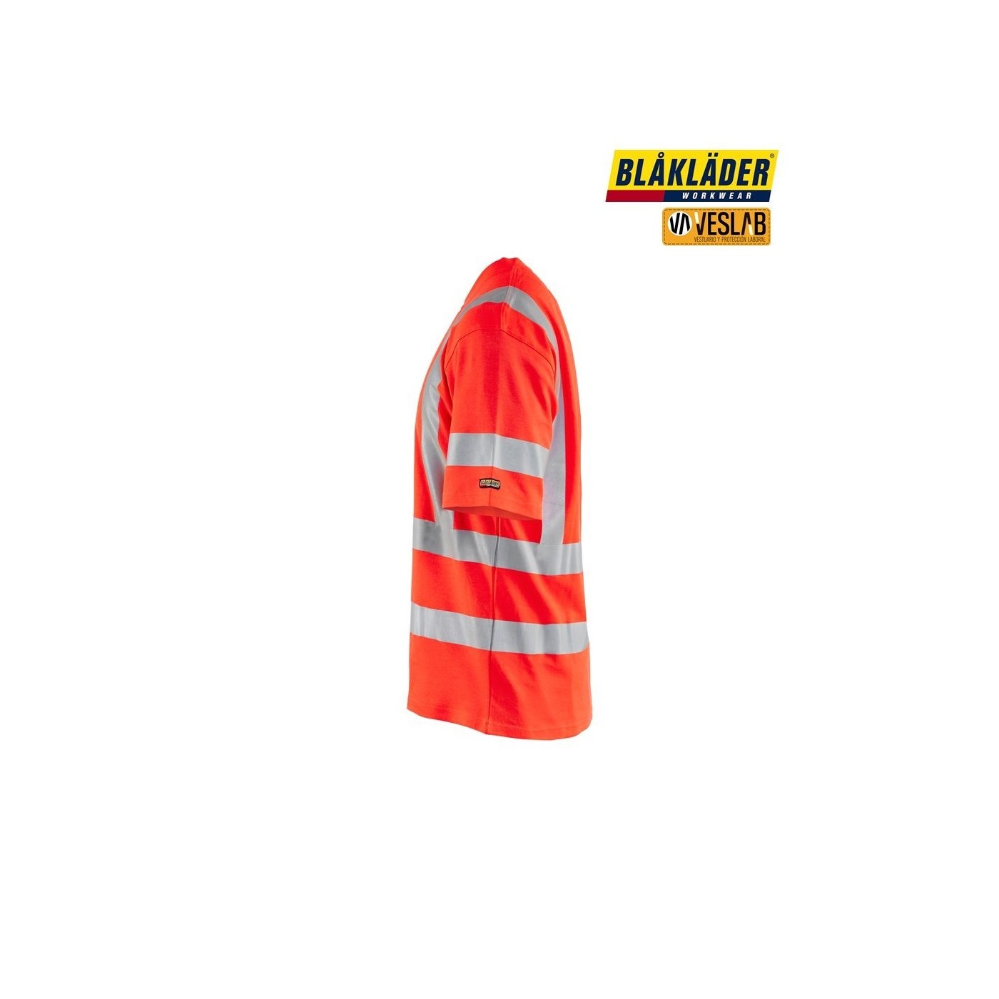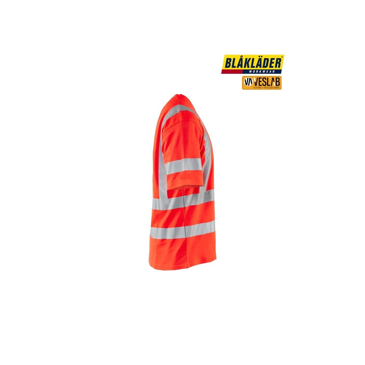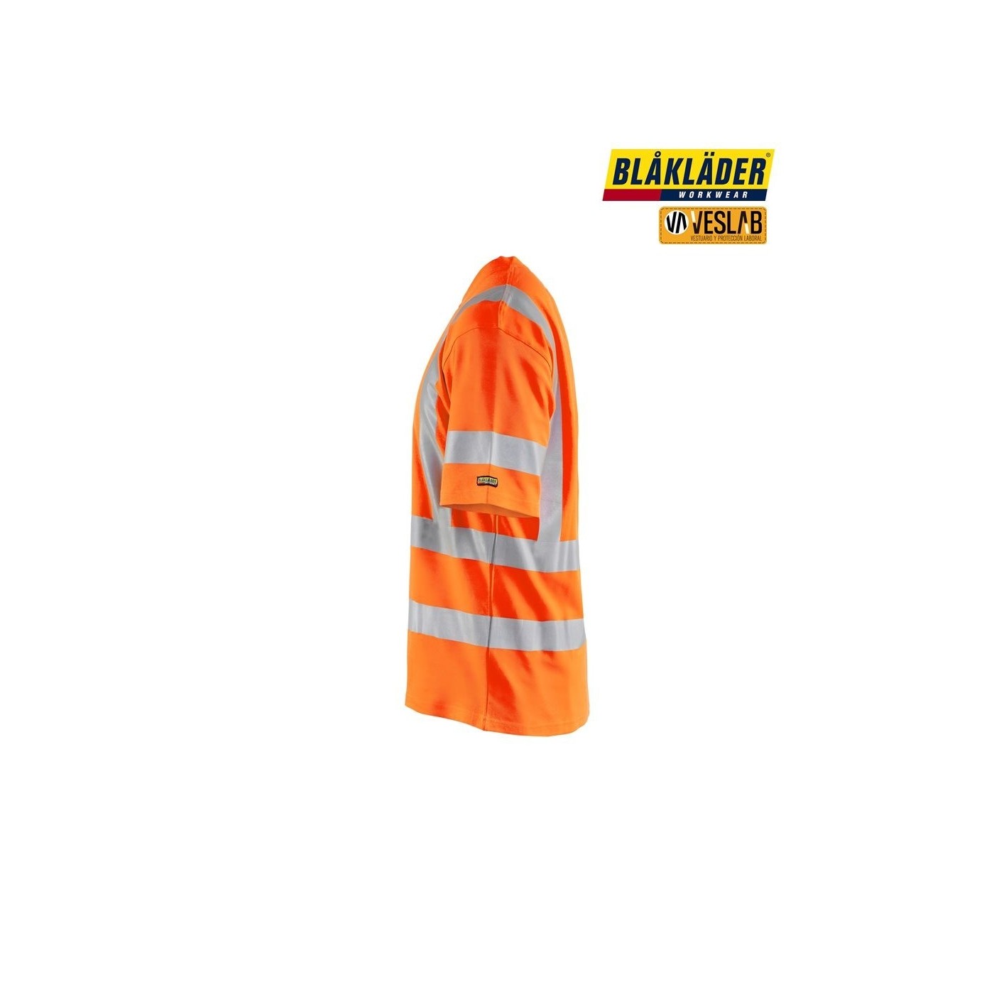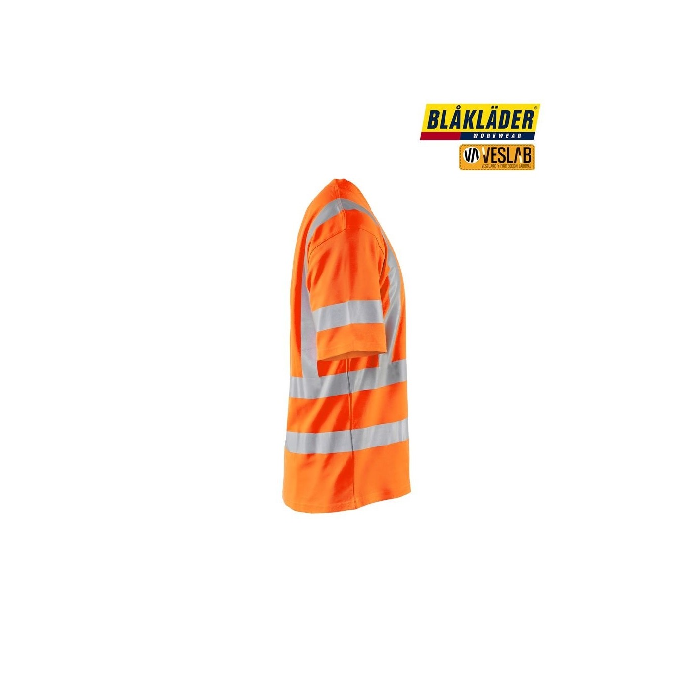 Camiseta de alta visibilidad y mangas cortas con cuello pico y detalles reflectantes elásticos, hecha de un novedoso y cómodo material. La parte interna de la tela es de algodón y la parte externa es sintética, lo cual brinda una gran comodidad y contribuye a disipar los malos olores. La camiseta protege de la radiación UV (UPF de más de 40). Certificación de alta visibilidad y protección UV EN 13758-2UPF 40+.