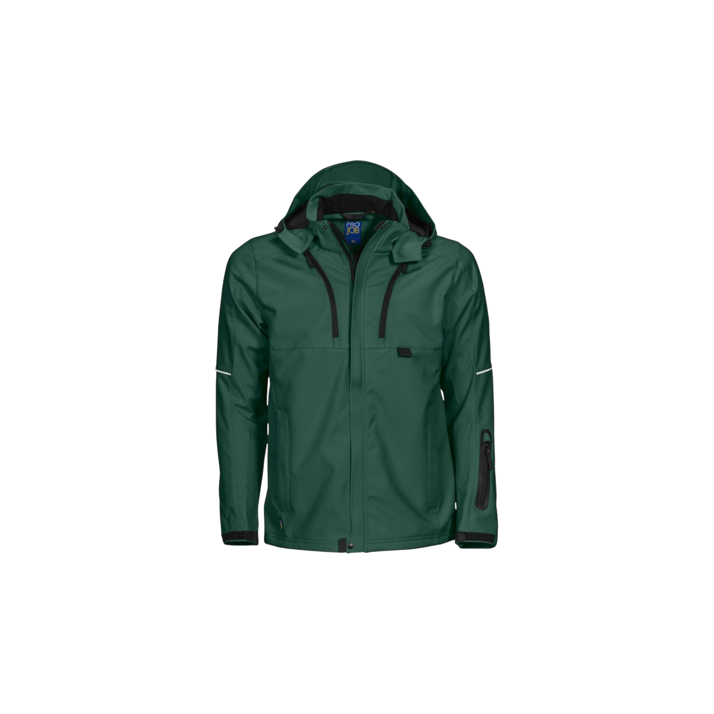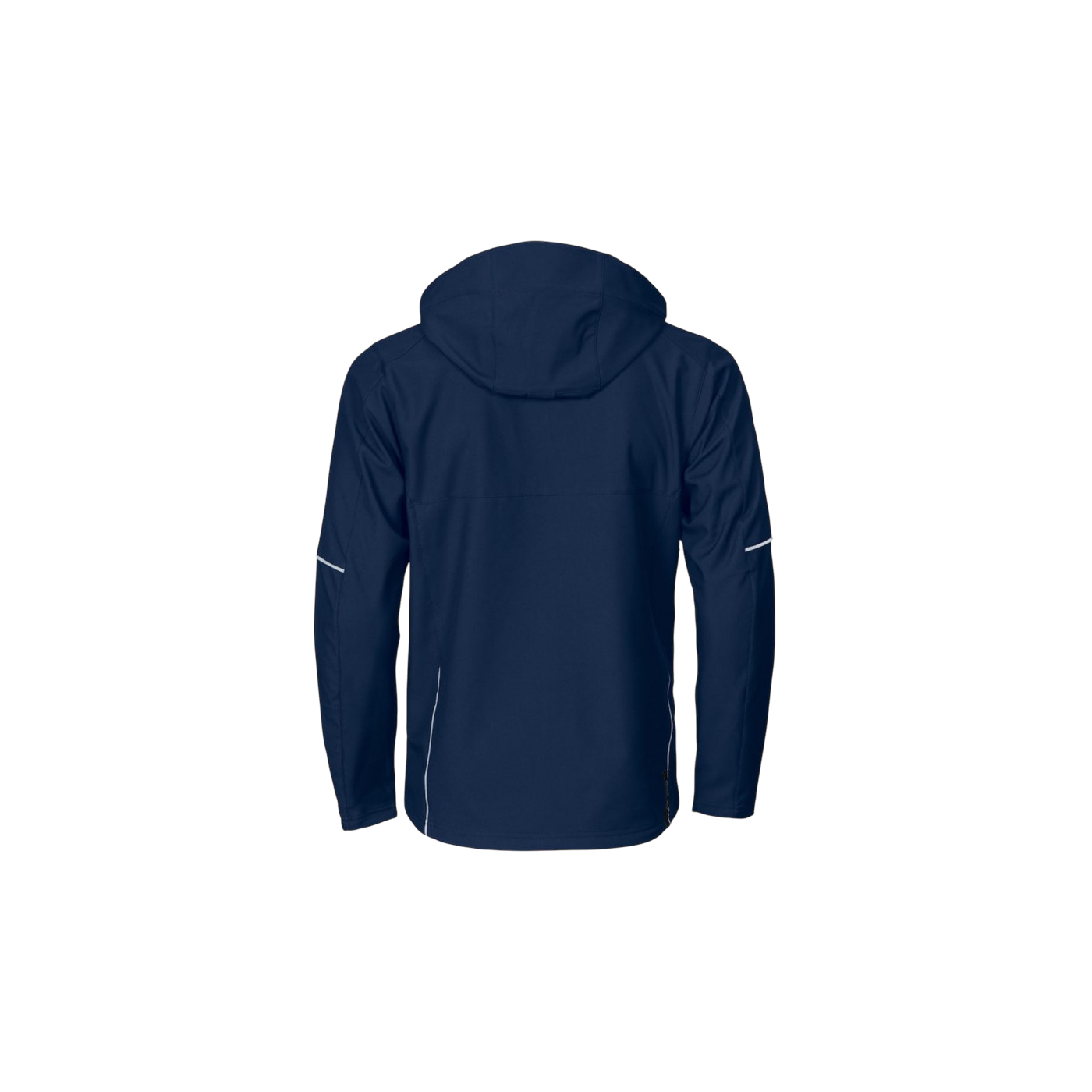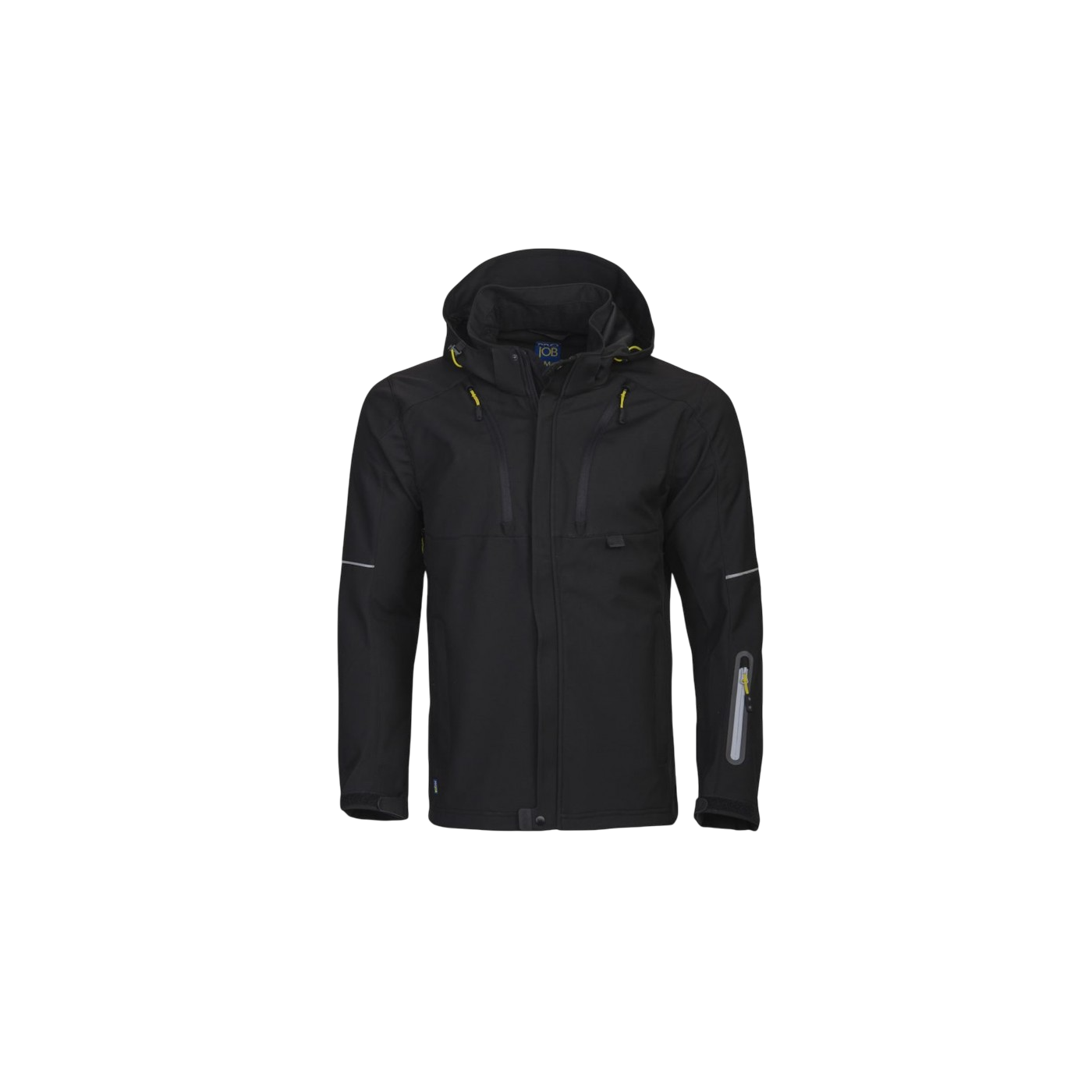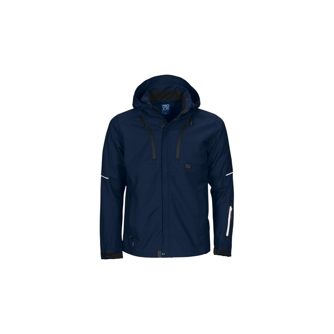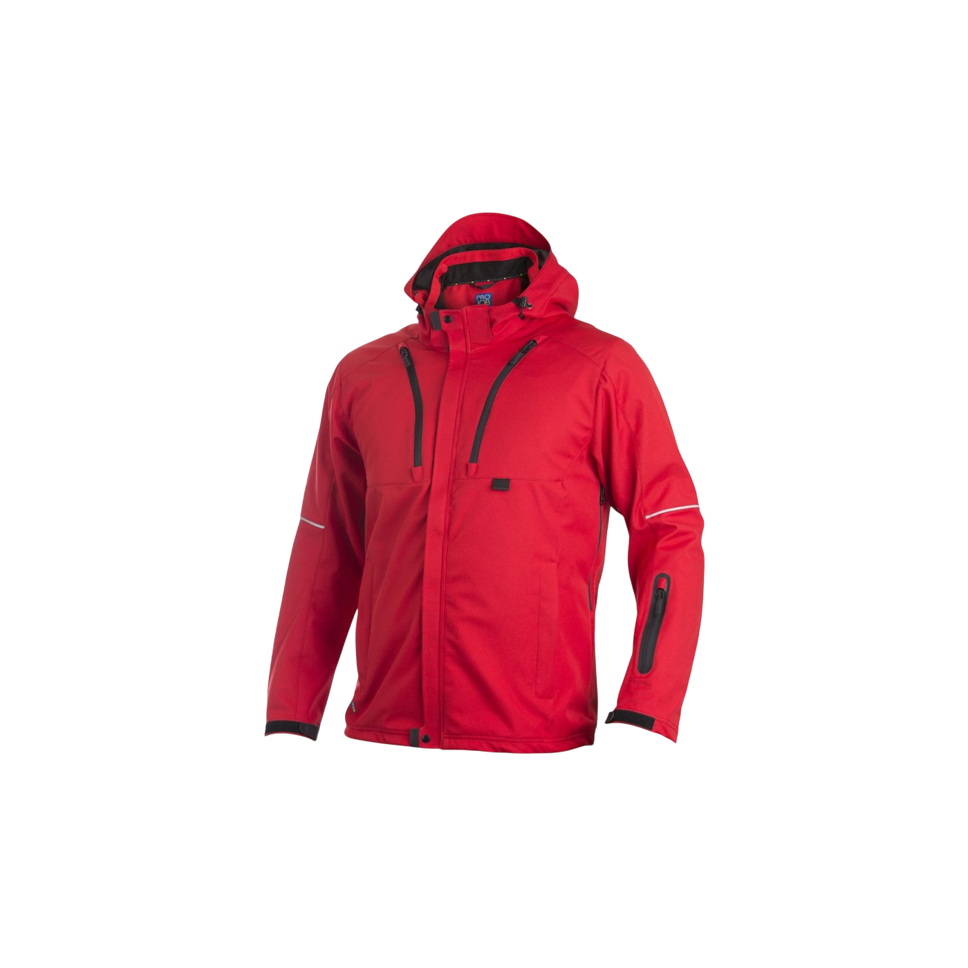 Chaqueta de trabajo en tejido Soft-shell repelente a viento y agua. Dispone de dos bolsillos frontales, el izquierdo con bolsillo interior para el teléfono y tarjeta identificativa. Dos bolsillos laterales. Cremallera de ventilación debajo de axilas. Cordón en cintura. Puños ajustables. Vivo reflectante en mangas y detrás para una mejor visibilidad. Capucha extraíble. Forro polar en cuello para un mejor confort.