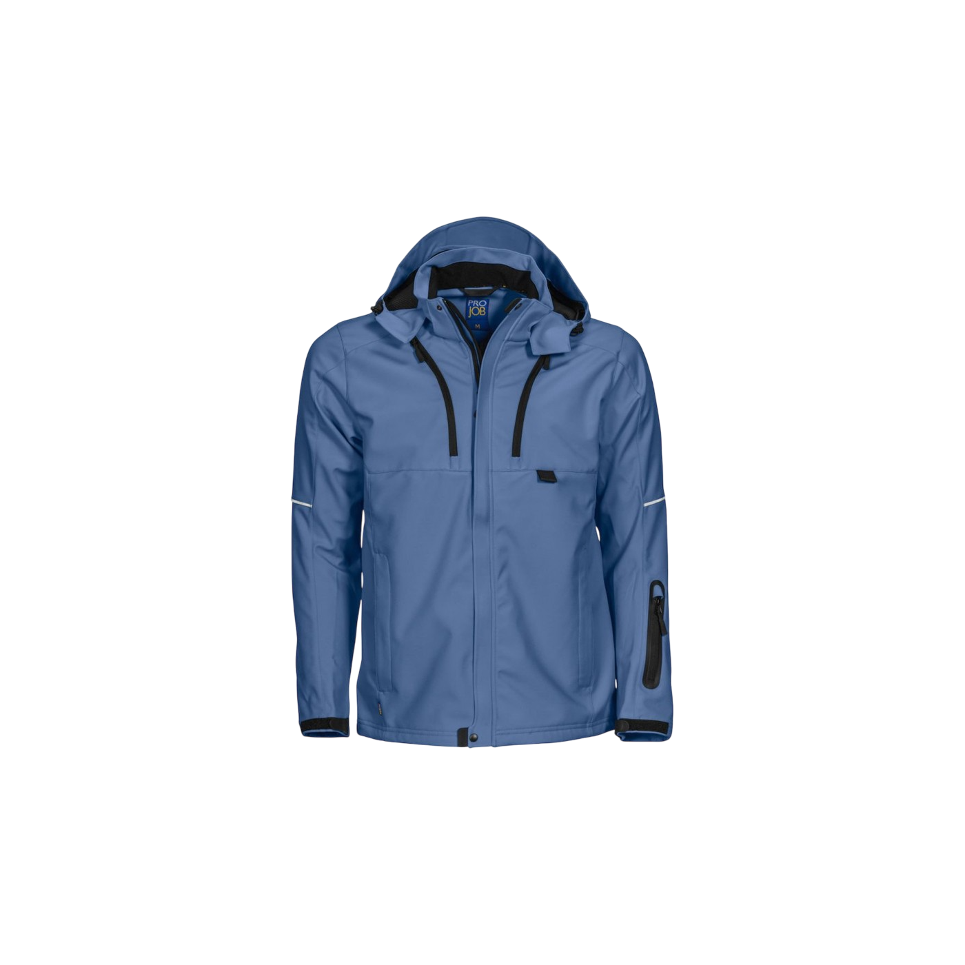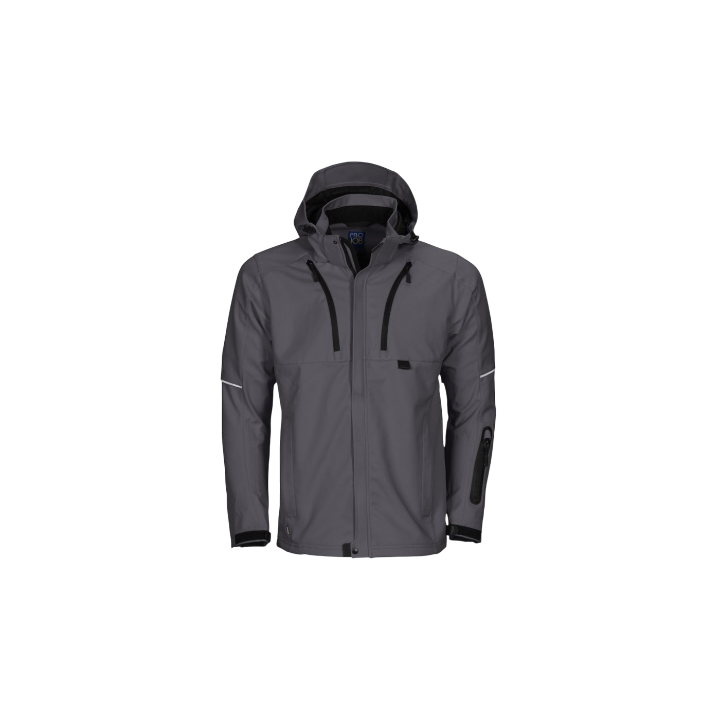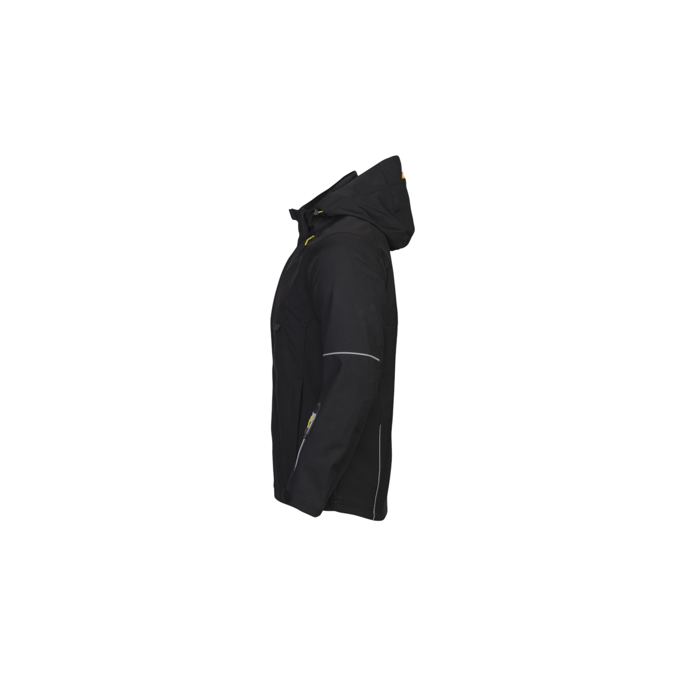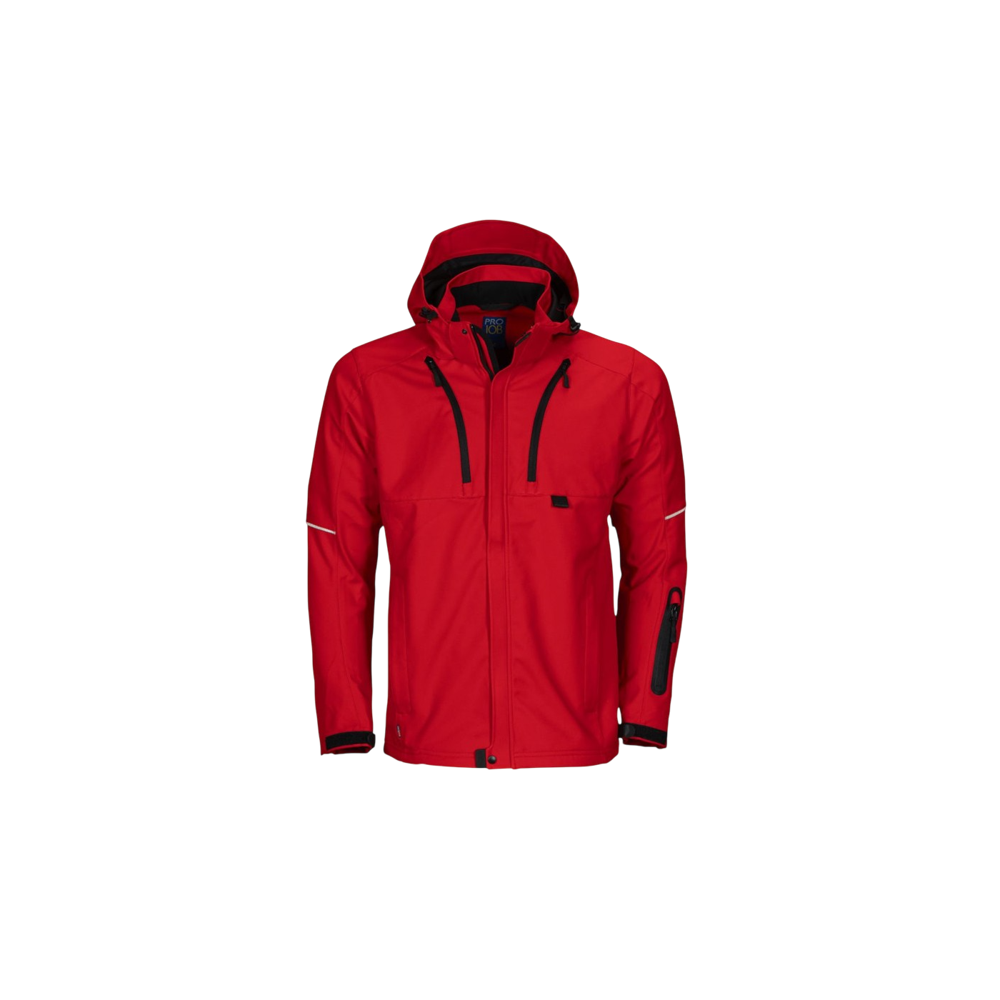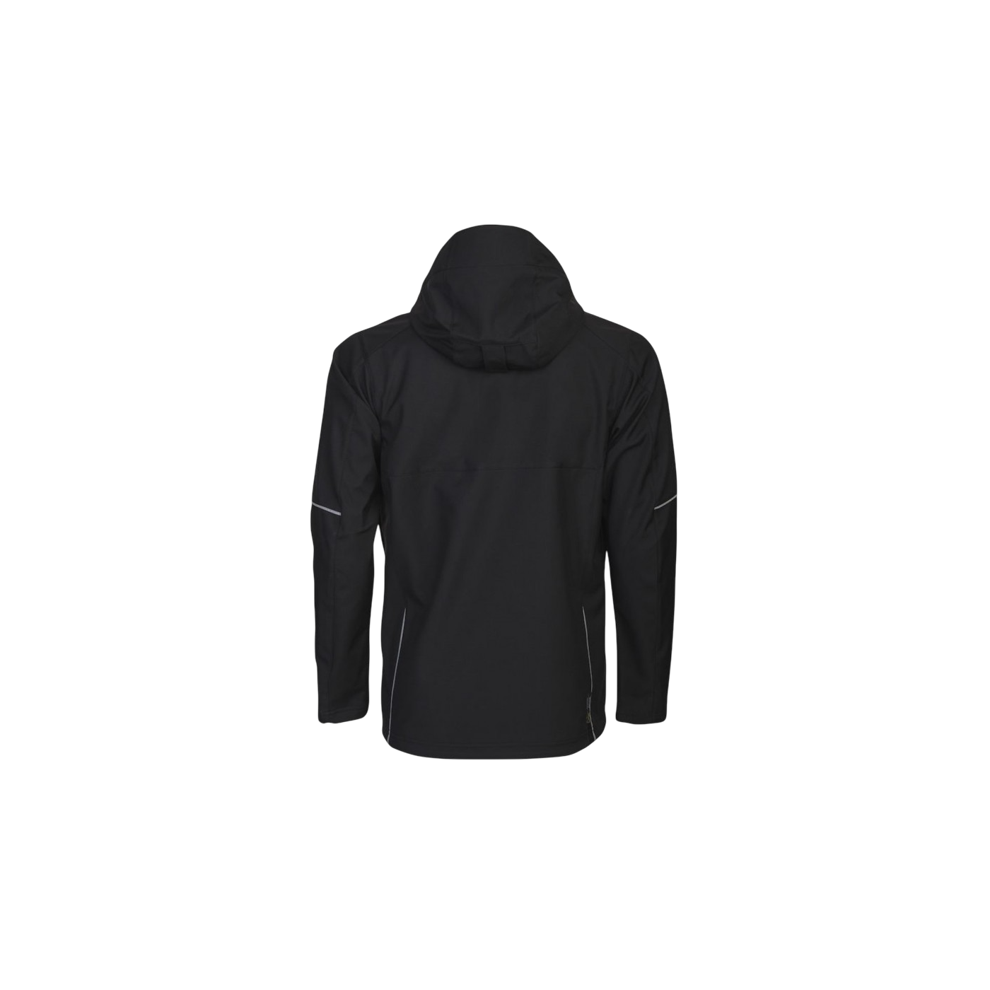 Chaqueta de trabajo en tejido Soft-shell repelente a viento y agua. Dispone de dos bolsillos frontales, el izquierdo con bolsillo interior para el teléfono y tarjeta identificativa. Dos bolsillos laterales. Cremallera de ventilación debajo de axilas. Cordón en cintura. Puños ajustables. Vivo reflectante en mangas y detrás para una mejor visibilidad. Capucha extraíble. Forro polar en cuello para un mejor confort.