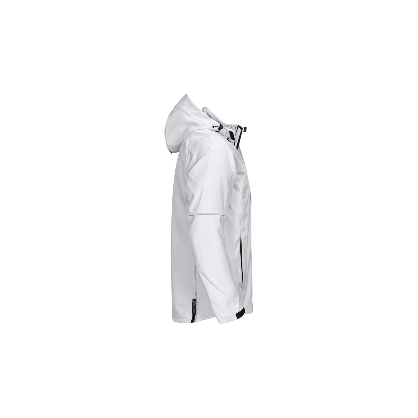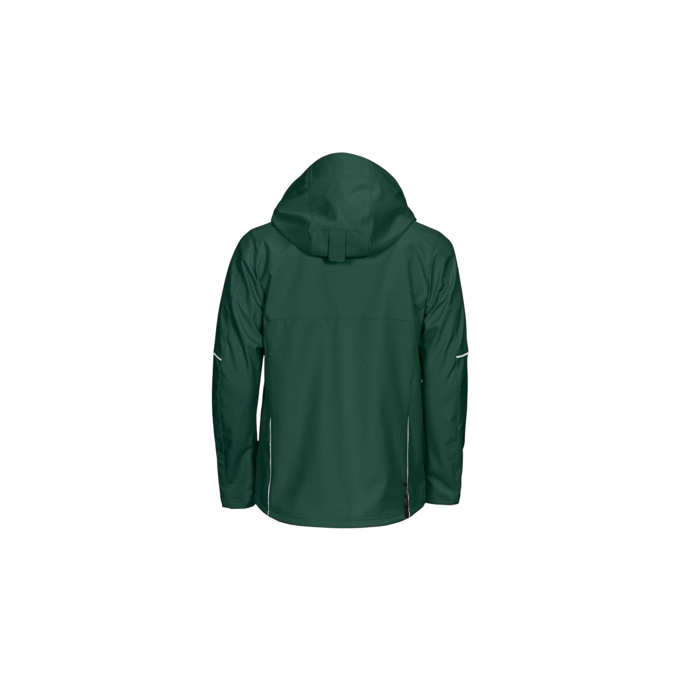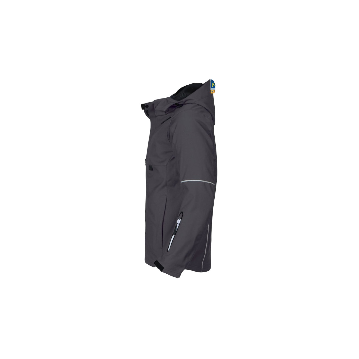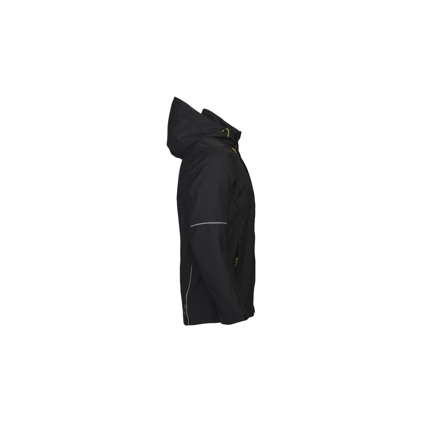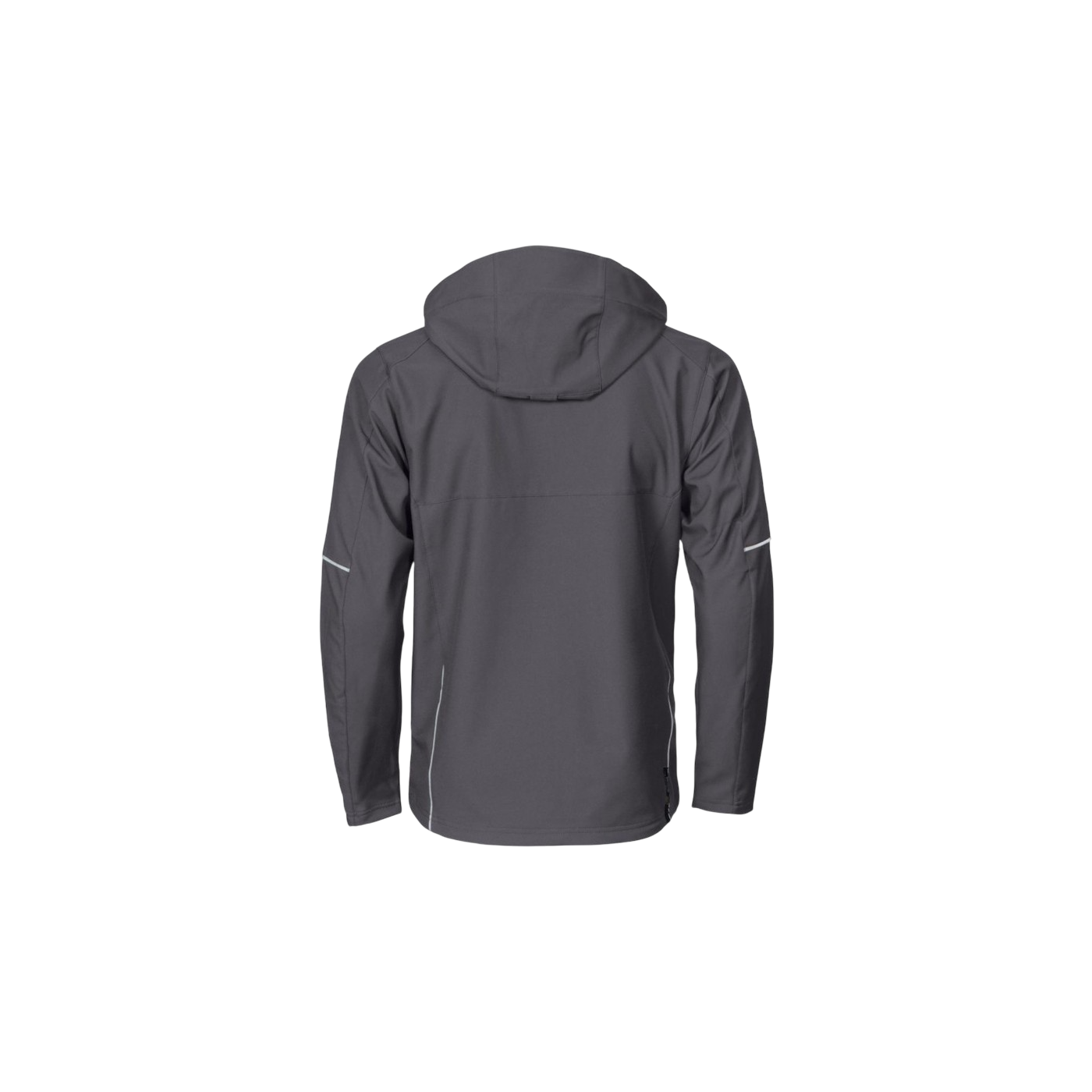 Chaqueta de trabajo en tejido Soft-shell repelente a viento y agua. Dispone de dos bolsillos frontales, el izquierdo con bolsillo interior para el teléfono y tarjeta identificativa. Dos bolsillos laterales. Cremallera de ventilación debajo de axilas. Cordón en cintura. Puños ajustables. Vivo reflectante en mangas y detrás para una mejor visibilidad. Capucha extraíble. Forro polar en cuello para un mejor confort.