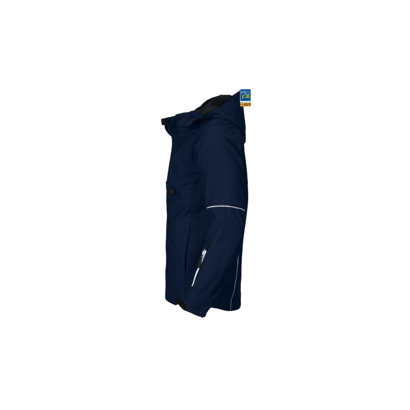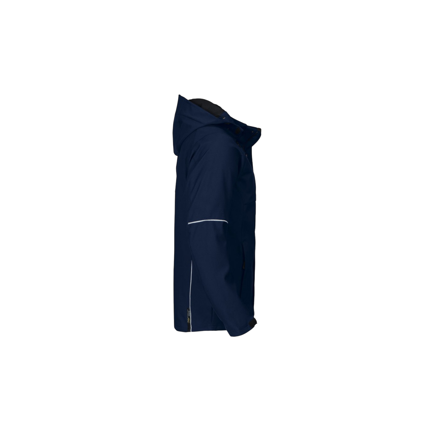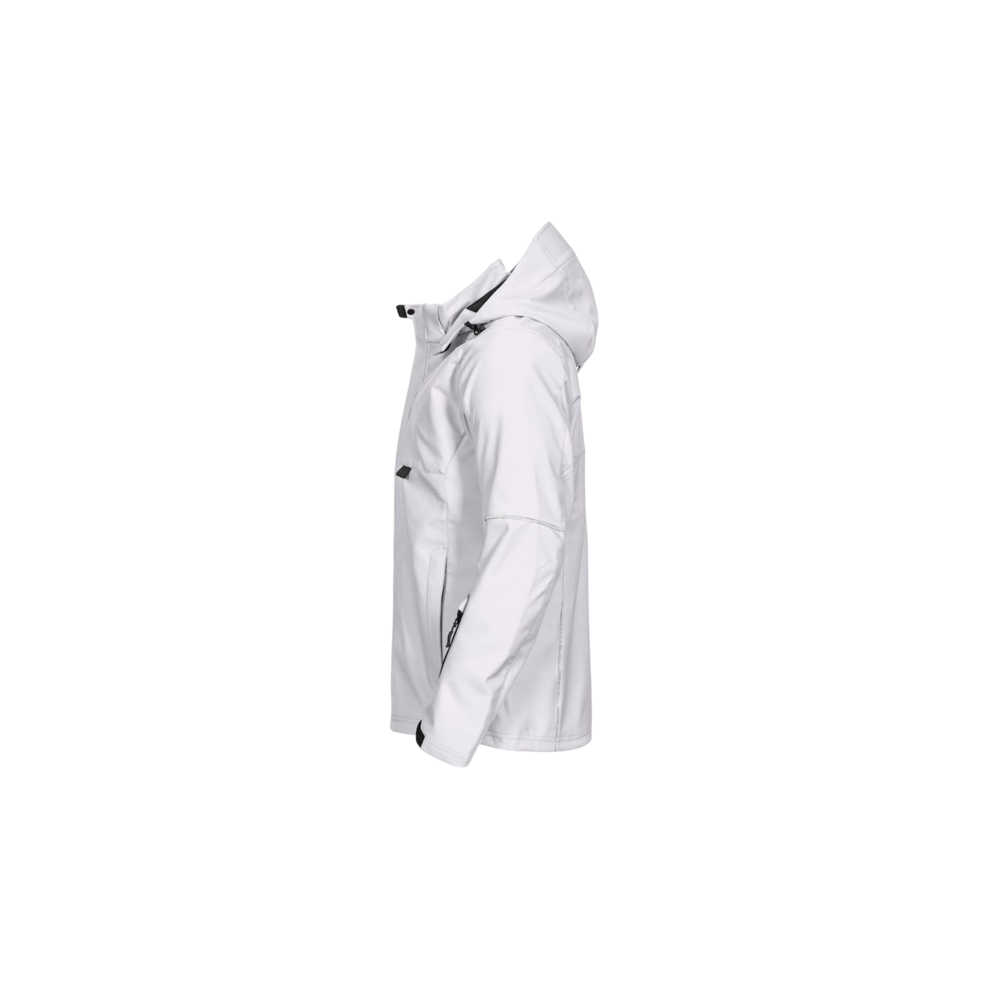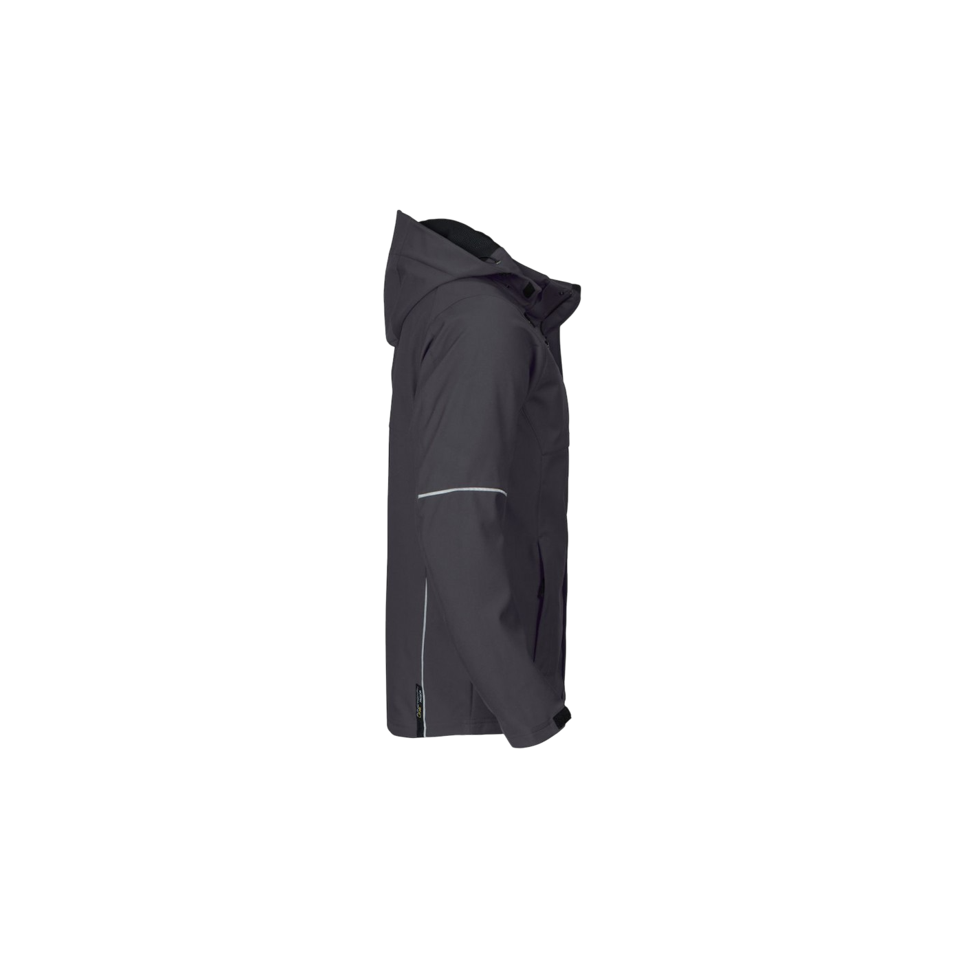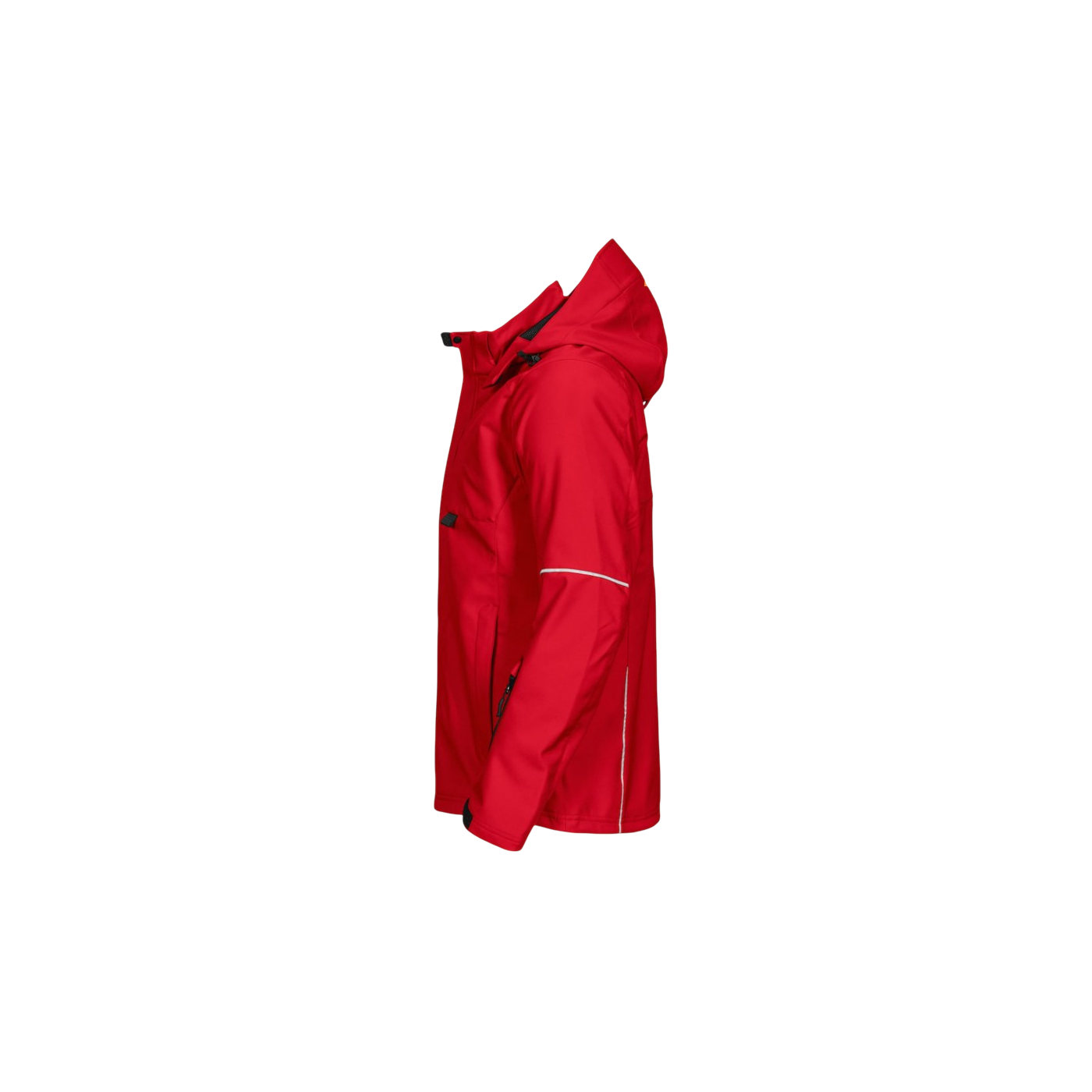 Chaqueta de trabajo en tejido Soft-shell repelente a viento y agua. Dispone de dos bolsillos frontales, el izquierdo con bolsillo interior para el teléfono y tarjeta identificativa. Dos bolsillos laterales. Cremallera de ventilación debajo de axilas. Cordón en cintura. Puños ajustables. Vivo reflectante en mangas y detrás para una mejor visibilidad. Capucha extraíble. Forro polar en cuello para un mejor confort.