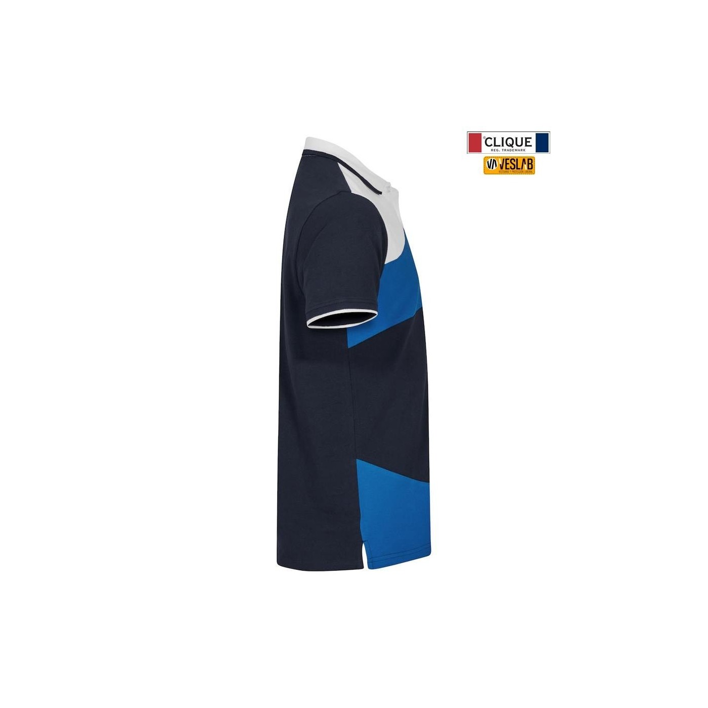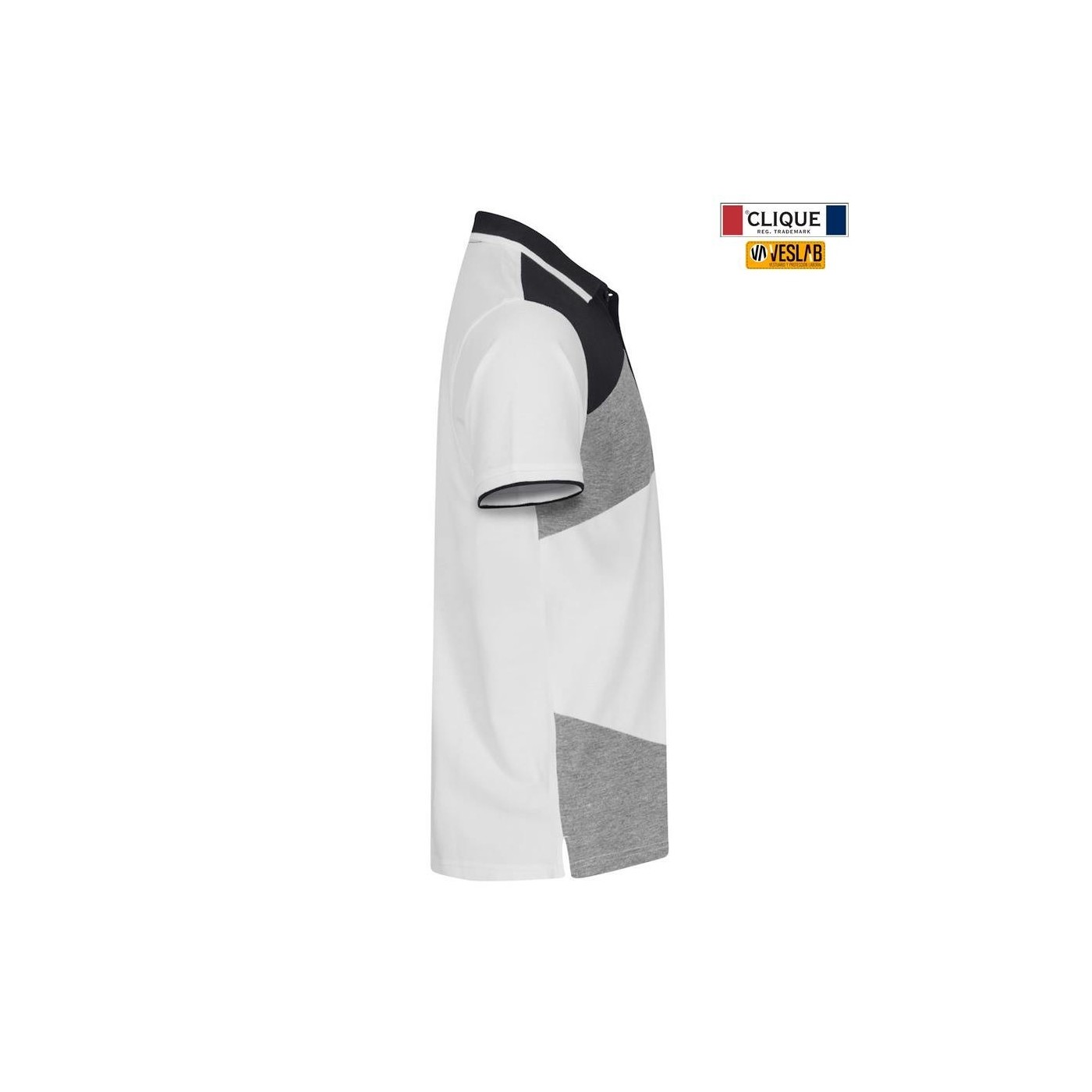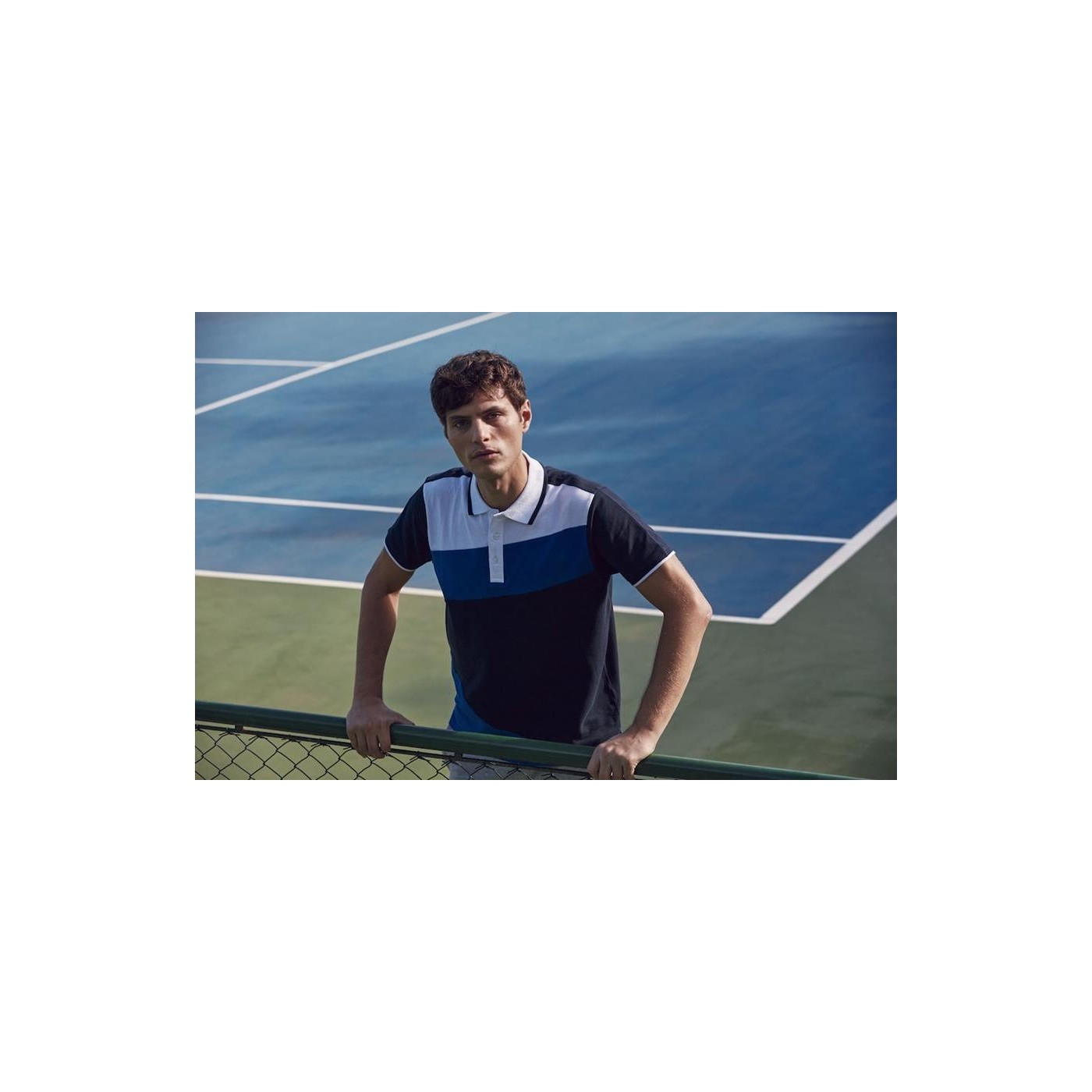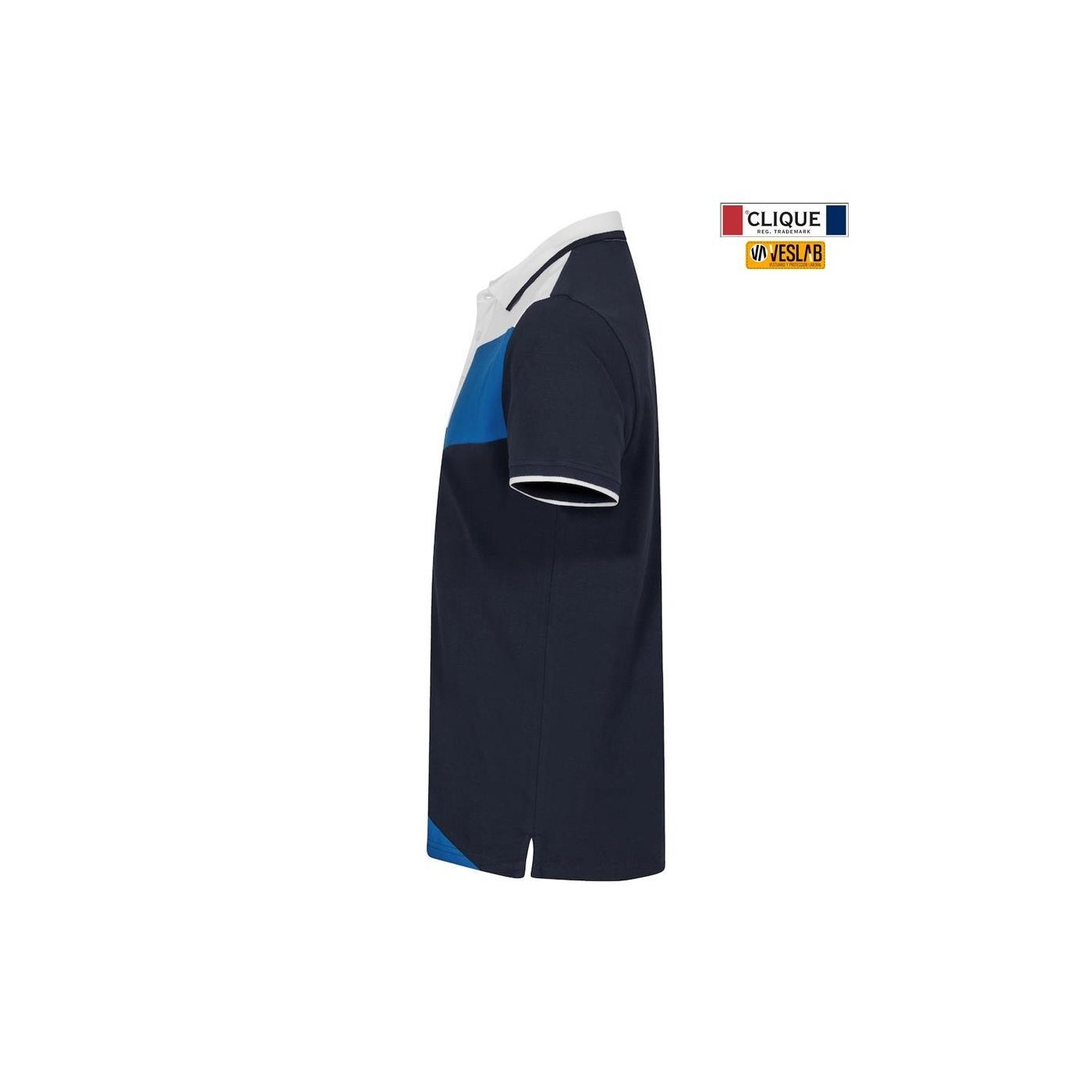 Polo unisex de contraste de líneas limpias. Raya de color de contraste en el cuello y la manga. Aberturas laterales detalladas y 3 botones tono a tono.