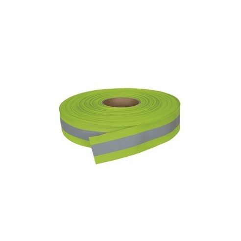 Rollo de cinta retrorreflectante con base textil, adecuada para coser a las prendas de ropa. Compuesta por una banda central estrecha, gris plata retrorreflectante, sobre una base textil en diferentes colores. Sistema de retrorreflexión por microesferas. Venta por rollos completos. Rollo de 100 m. Ancho 5 cm.
