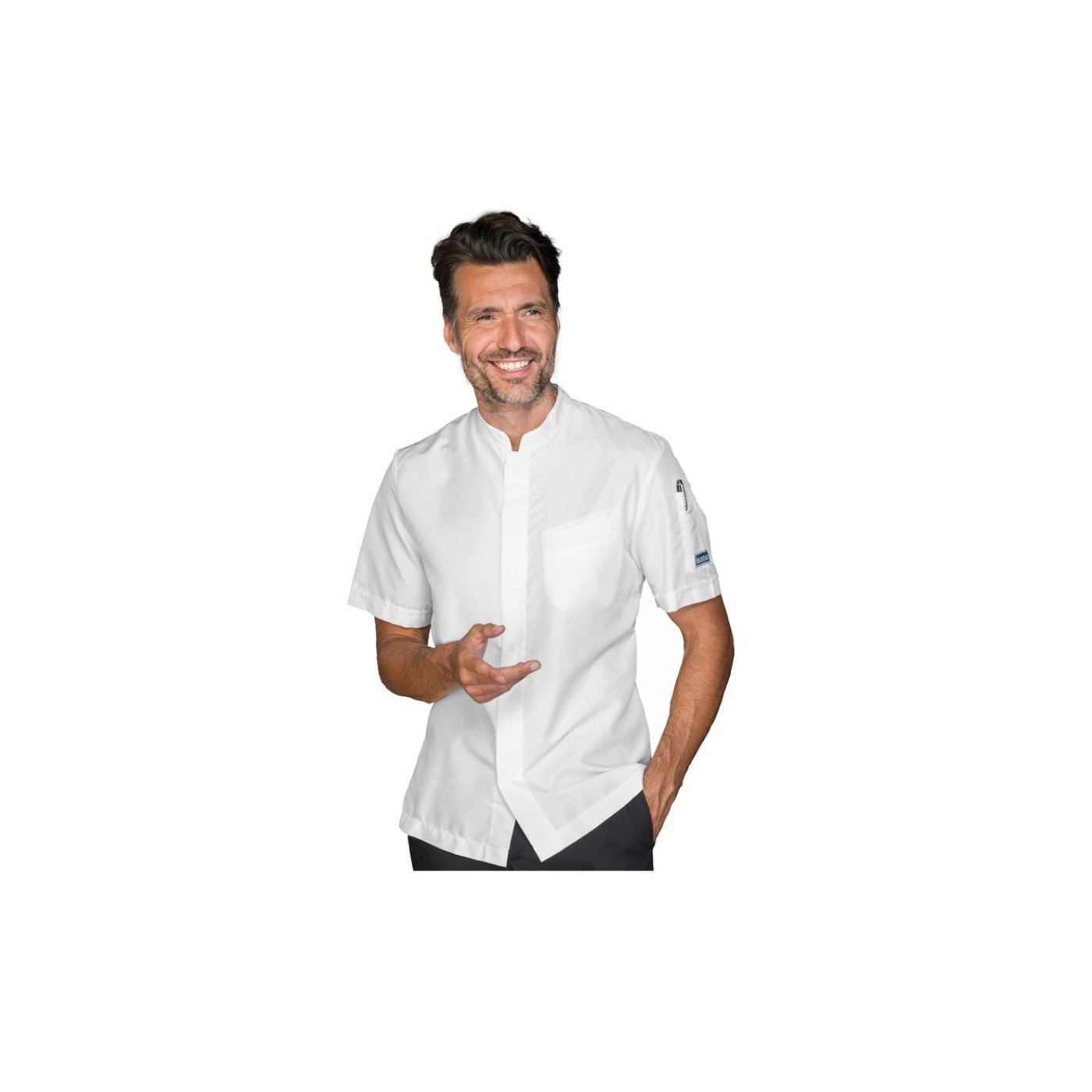 ¿Buscas una chaqueta que combine estilo, comodidad y funcionalidad? La Chaqueta de Cocina Manga Corta Bradford de Isacco es tu mejor elección.