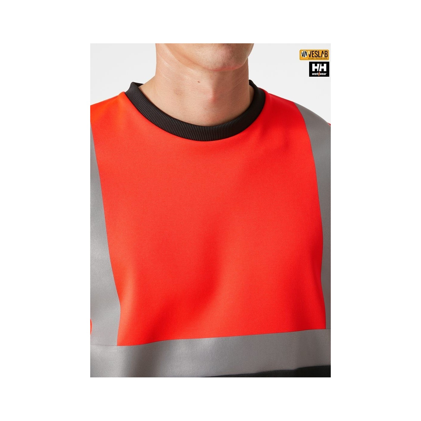 Este jersey de alta visibilidad de Helly Hansen Workwear se encuentra disponible en colores Amarillo Flúo, rojo y naranja. Consta de certificaciones europeas de protección y visibilidad. También tiene un tejido acanalado alrededor del cuello y en la parte inferior de la manga y el dobladillo con la finalidad de ofrecer mayor comodidad.