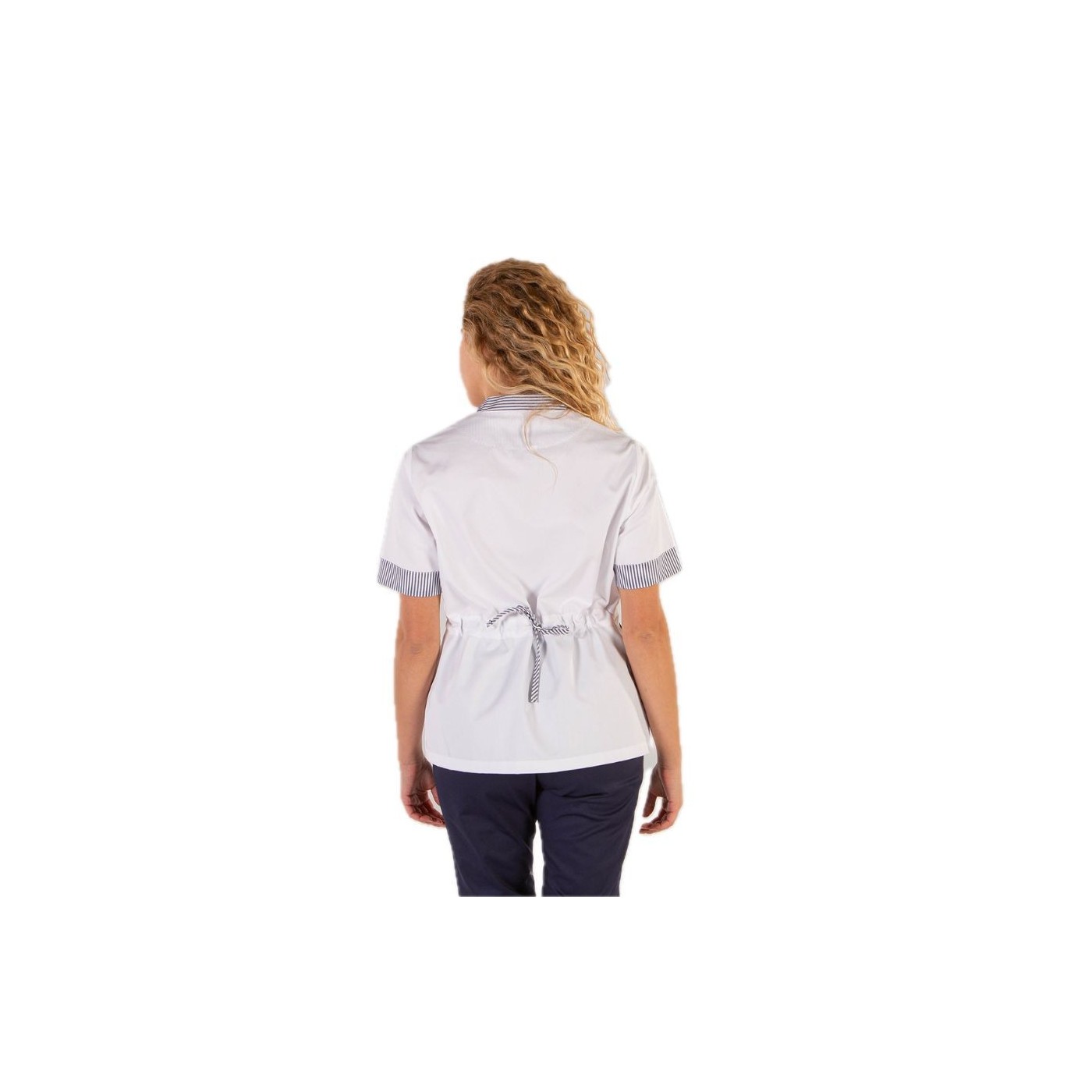 Experimenta el equilibrio perfecto entre comodidad y estilo con la Blusa Mujer Noemí. Diseñada para profesionales de la salud, esta casaca de manga corta ofrece un ajuste favorecedor con detalles funcionales. Confeccionada en sarga blanca con detalles en vichy de rayas, es ideal para hospitales, clínicas y servicios de limpieza.