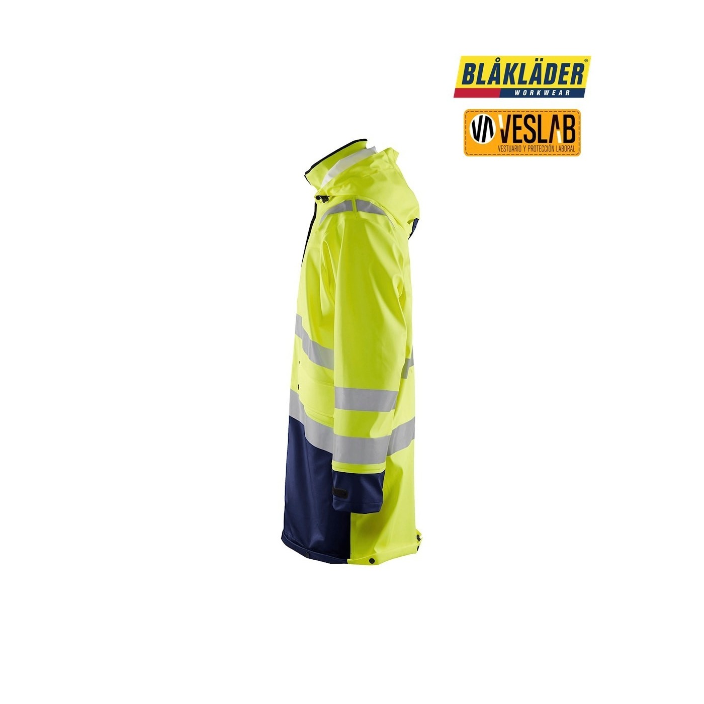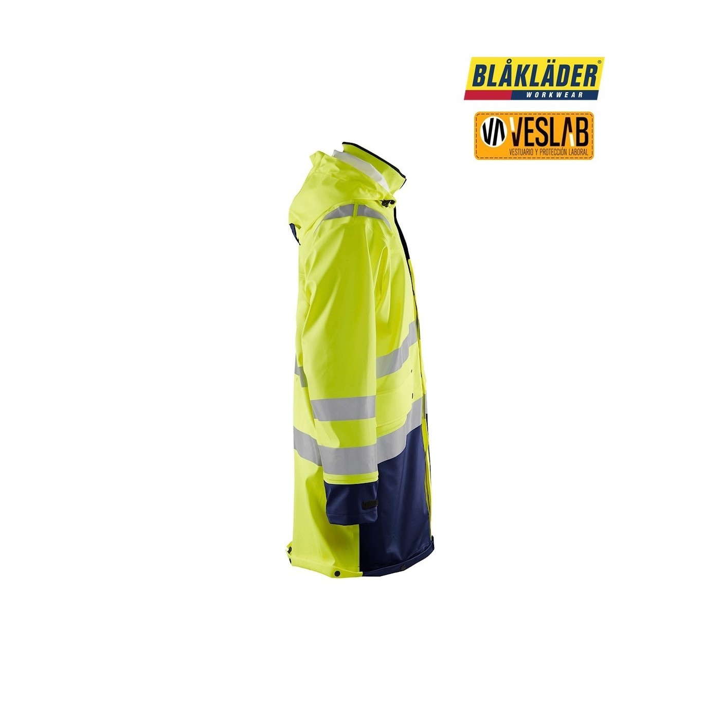 La chaqueta impermeable de alta visibilidad nivel 3 de Blåkläder es una opción confiable para aquellos que necesitan una prenda resistente al desgaste y capaz de soportar condiciones climáticas adversas. Fabricada con un tejido duradero de poliéster recubierto de PVC y poliuretano, esta chaqueta ofrece protección contra el viento y el agua, manteniendo al usuario seco y cómodo.