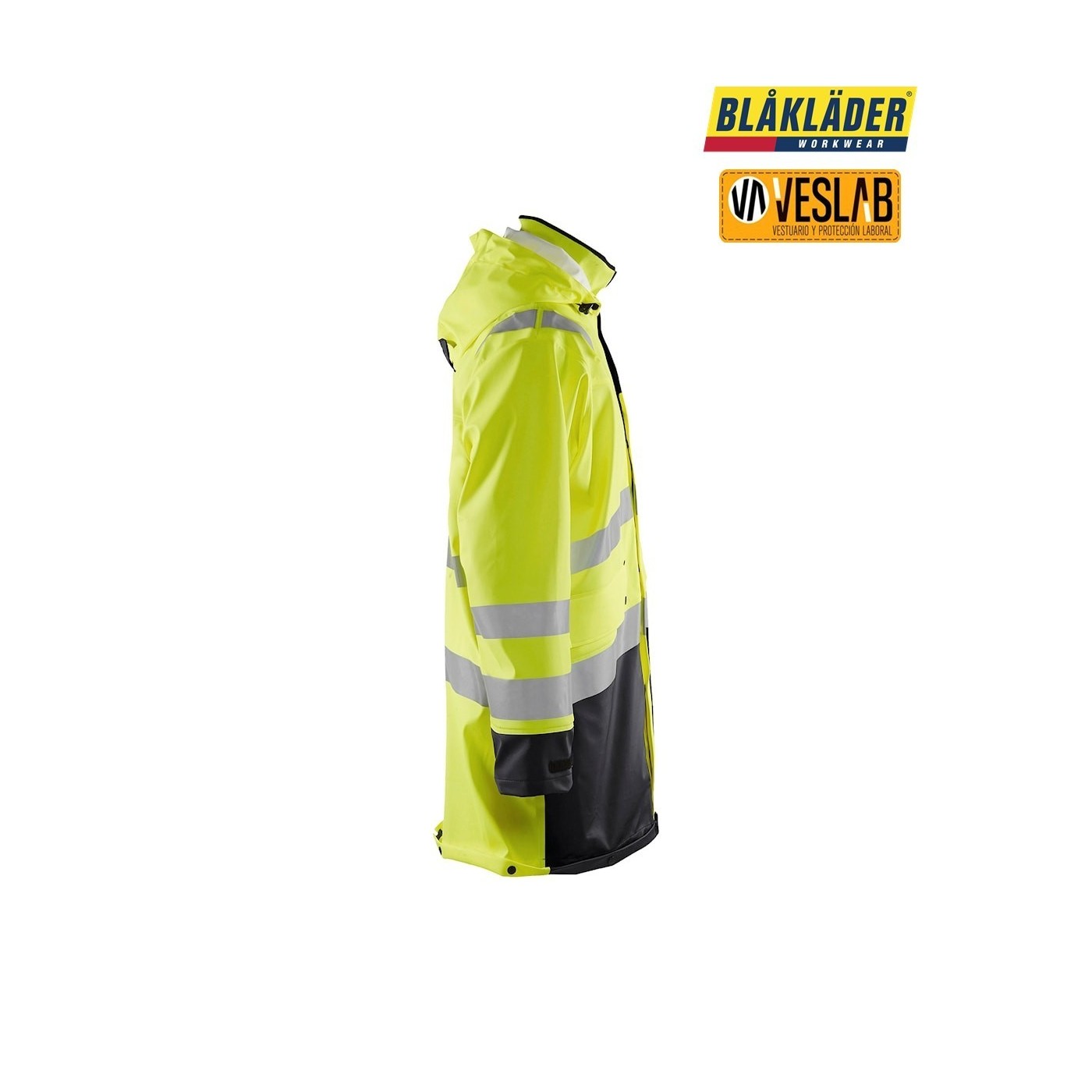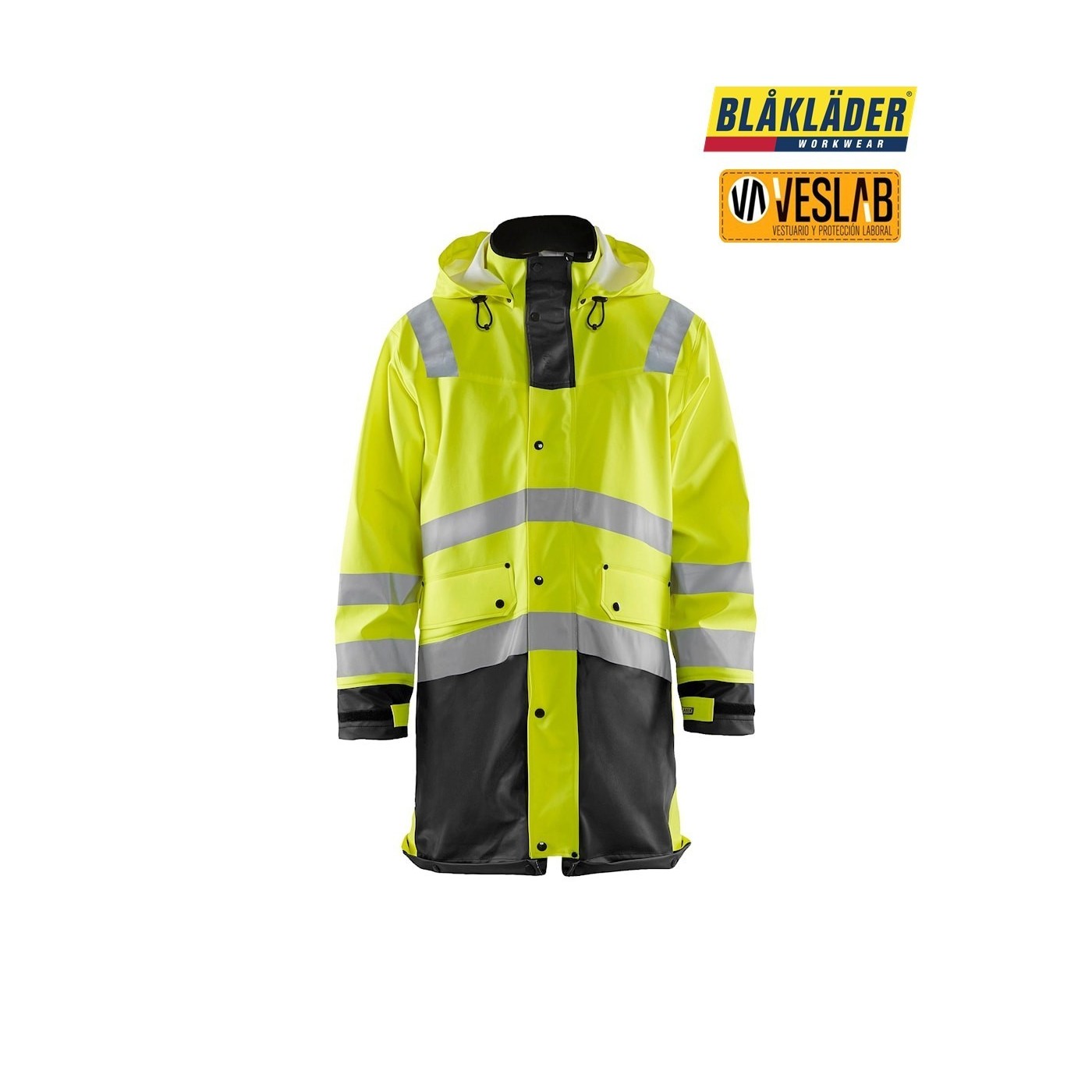 La chaqueta impermeable de alta visibilidad nivel 3 de Blåkläder es una opción confiable para aquellos que necesitan una prenda resistente al desgaste y capaz de soportar condiciones climáticas adversas. Fabricada con un tejido duradero de poliéster recubierto de PVC y poliuretano, esta chaqueta ofrece protección contra el viento y el agua, manteniendo al usuario seco y cómodo.