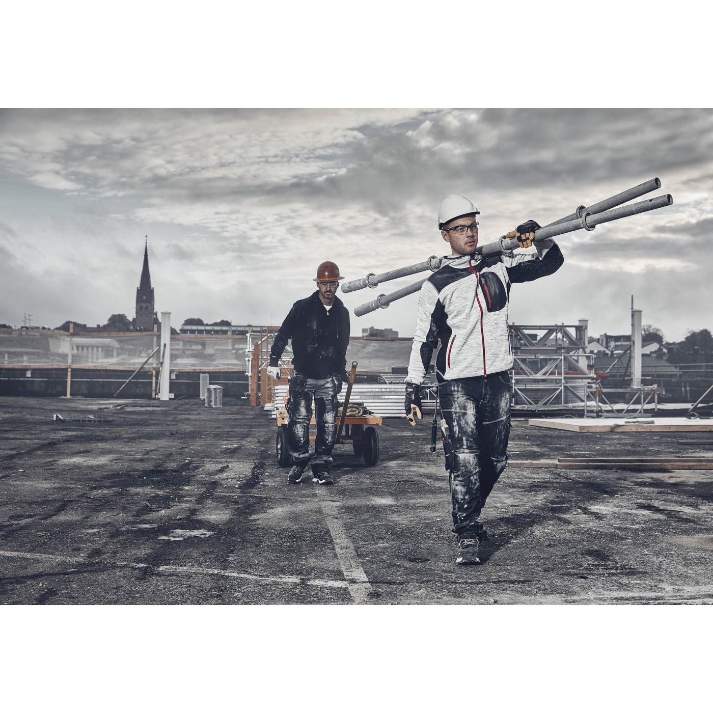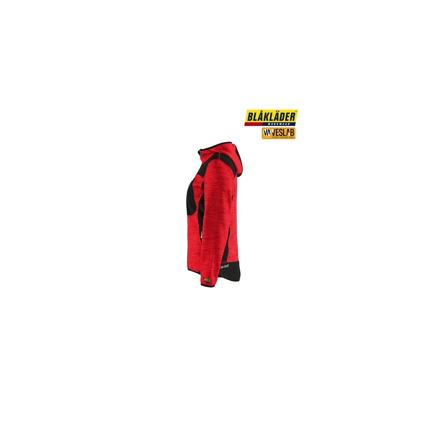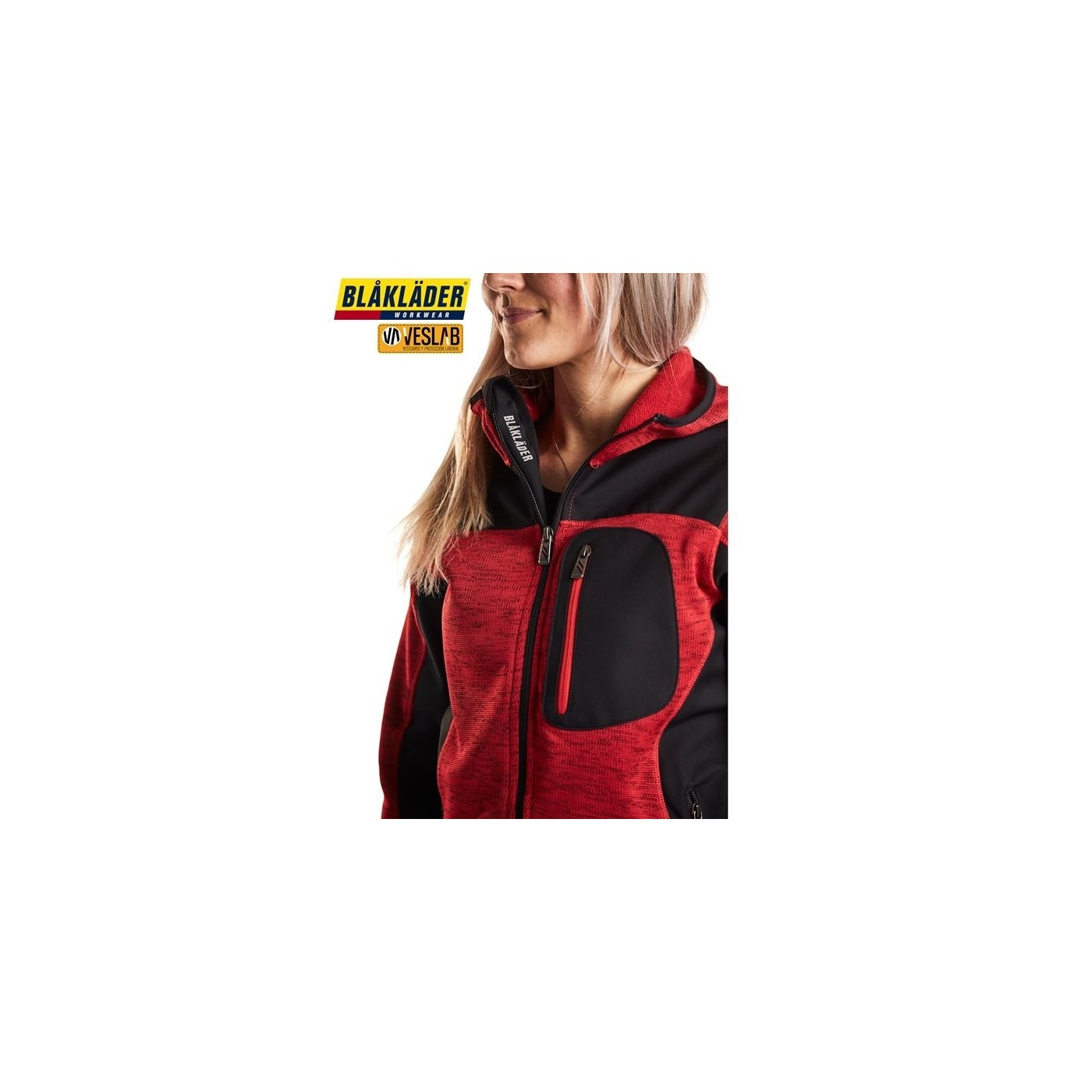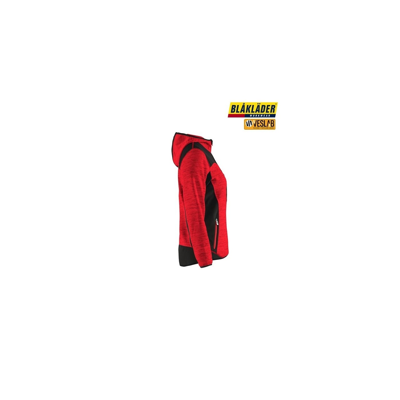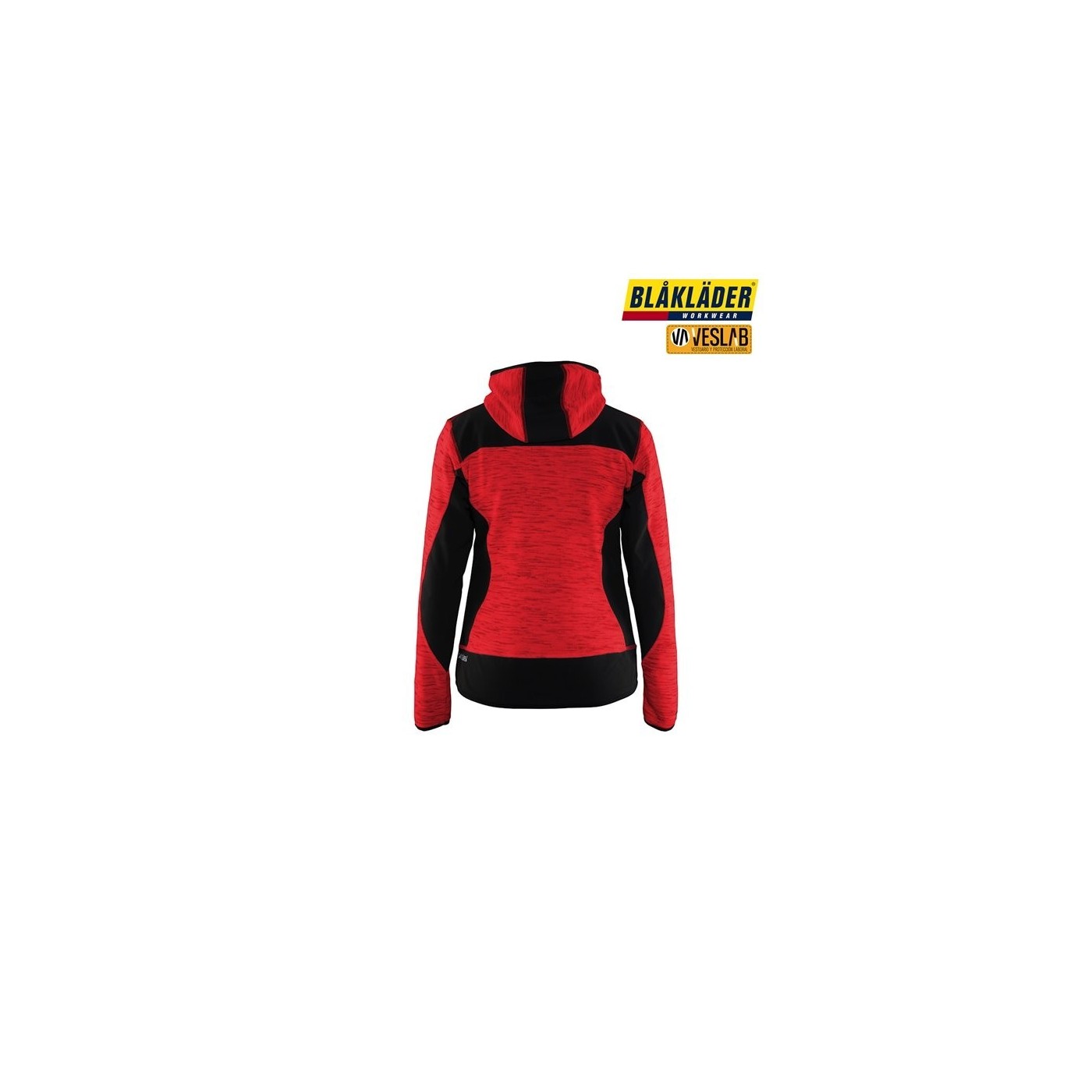 Chaqueta de punto entallada para mujer con capucha de diseño práctico para brindar mayor comodidad. La chaqueta tiene cremalleras contrastantes y está reforzada con un material tipo softshell en los codos, los hombros y la espalda para aumentar la resistencia a las roturas. Es una excelente chaqueta tanto para el trabajo como el tiempo libre.