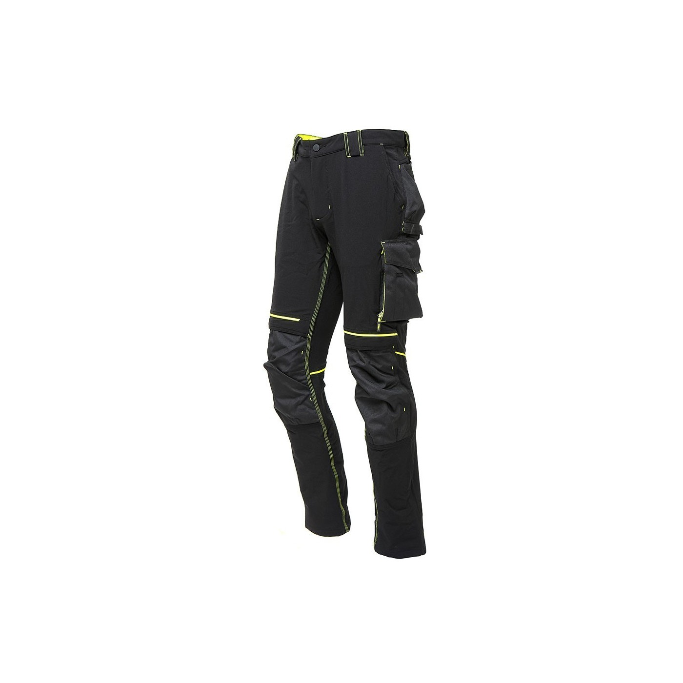 Los dos bolsillos cerrados con cremallera corresponden al bolsillo lateral y al bolsillo delantero derecho, manteniendo los objetos seguros y evitando su pérdida. El pantalón presenta costuras triples, lo que garantiza su durabilidad y resistencia a la tensión. Además, tiene un ajuste Slim Fit, brindando un aspecto moderno y estilizado. En resumen, el pantalón técnico U-power Atom es una prenda de alta calidad diseñada para ofrecer comodidad, resistencia y funcionalidad en entornos de trabajo exigentes.