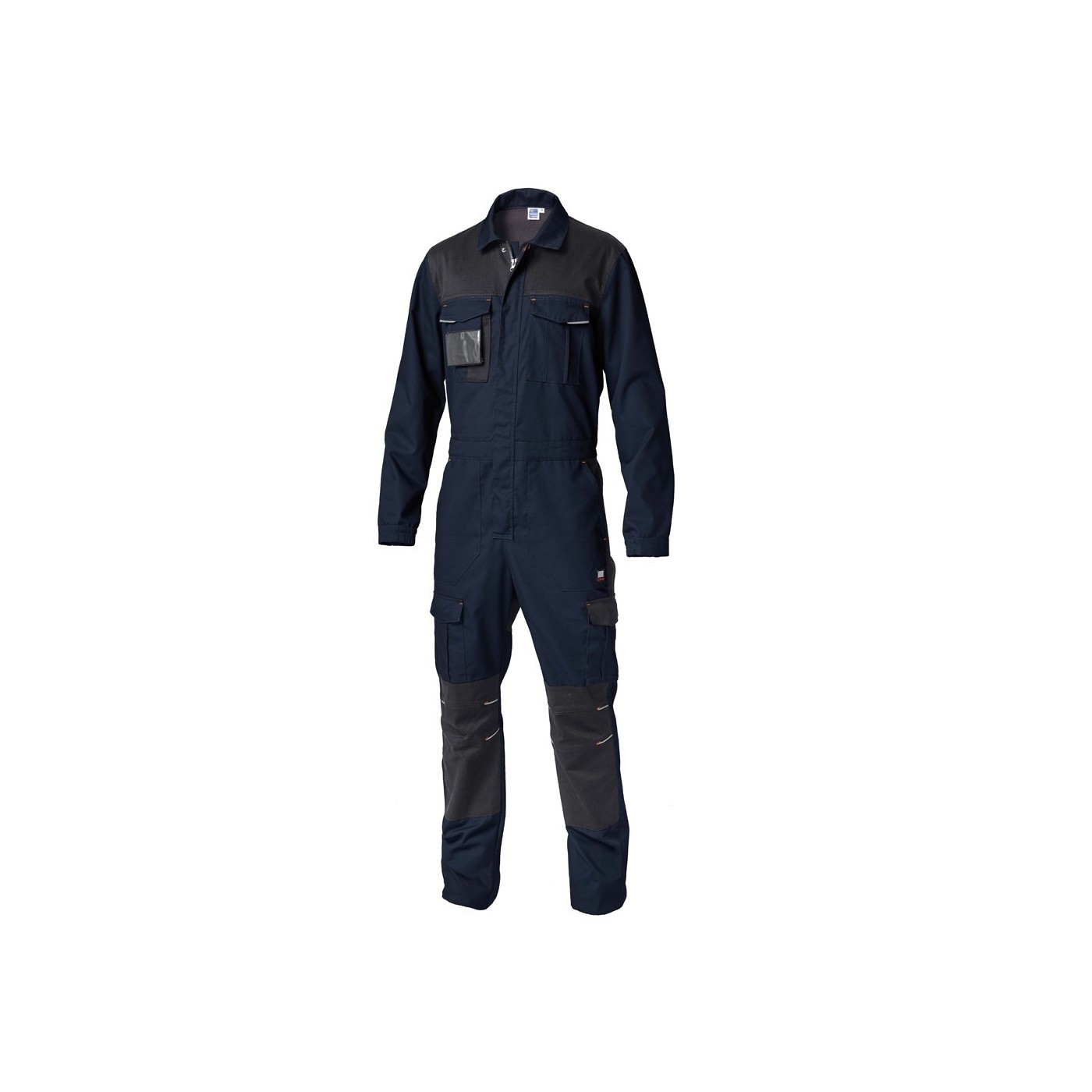 Con un doble tejido en la zona de las rodillas y presillas de colores contrastantes, este mono de trabajo combina resistencia y estilo. La composición del tejido es 98% algodón y 2% elastano, con un gramaje de 240 gr/m², asegurando durabilidad y comodidad.