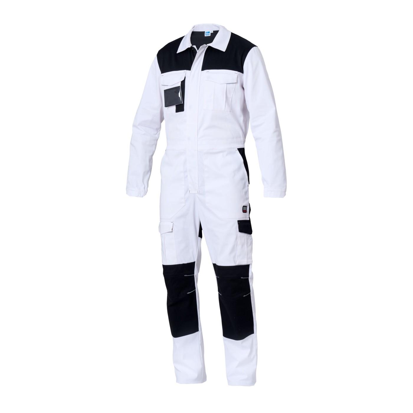 Con un doble tejido en la zona de las rodillas y presillas de colores contrastantes, este mono de trabajo combina resistencia y estilo. La composición del tejido es 98% algodón y 2% elastano, con un gramaje de 240 gr/m², asegurando durabilidad y comodidad.