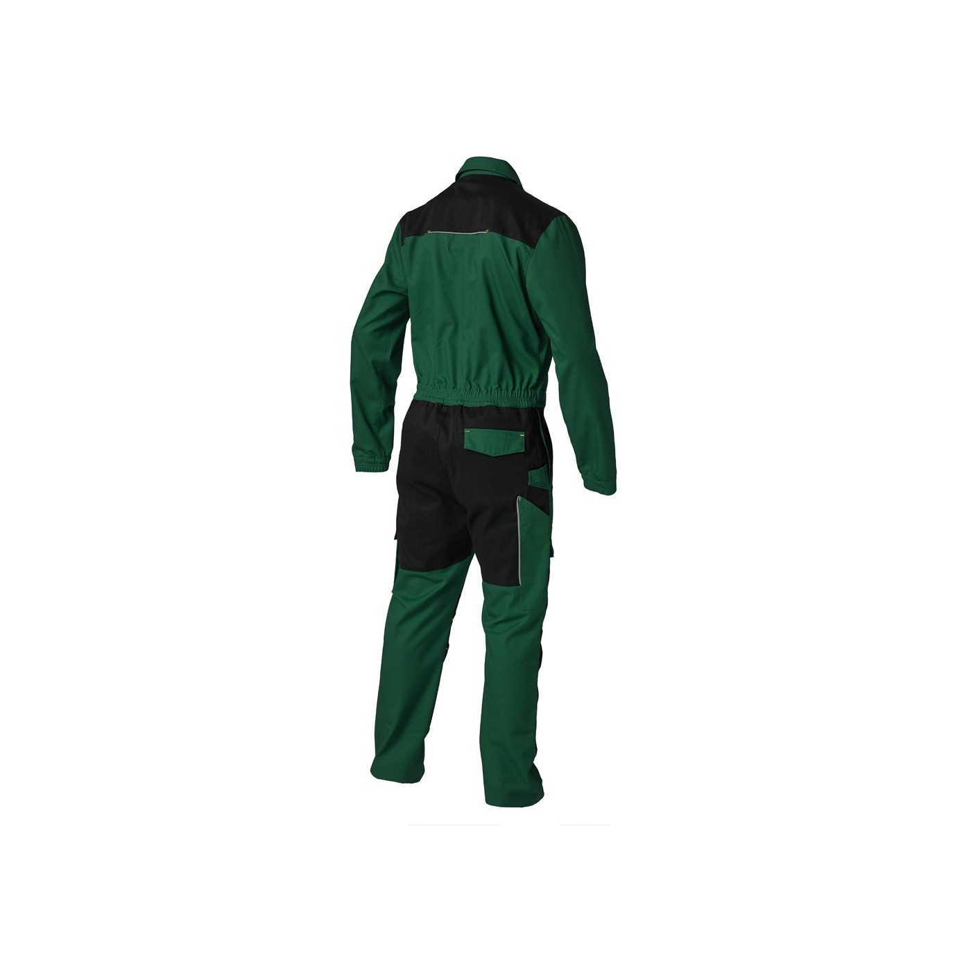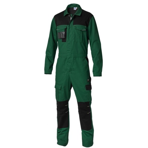 Con un doble tejido en la zona de las rodillas y presillas de colores contrastantes, este mono de trabajo combina resistencia y estilo. La composición del tejido es 98% algodón y 2% elastano, con un gramaje de 240 gr/m², asegurando durabilidad y comodidad.