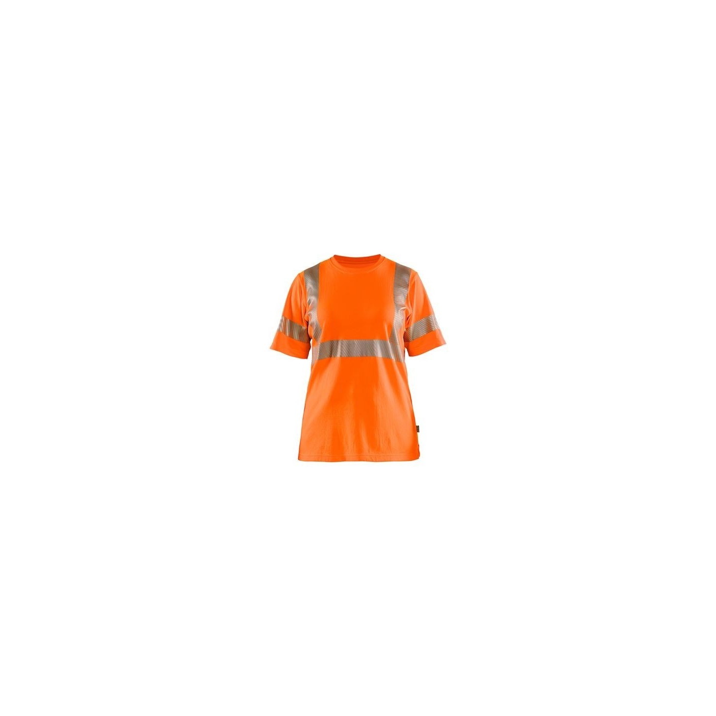 Esta camiseta de seguridad para mujer de Blaklader, referencia 3502, está diseñada para ofrecer una excelente visibilidad en entornos con poca luz o baja luminosidad. Cuenta con cintas reflectantes estampadas en el cuerpo, las mangas y los hombros, de 50 mm de ancho, que ayudan a incrementar la percepción del usuario por parte de los demás.