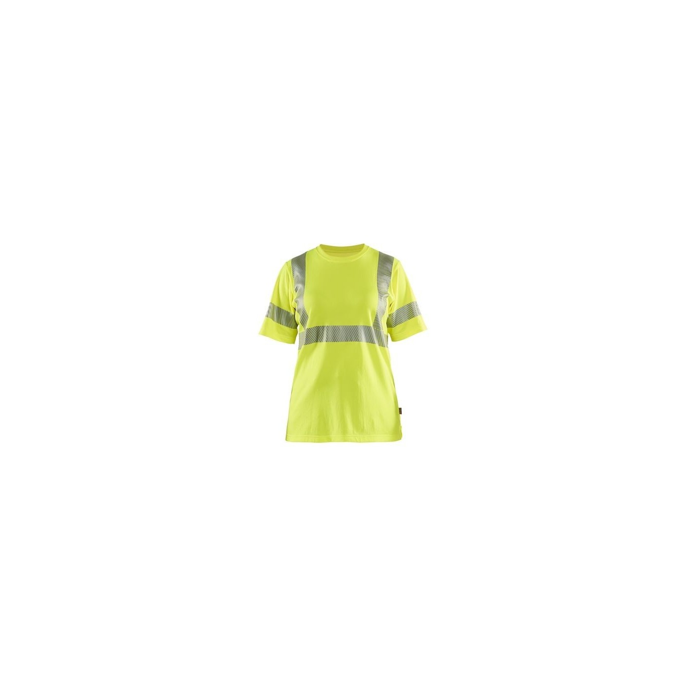 Esta camiseta de seguridad para mujer de Blaklader, referencia 3502, está diseñada para ofrecer una excelente visibilidad en entornos con poca luz o baja luminosidad. Cuenta con cintas reflectantes estampadas en el cuerpo, las mangas y los hombros, de 50 mm de ancho, que ayudan a incrementar la percepción del usuario por parte de los demás.