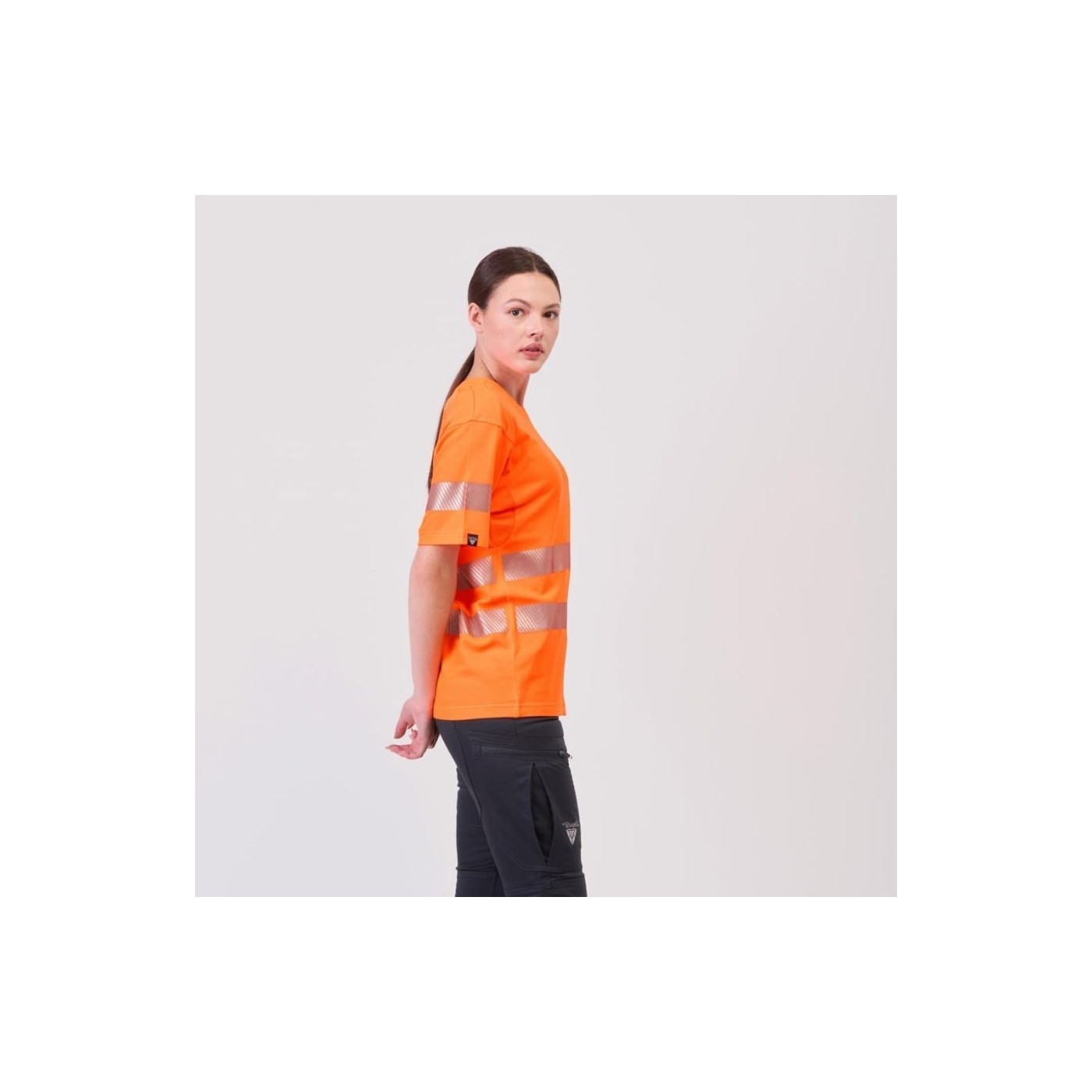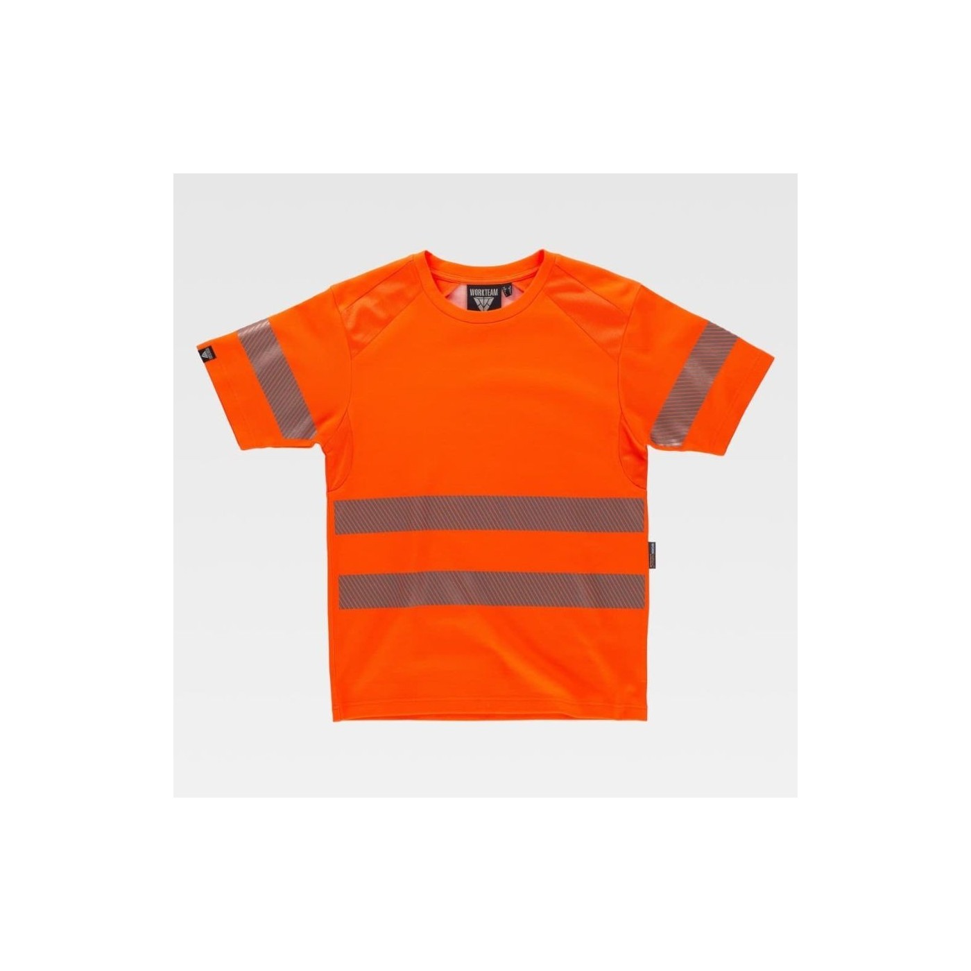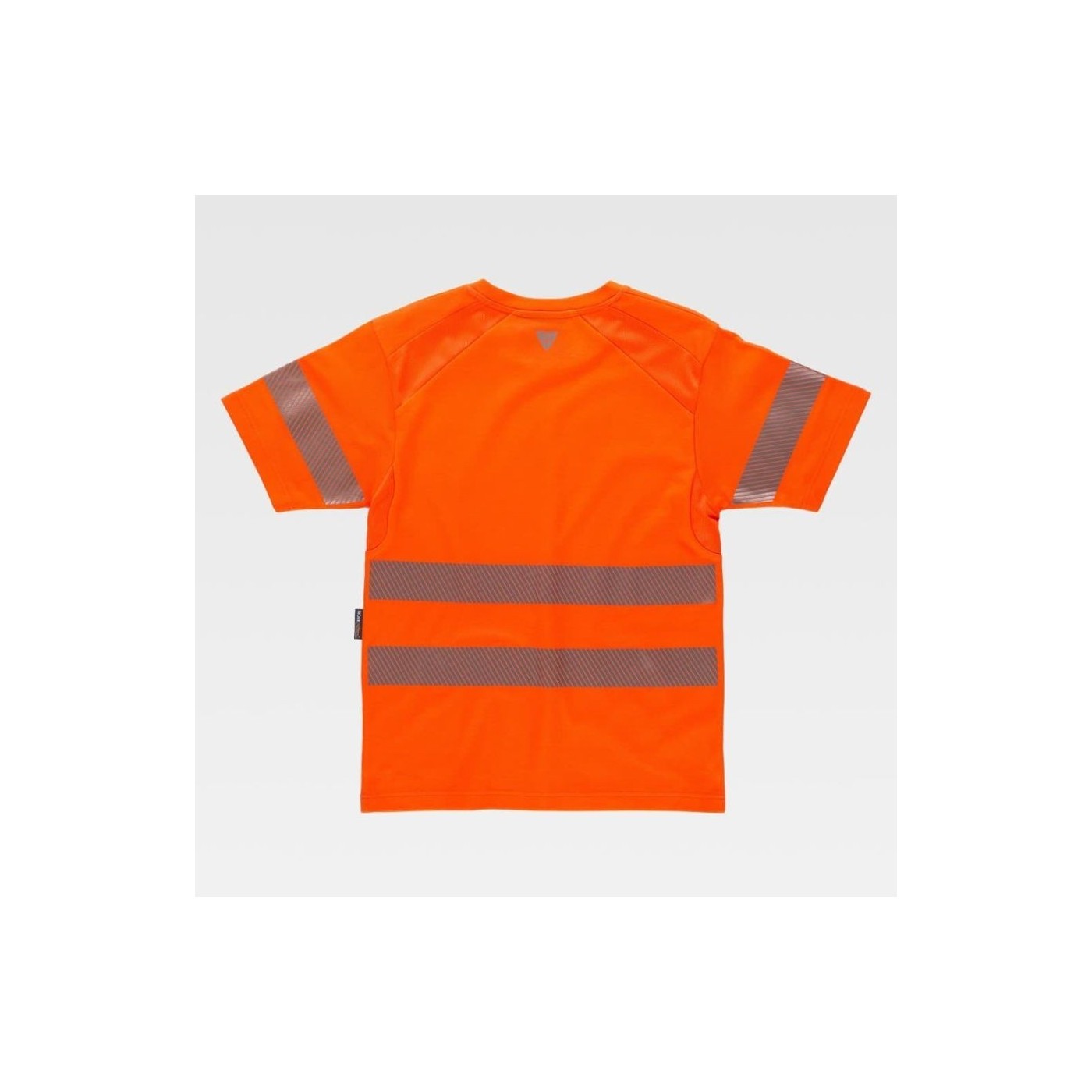 Camiseta de manga corta en micropiqué con interior de algodón, ligera y transpirable. Incorpora bandas reflectantes segmentadas y tejido de rejilla en axilas para mayor ventilación. Cumple normativa EN ISO 20471 nivel 2.