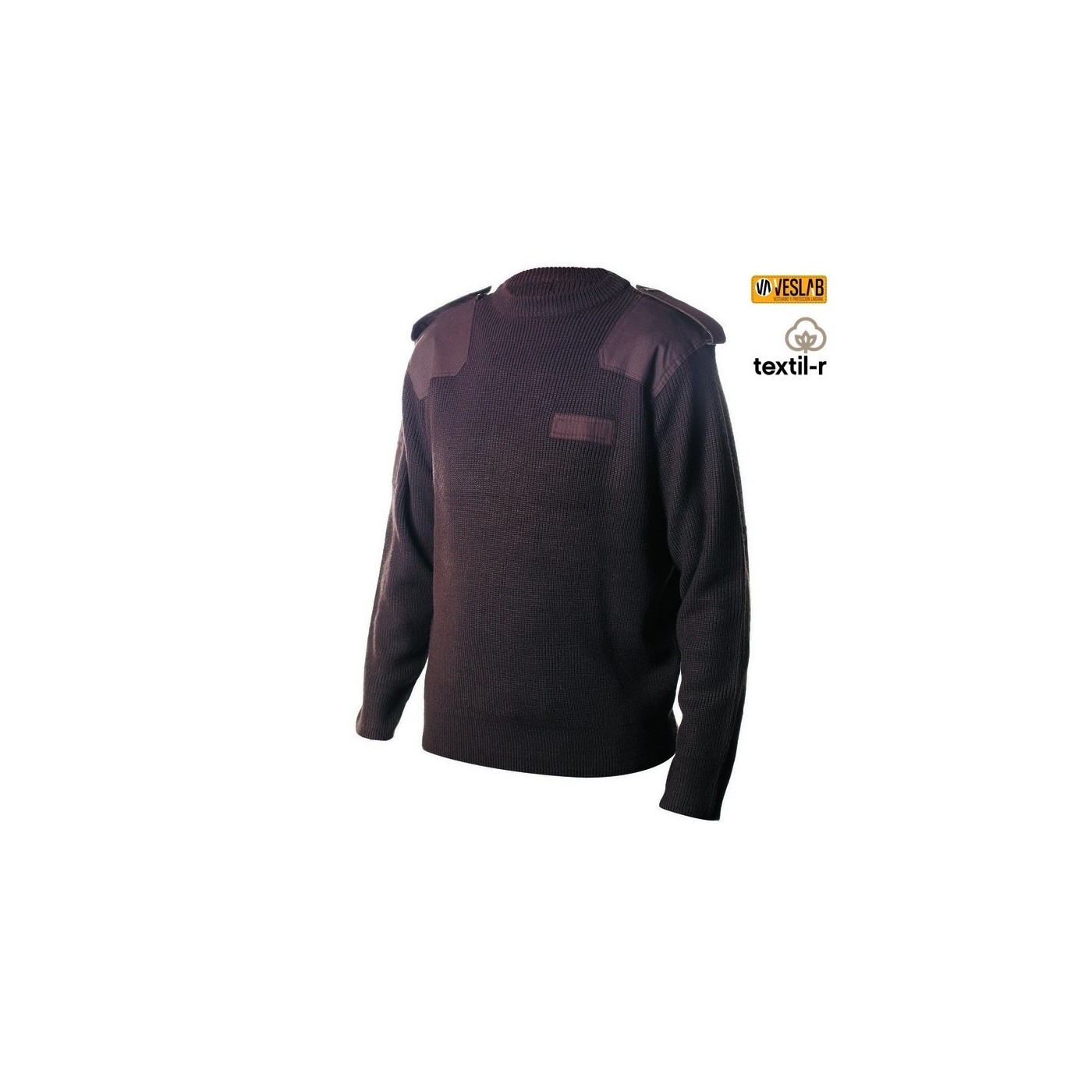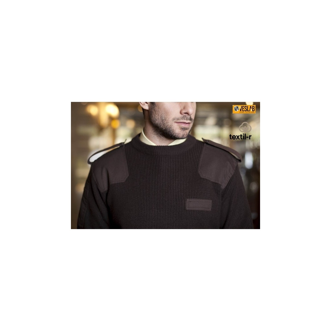Jersey unisex, cuello caja, charretera desmontable, porta chapas, porta bolígrafos, refuerzos en codos y hombros. Composición: 100% acrilico, punto doble.
