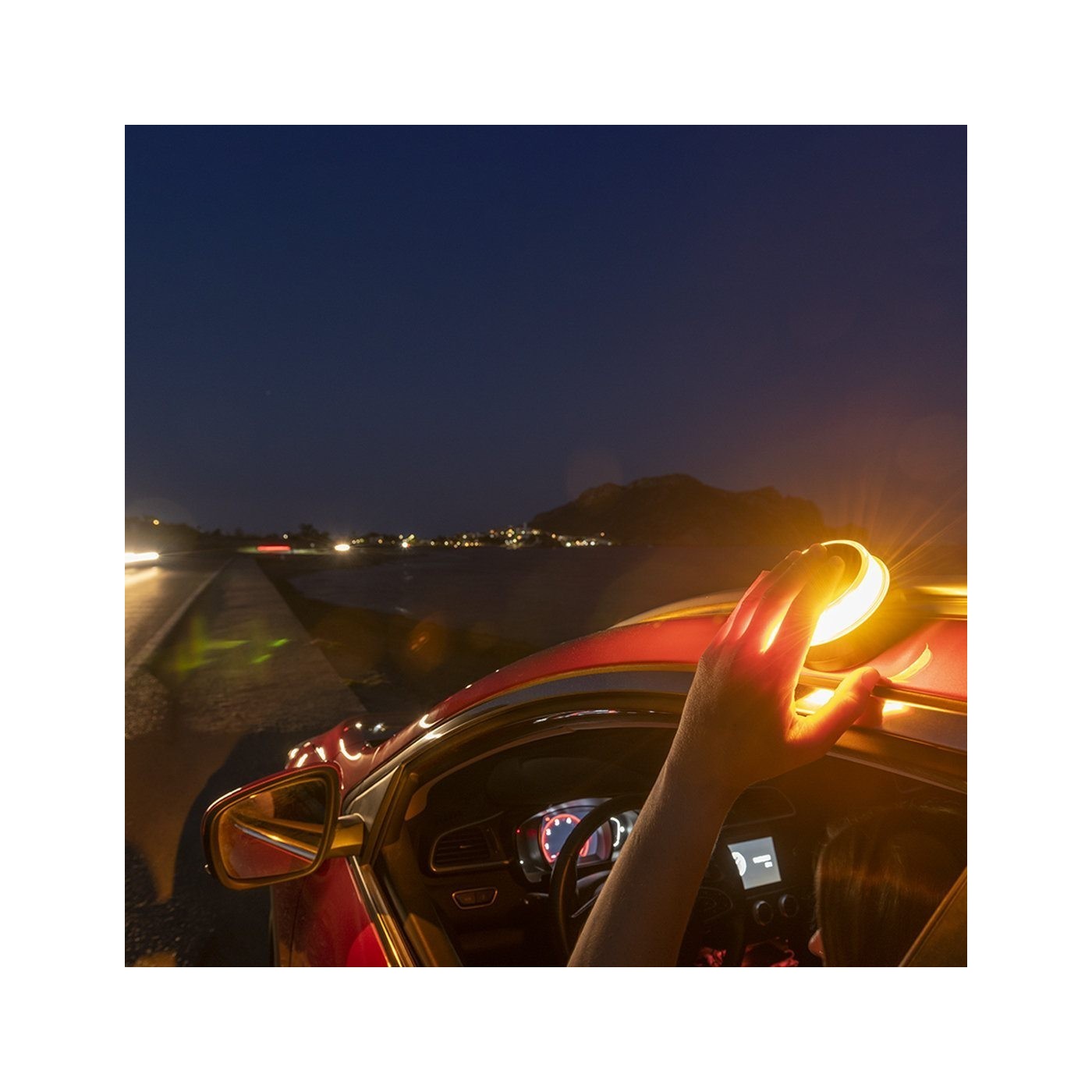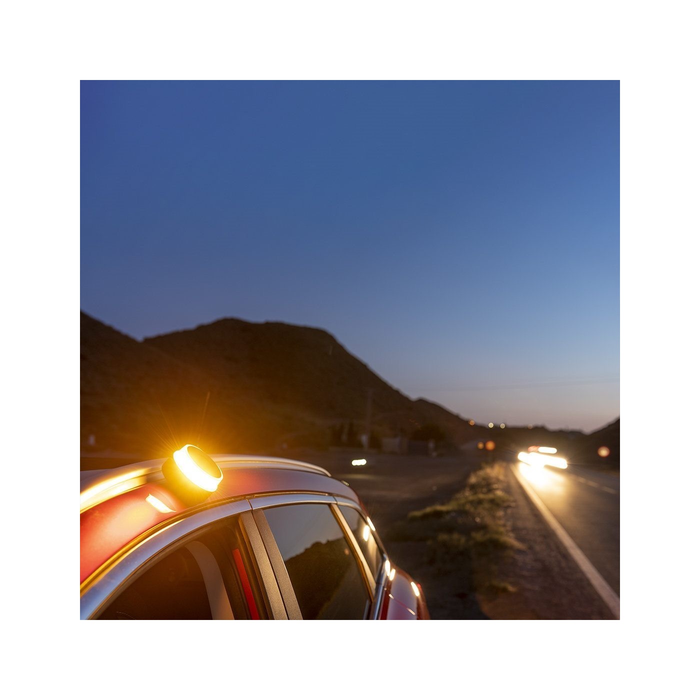 Resistencia al viento de hasta 180Pa, visibilidad 360° -hasta 1 km de distancia- y resistencia al agua conforme a estándares IP65. De tamaño compacto para guardar en cualquier compartimento del vehículo y tenerla a mano en caso de emergencia. Presentada en caja individual de diseño.
