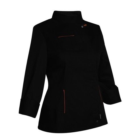Americana cocina entallada, Slim Fit, manga larga, cierre con corchetes, ribetes a contraste.