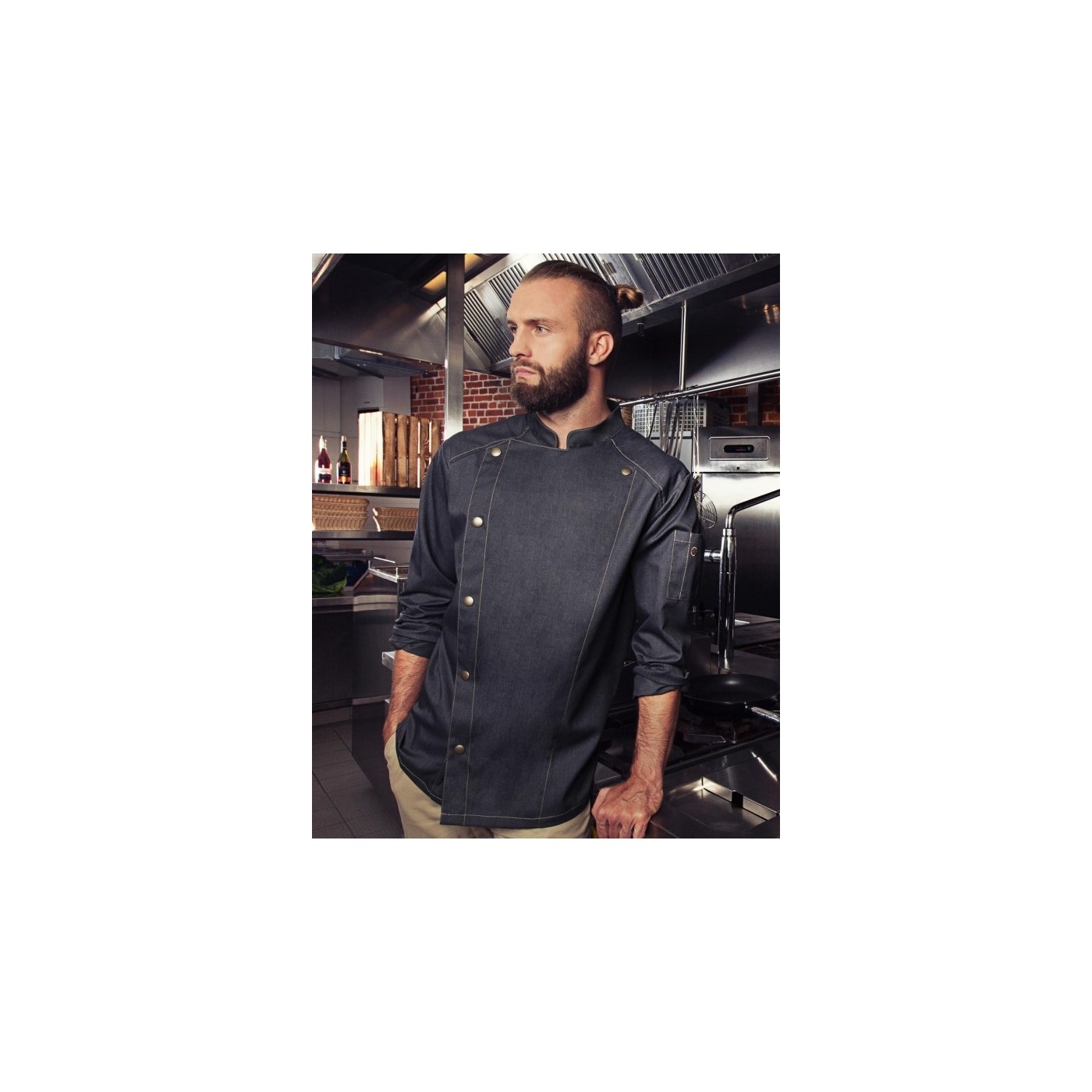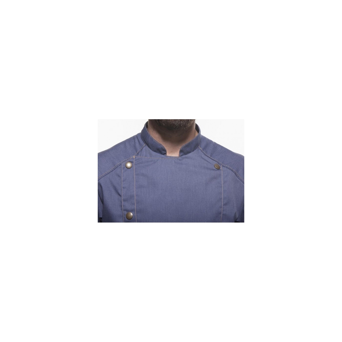 Chaqueta de cocinero de tejido tejano con cierre de botones a presión