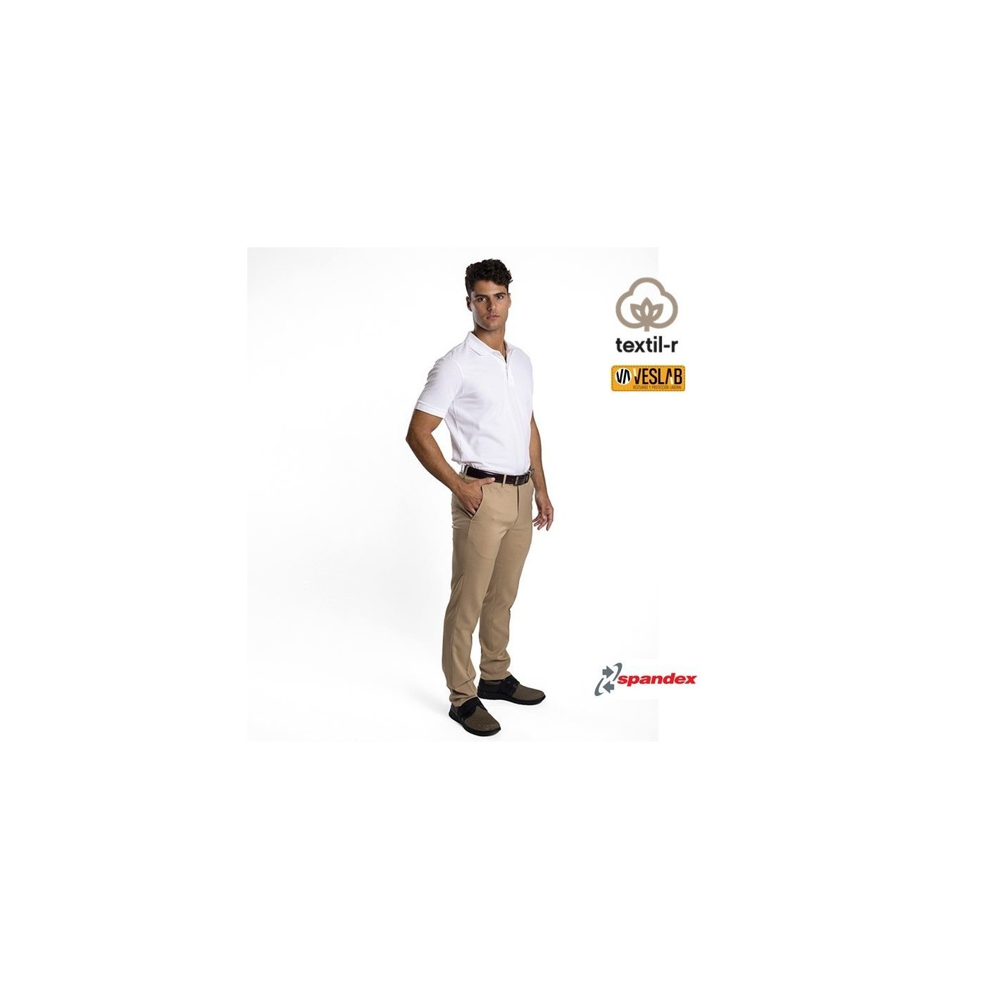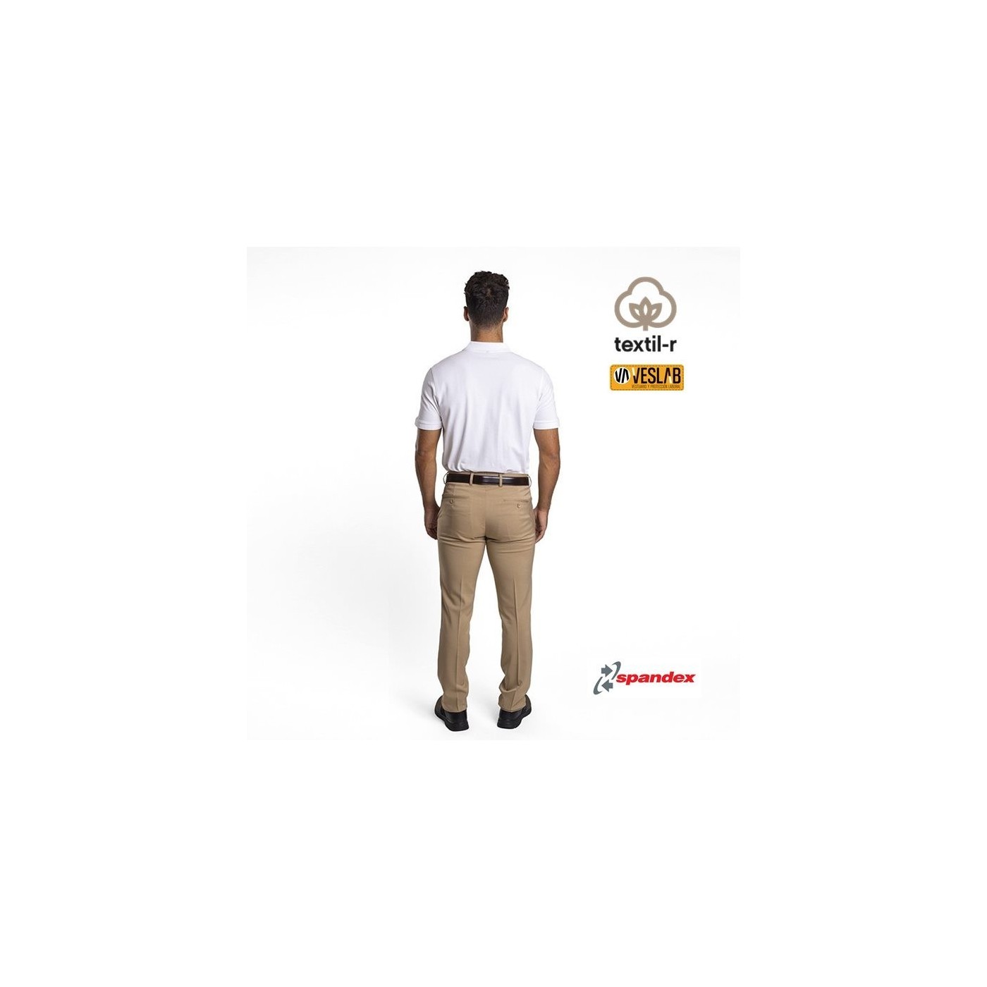 Se trata de un pantalón de caballero de corte recto sin pinzas-tipo chino- de tejido elástico y flexible.