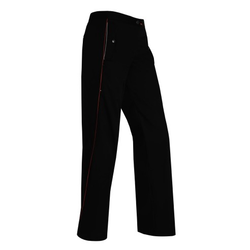 Pantalón señora Straight Leg, media cintura elástica, con cremallera y botón, bolsos, ribetes a contraste.
