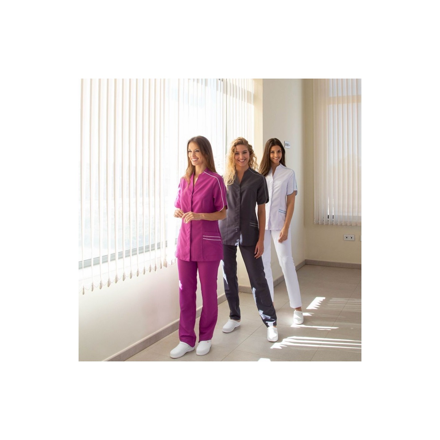 Blusa sanitaria para mujer Mujer Arancha diseñada especialmente para ti, profesional de la salud que busca combinar elegancia y funcionalidad en su vestimenta diaria.