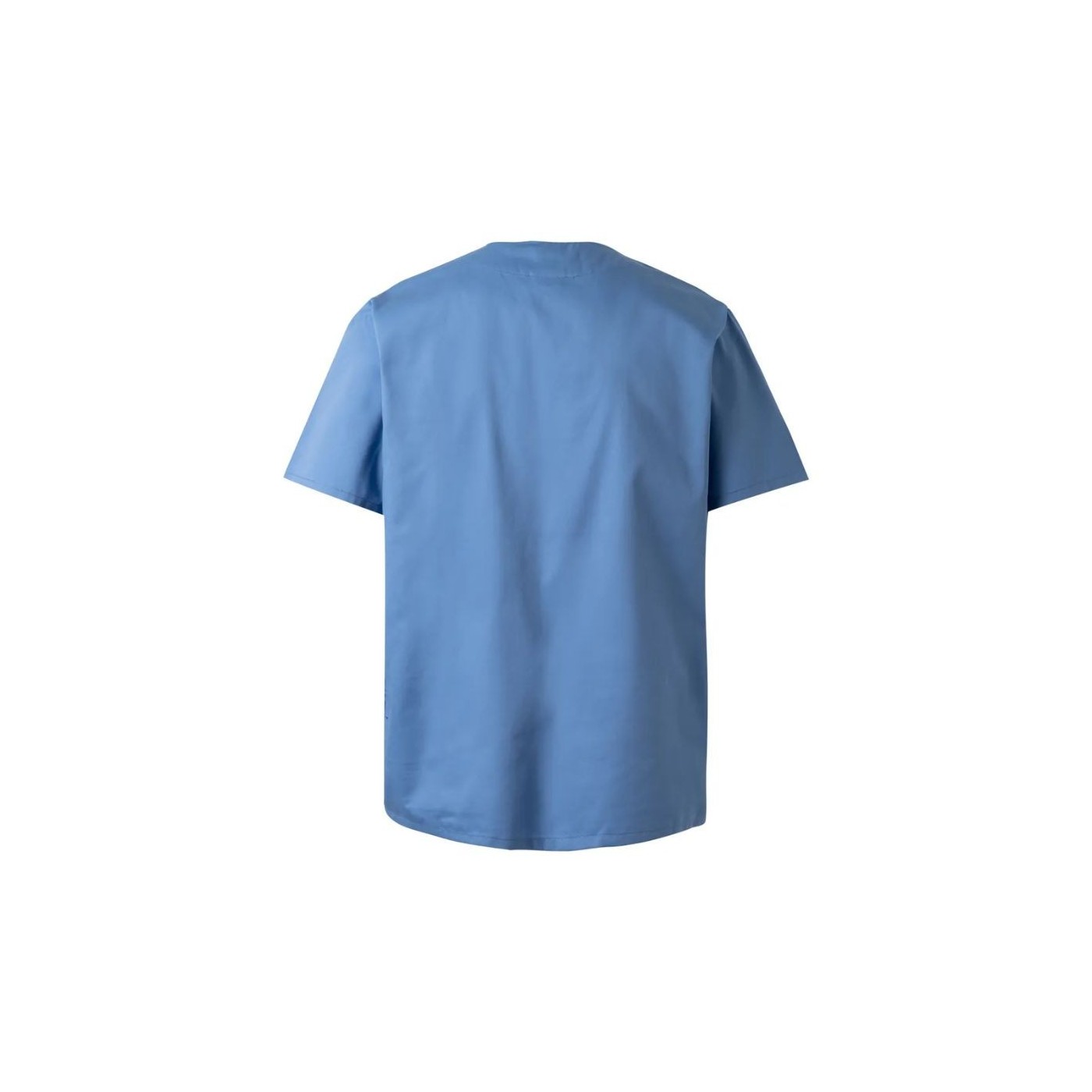 La camisola sanitaria Velilla 589, con escote en pico y tres bolsillos de parche, ofrece comodidad y resistencia gracias a su tejido de sarga (65% poliéster, 35% algodón). Ideal para personal sanitario, disponible en varios colores.