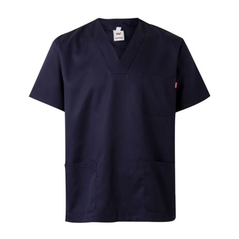 La camisola sanitaria Velilla 589, con escote en pico y tres bolsillos de parche, ofrece comodidad y resistencia gracias a su tejido de sarga (65% poliéster, 35% algodón). Ideal para personal sanitario, disponible en varios colores.
