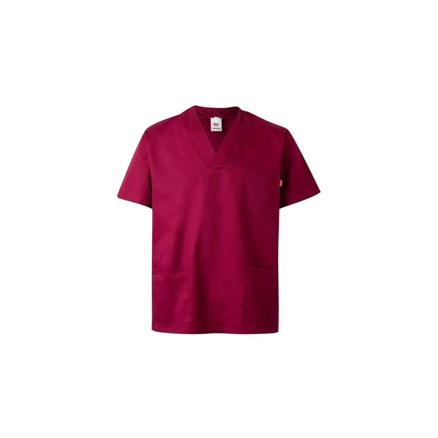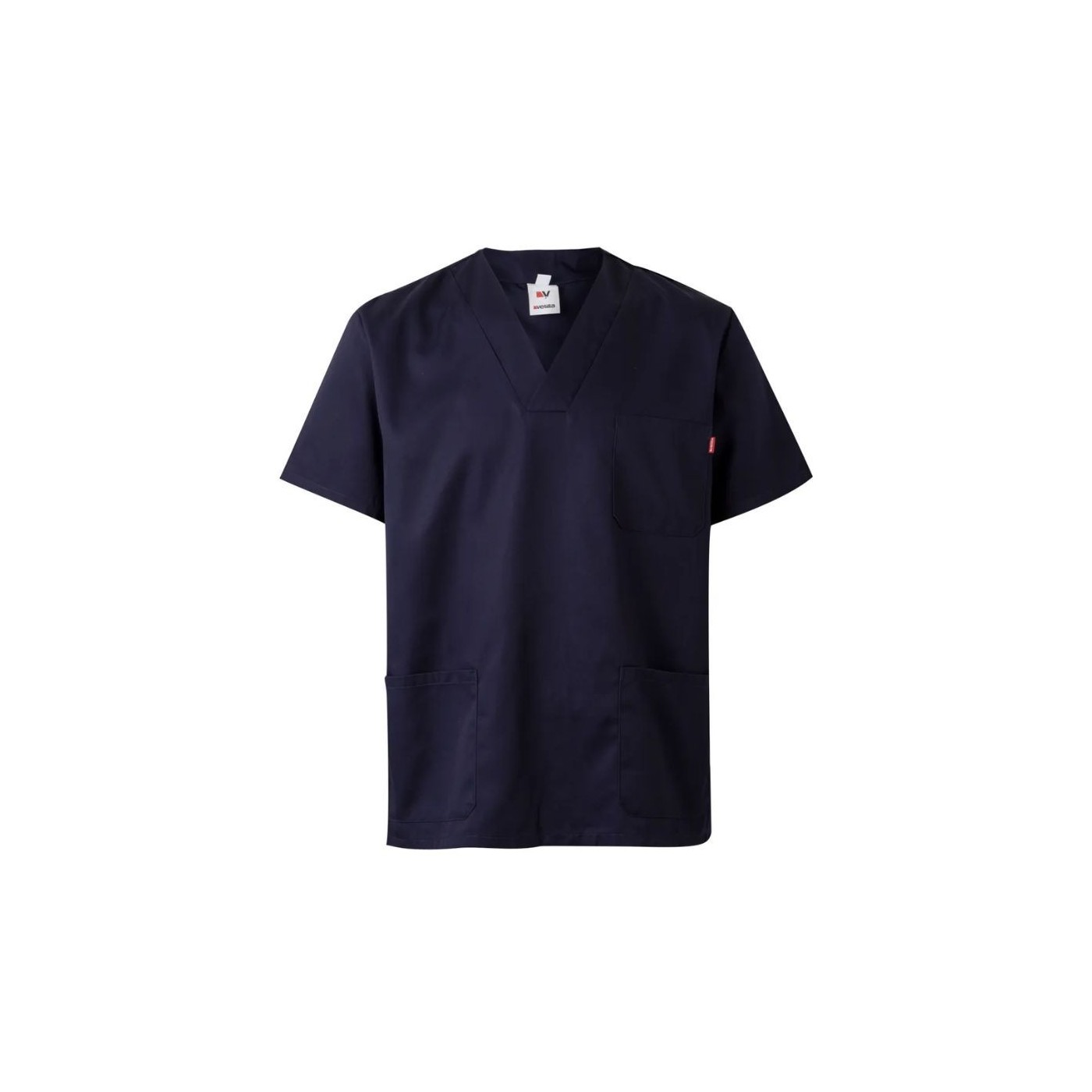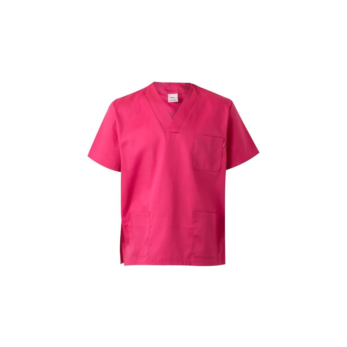 La camisola sanitaria Velilla 589, con escote en pico y tres bolsillos de parche, ofrece comodidad y resistencia gracias a su tejido de sarga (65% poliéster, 35% algodón). Ideal para personal sanitario, disponible en varios colores.