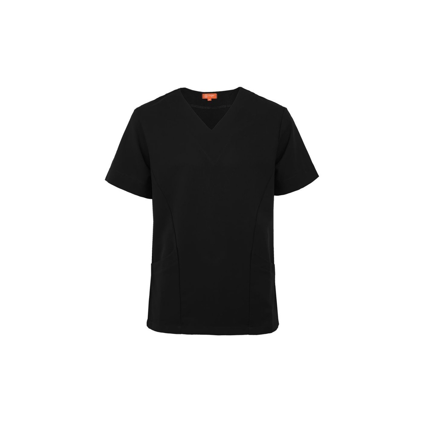 Casaca para sanitario de microfibra con escote en pico, tres bolsillos y aperturas laterales.