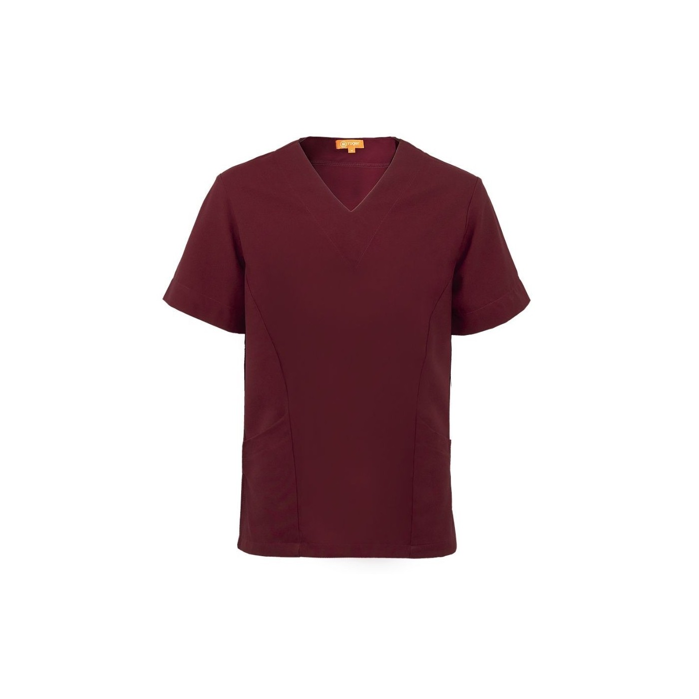 Casaca para sanitario de microfibra con escote en pico, tres bolsillos y aperturas laterales.