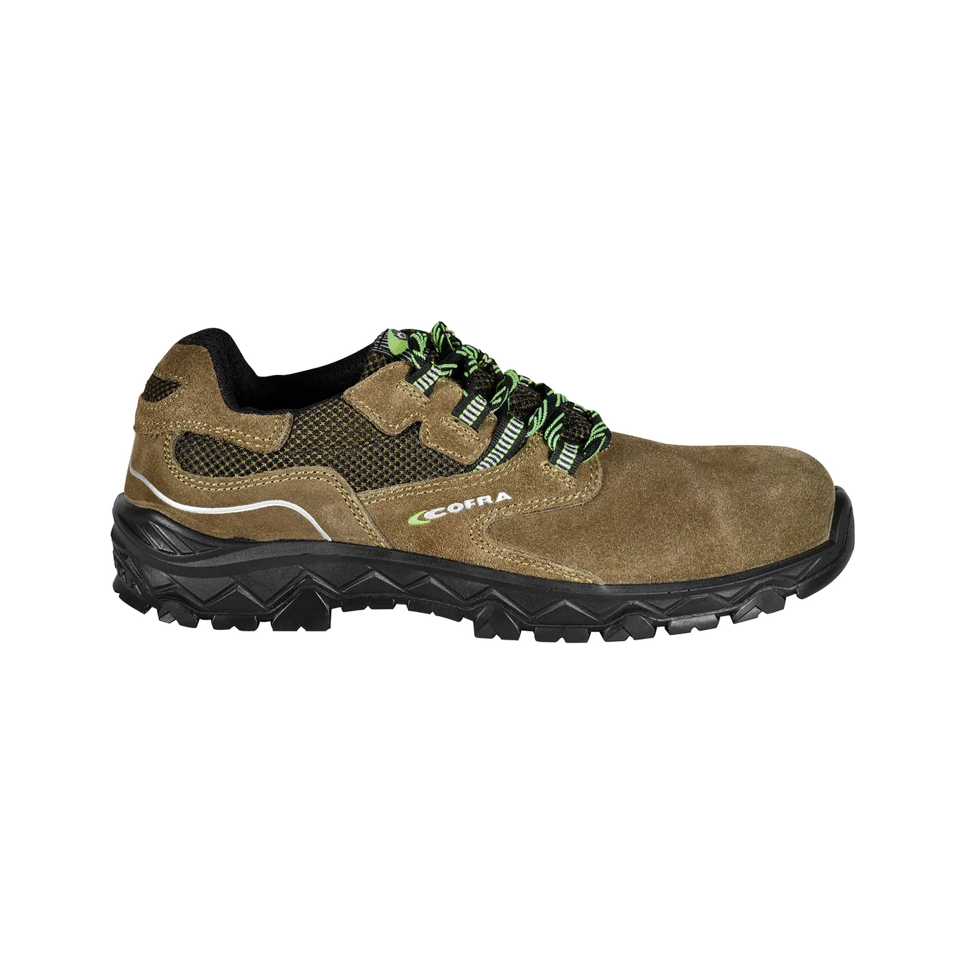 El calzado de seguridad Cofra Stretching ofrece un tejido de piel serraje y tejido muy transpirable, además de una suela antideslizante de doble densidad.