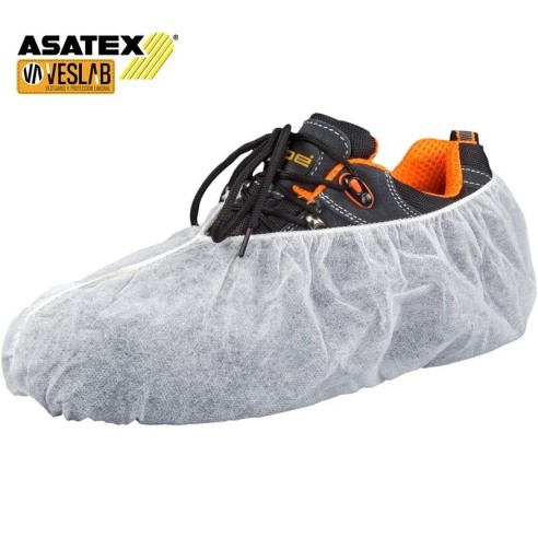 Surchaussure jetable en polypropylène avec élastique à la cheville.