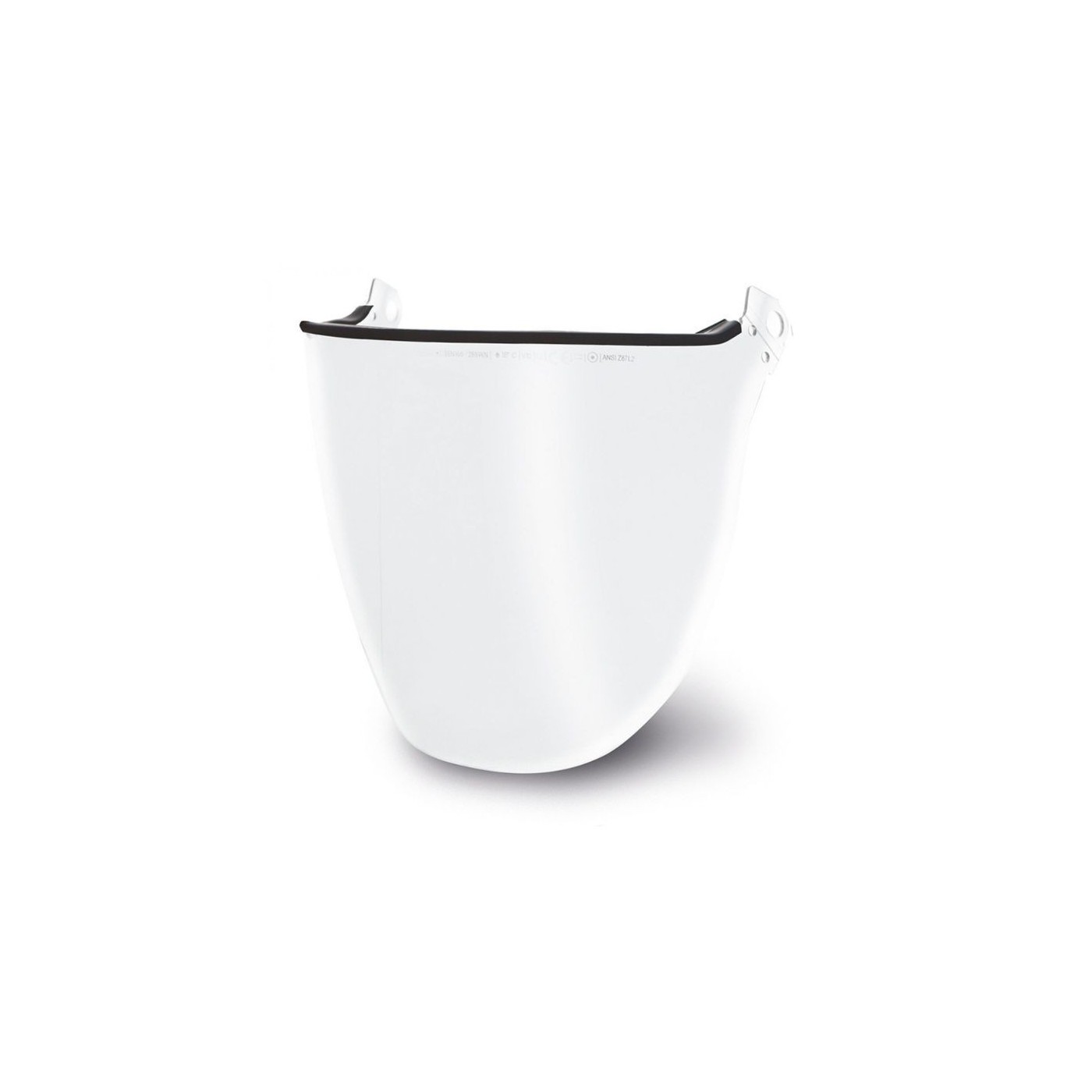 Protection faciale complète en polycarbonate résistant aux rayures et anti-buée. Ensemble de vis pour visière inclus. Peut être porté avec des lunettes correctrices.