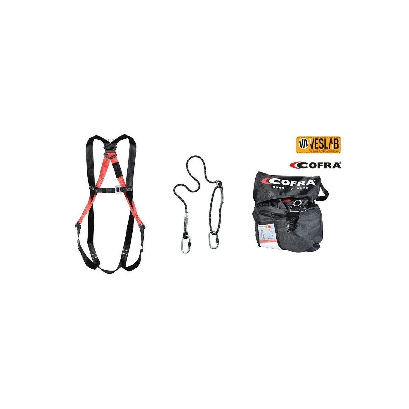 DESCRIPTION : Kit conçu pour être utilisé pour travailler avec des plates-formes verticales et diverses applications dans le secteur de la construction. Le kit est composé d'un harnais et d'une longe de positionnement et de retenue réglable équipée de connecteurs.