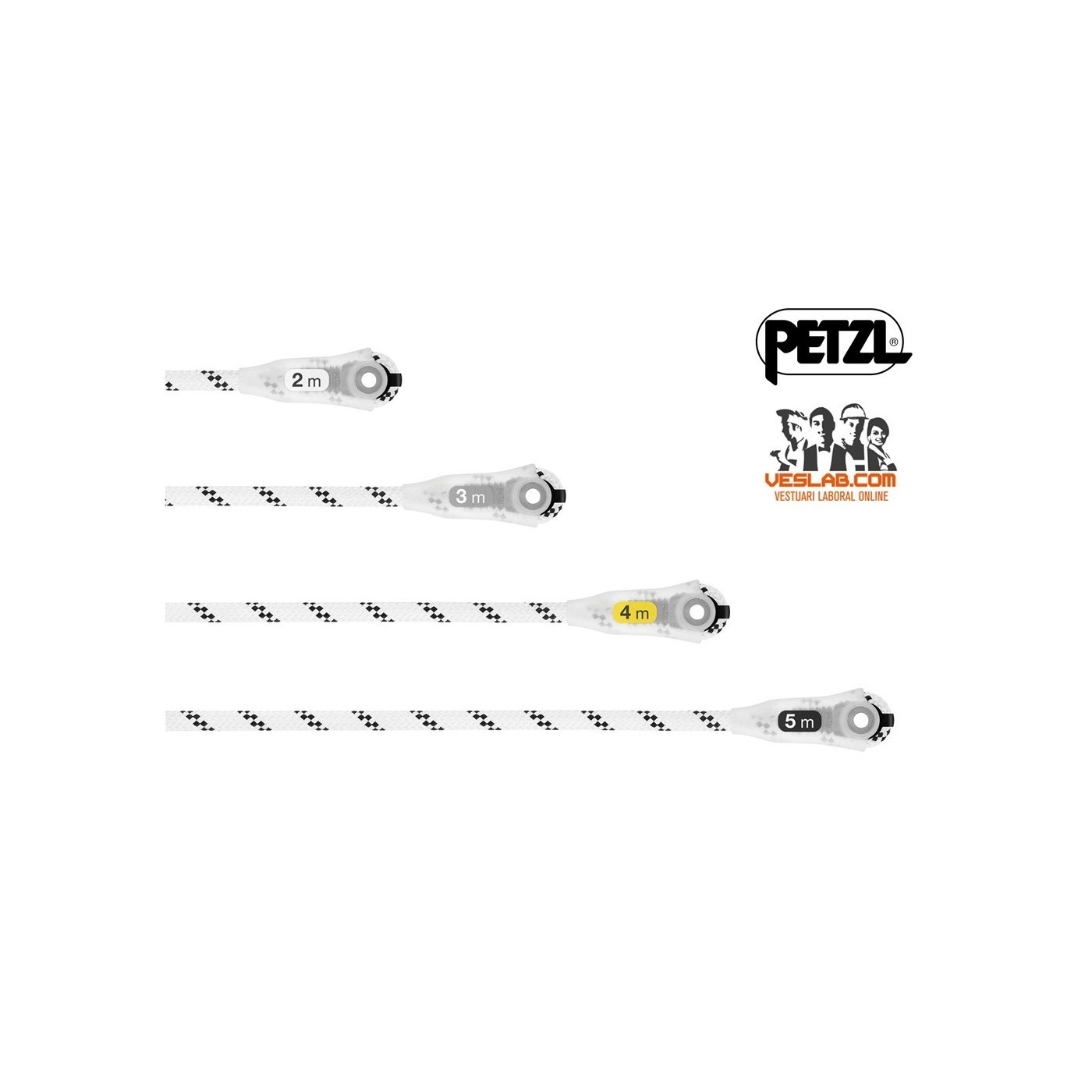 - Disponible en sept longueurs : 2, 3, 4, 5, 10, 15 et 20 m. L’identification de la longueur de la longe est immédiate, grâce à l’étiquette de couleur située sur l’extrémité recevant le connecteur.