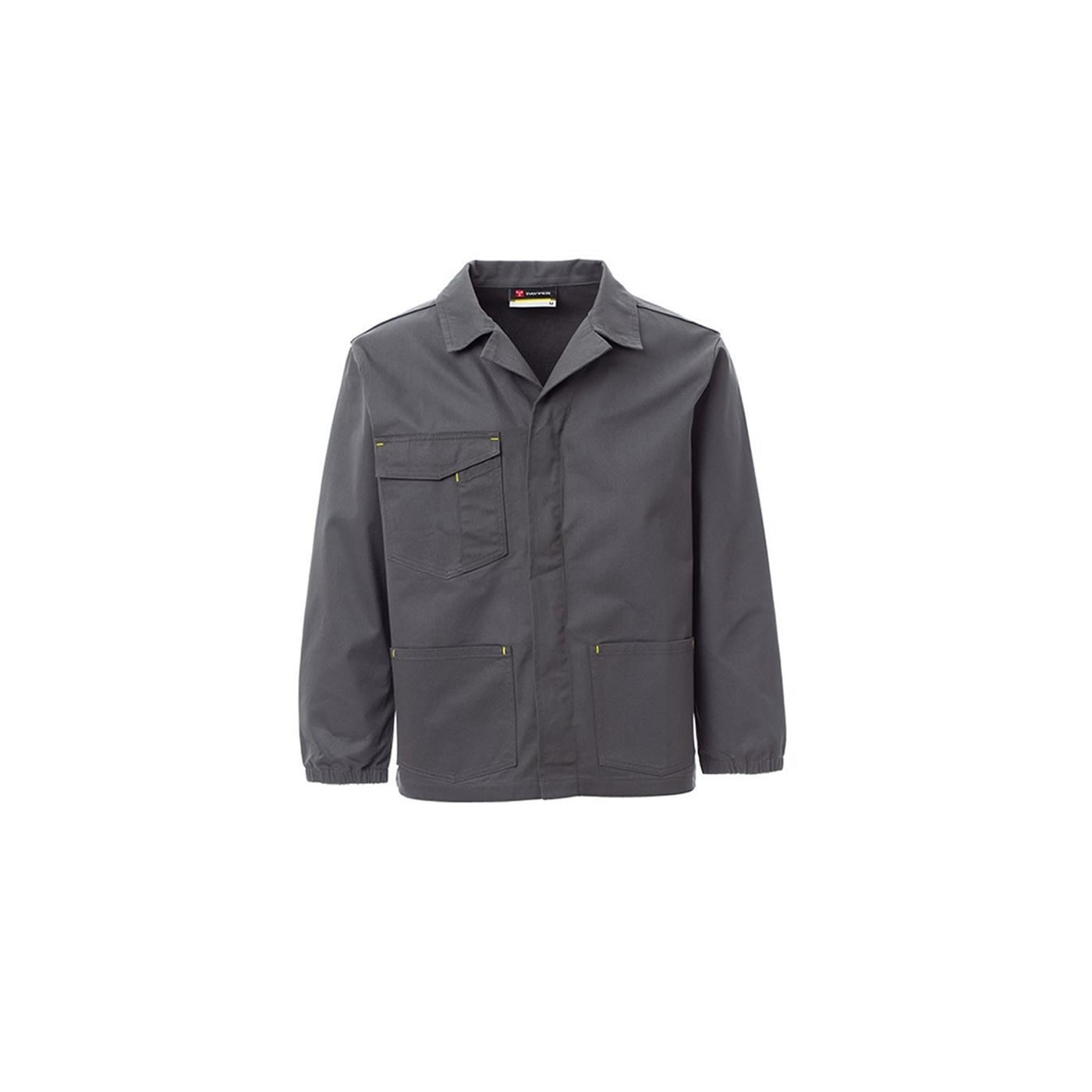 Veste industrielle bon marché avec un col ouvert, des poignets élastiqués, une fermeture à bouton recouverte, deux poches plaquées et une poche poitrine avec support pour smartphone, porte-carte d'identité, porte-stylo et rabat à fermeture velcro.