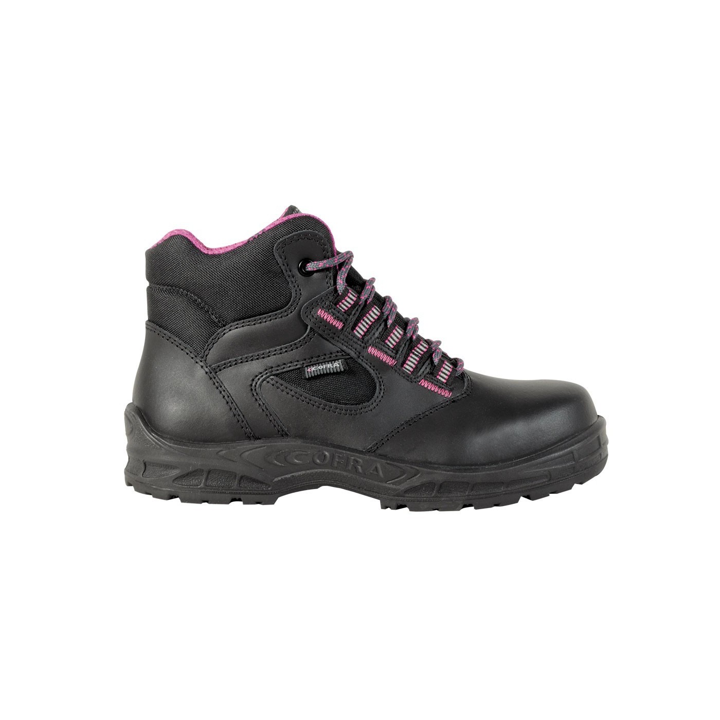 La chaussure de sécurité de travail pour femme Cofra Delia SRC est une élégante chaussure à lacets, en cuir et tissu grain qui offre le plus haut niveau de protection et de confort. Cette botte convient à tous les environnements de travail. Le Cofra Delia S3 SRC a un revêtement antibactérien interne. Absorbe et libère l'humidité, laissant vos pieds au sec et confortables.