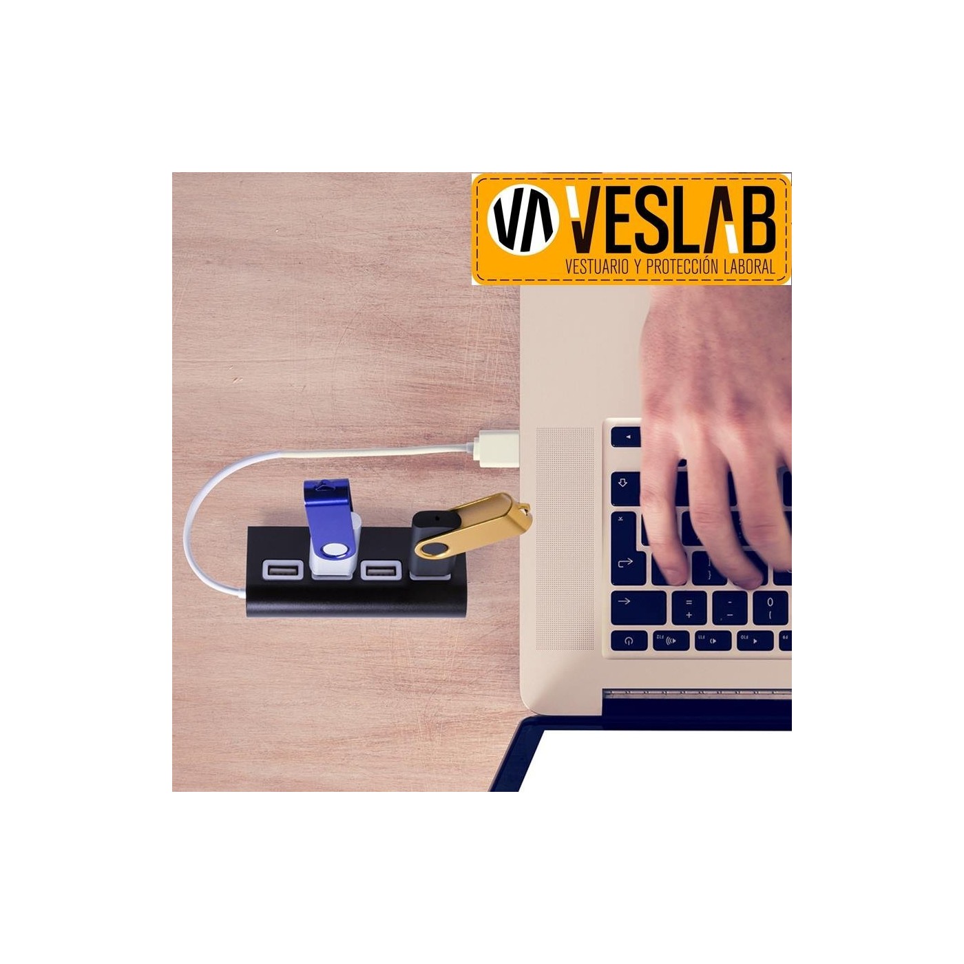 Port USB design bicolore et finition élégante en aluminium. Il intègre 4 ports USB 2.0 pour connecter une multitude d'appareils et est spécialement conçu pour le marquage laser. Présenté dans un coffret individuel.