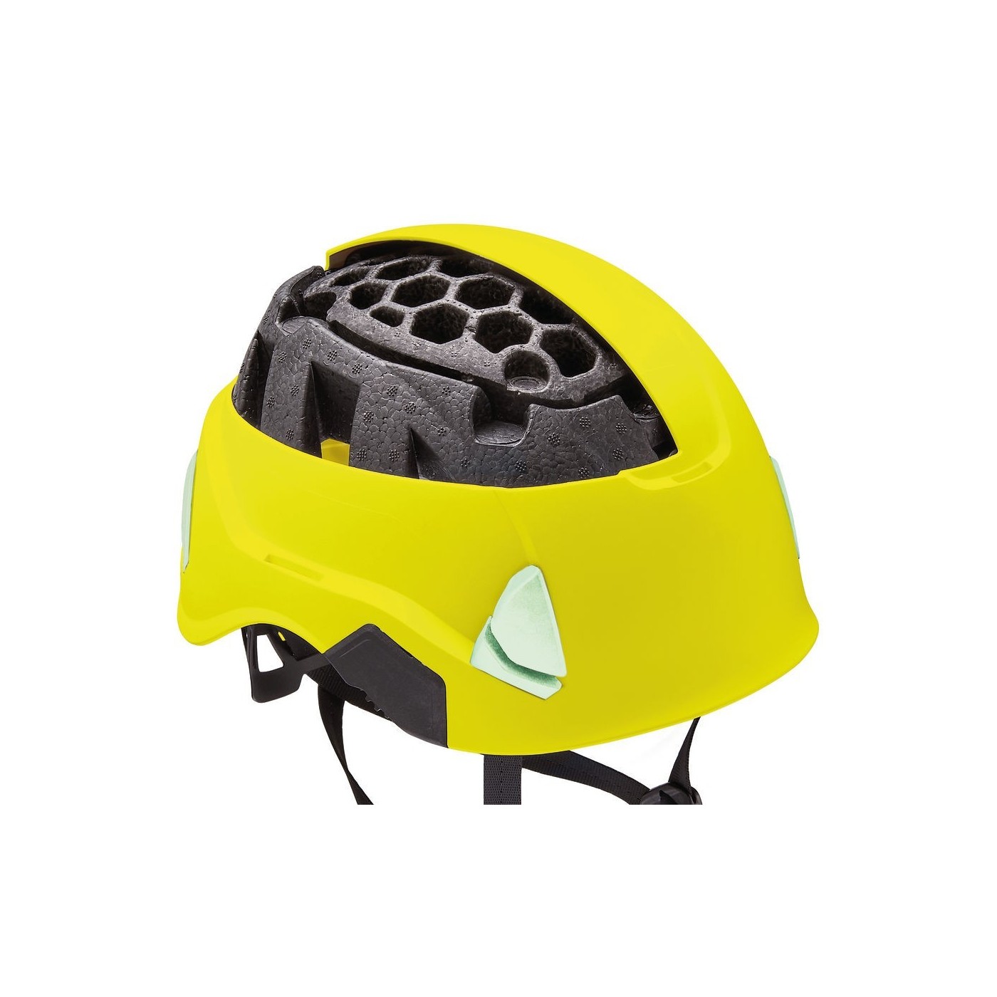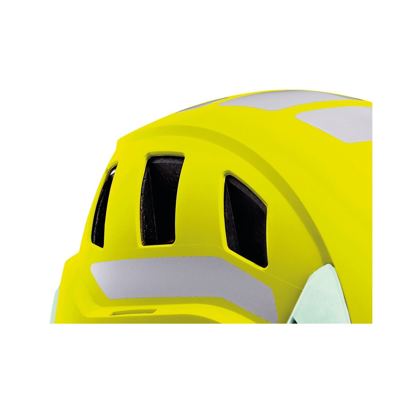 Dotée d'une jugulaire à résistance réglable, elle convient aussi bien pour les travaux en hauteur que pour les travaux au sol. Il a des trous de ventilation pour aérer le casque. L'intégration optimale d'une lampe frontale Petzl, d'un écran de protection, de cache-oreilles et de multiples accessoires en font un casque totalement modulable, répondant aux besoins supplémentaires des professionnels. La version haute visibilité est dotée d'un boîtier extérieur de couleur fluorescente avec des clips phosphorescents et des bandes réfléchissantes, pour une visibilité optimale des travailleurs, de jour comme de nuit.