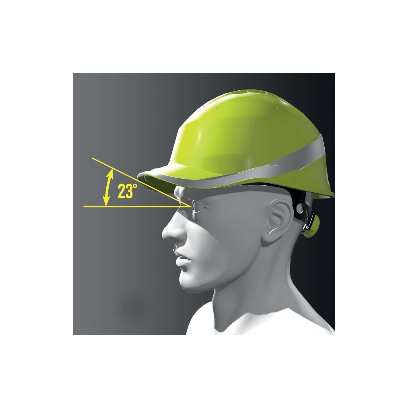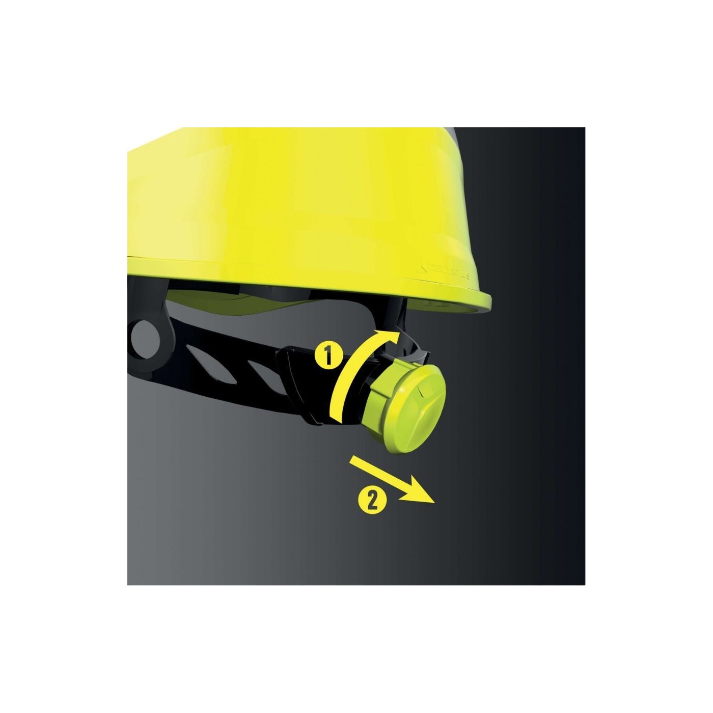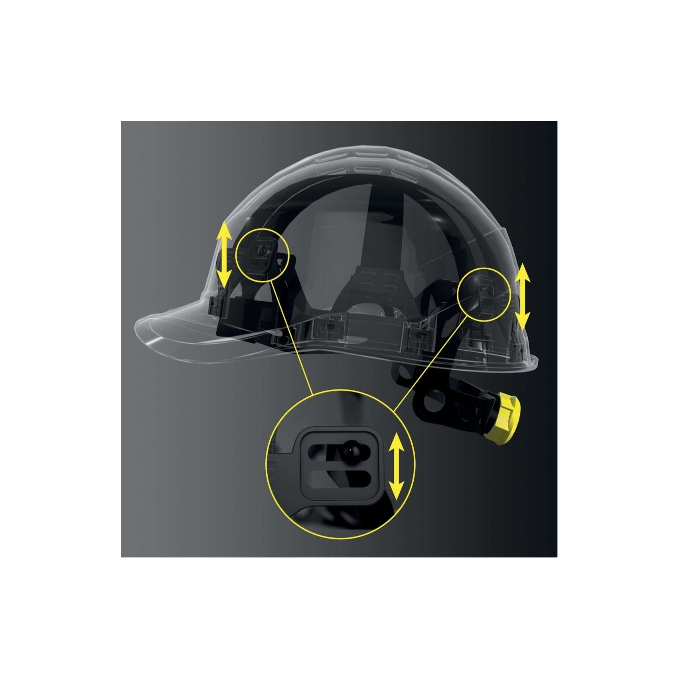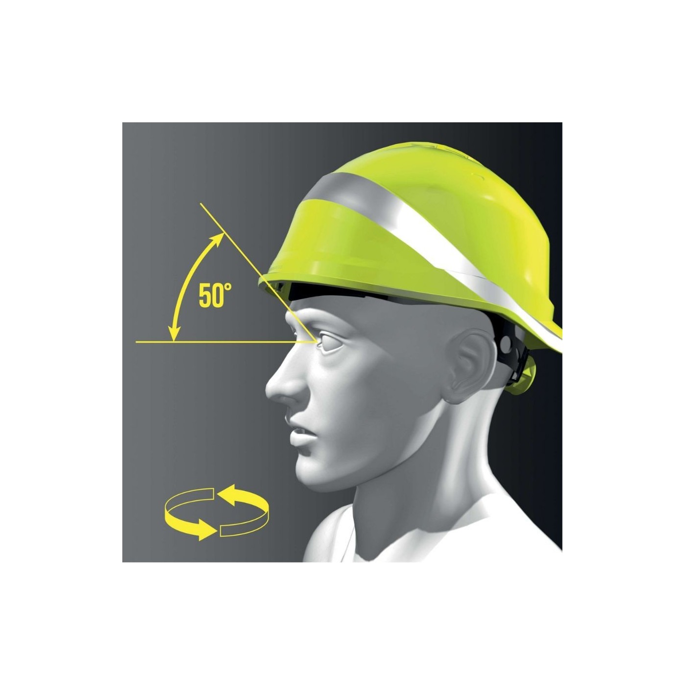 Le casque de chantier DIAMOND VI WIND allie coque en ABS ventilé, réglage sûr par molette Rotor, légèreté (374 g), compatibilité avec de nombreux accessoires et résistance de -30°C à +50°C.