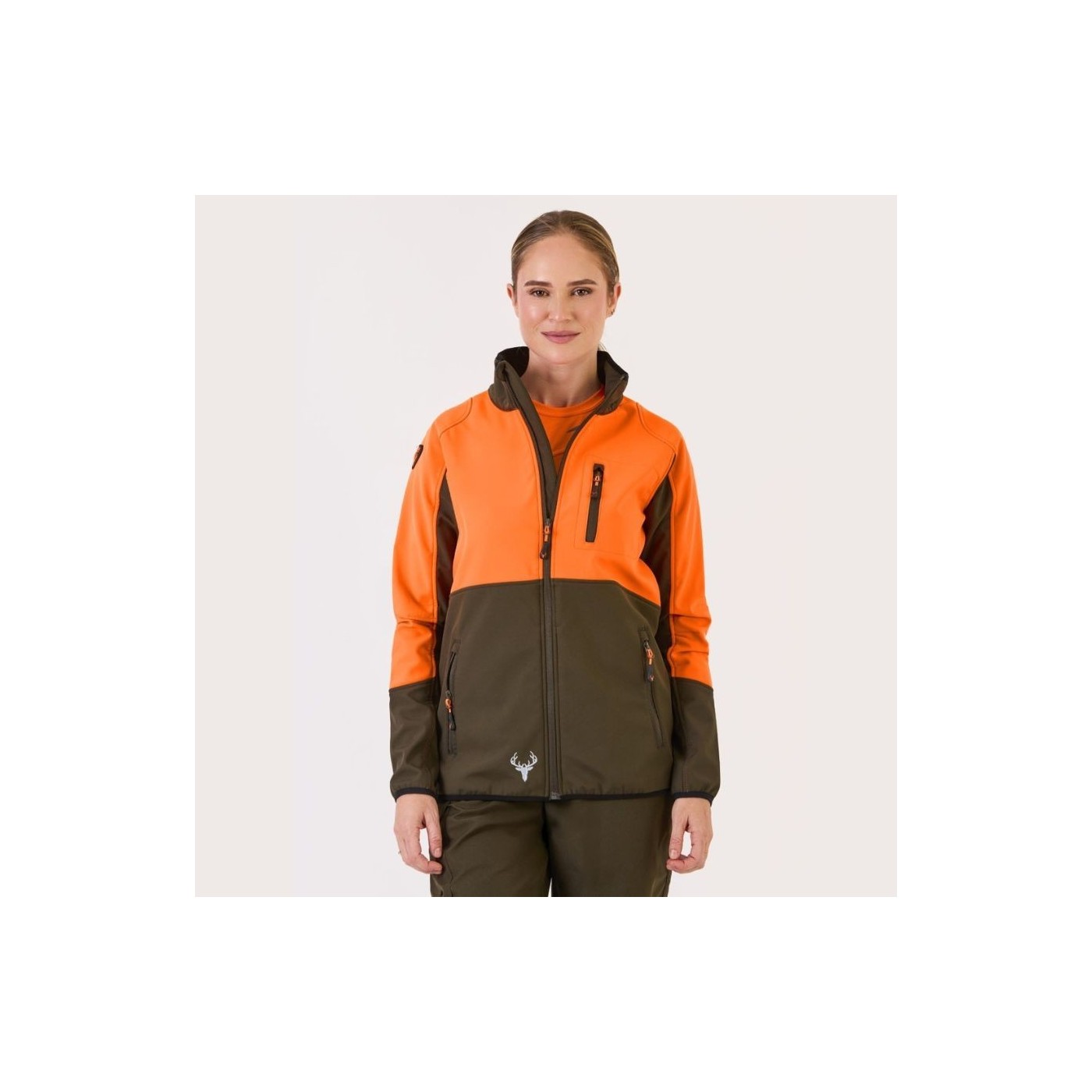 Conçue en softshell coupe-vent, elle intègre une doublure polaire à motif quadrillé, un col montant avec bande de propreté, des fermetures zippées inversées et des poches fonctionnelles zippées.